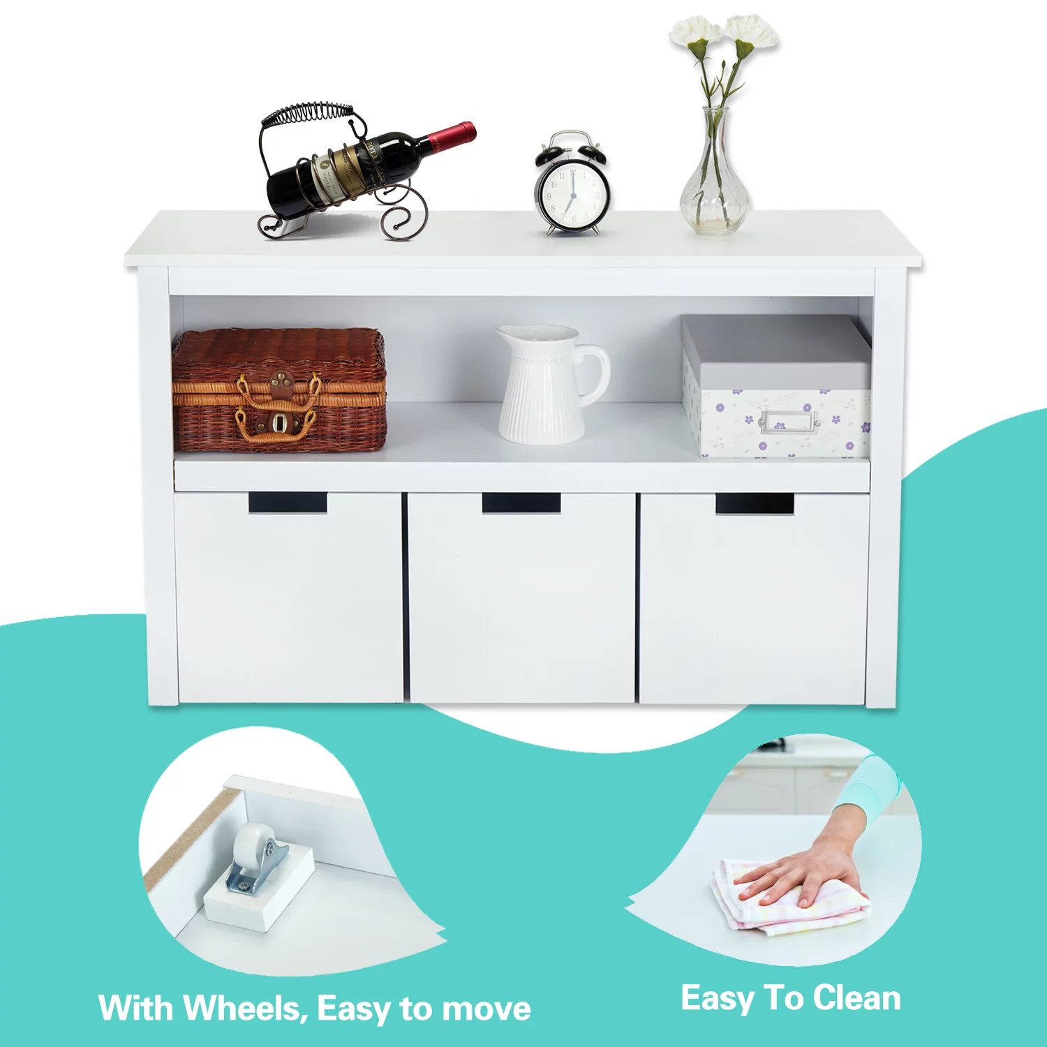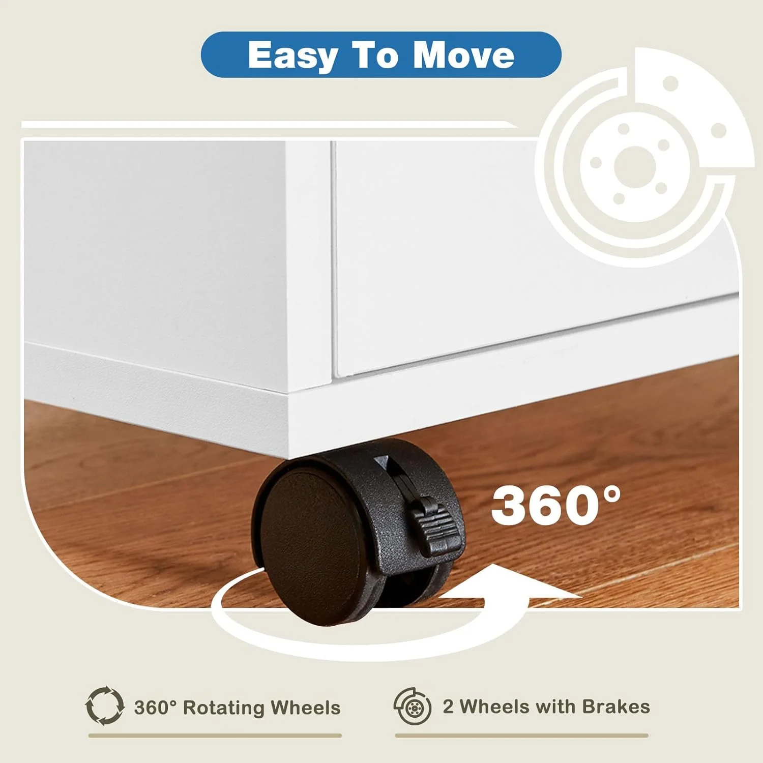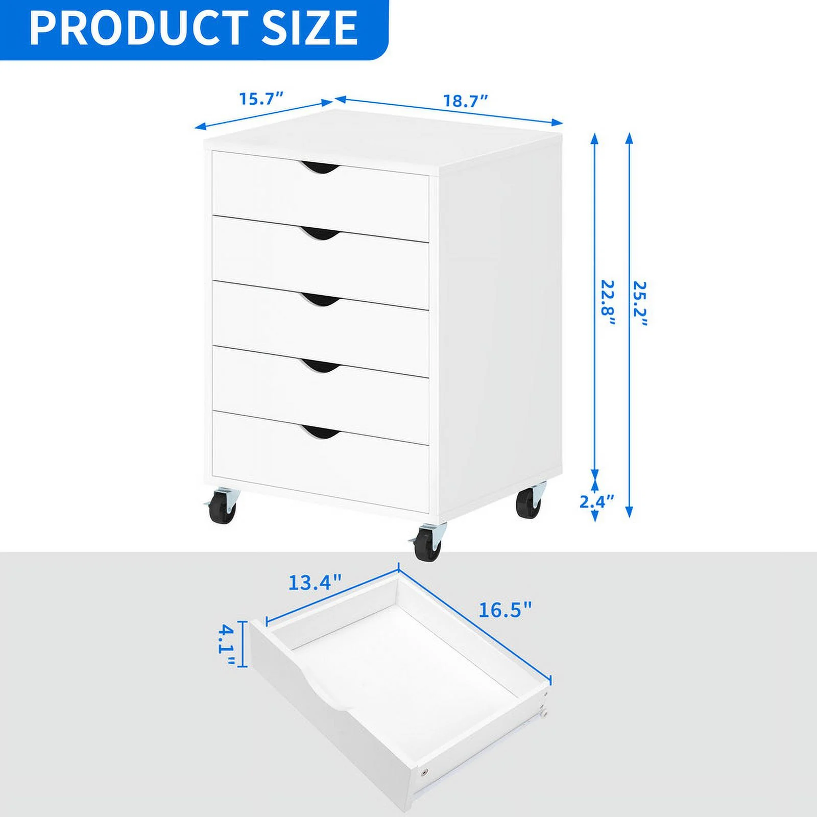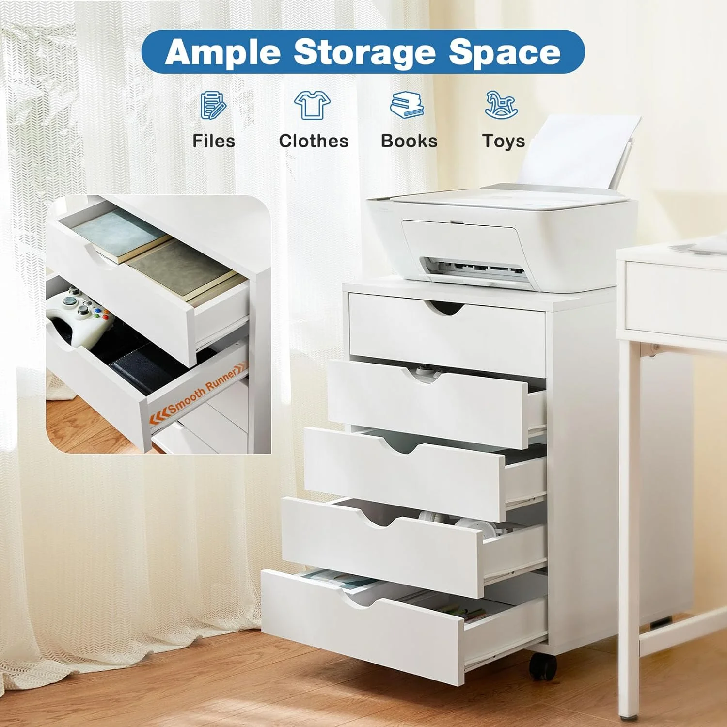 5 Drawer Chest Wood File Cabinet Rolling Storage Dresser with Wheels for Home Office, White