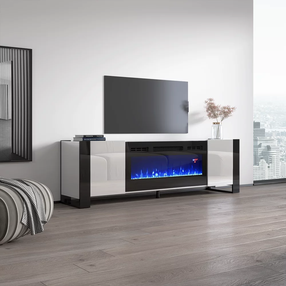 Granero 01 TV Stand for TVs up to 90", Modern High Gloss 79" Entertainment Center, TV Media Console with Storage Cabinets