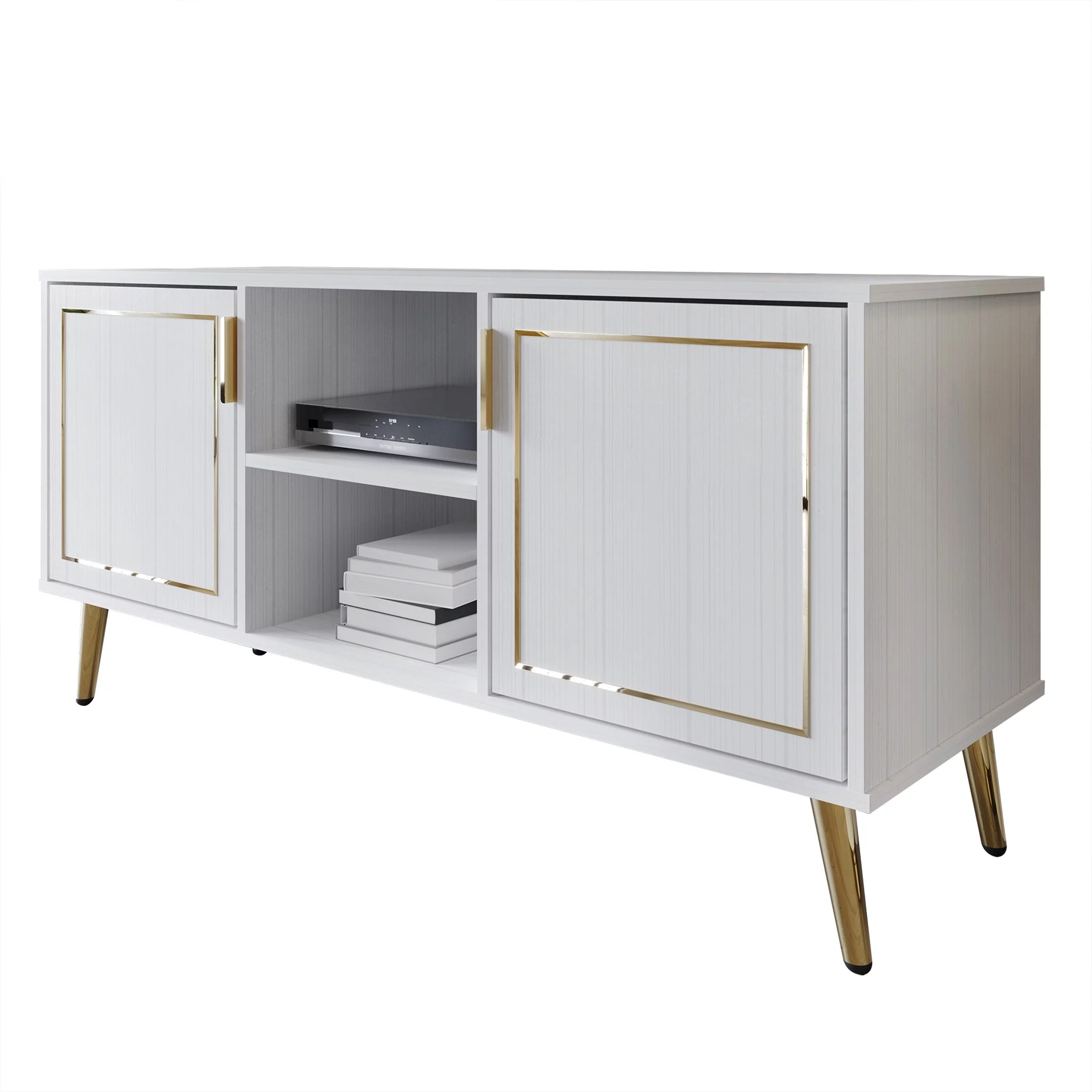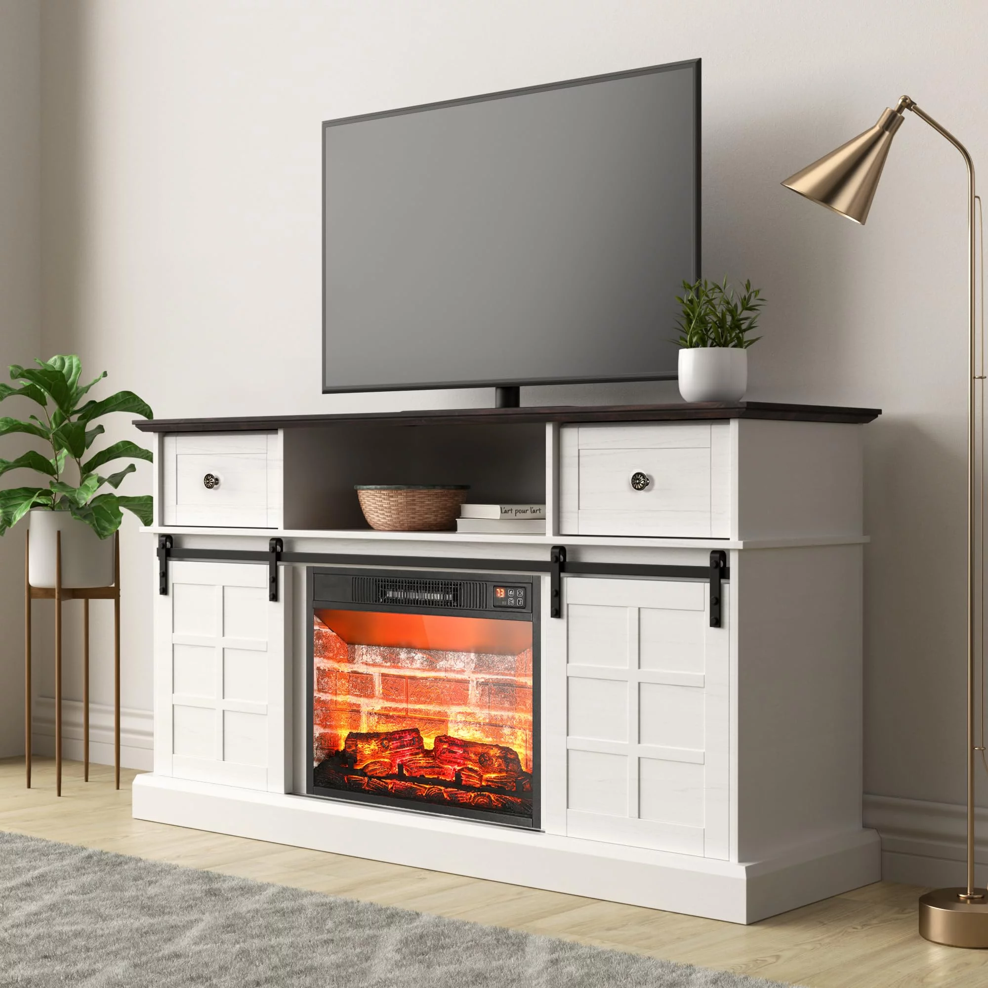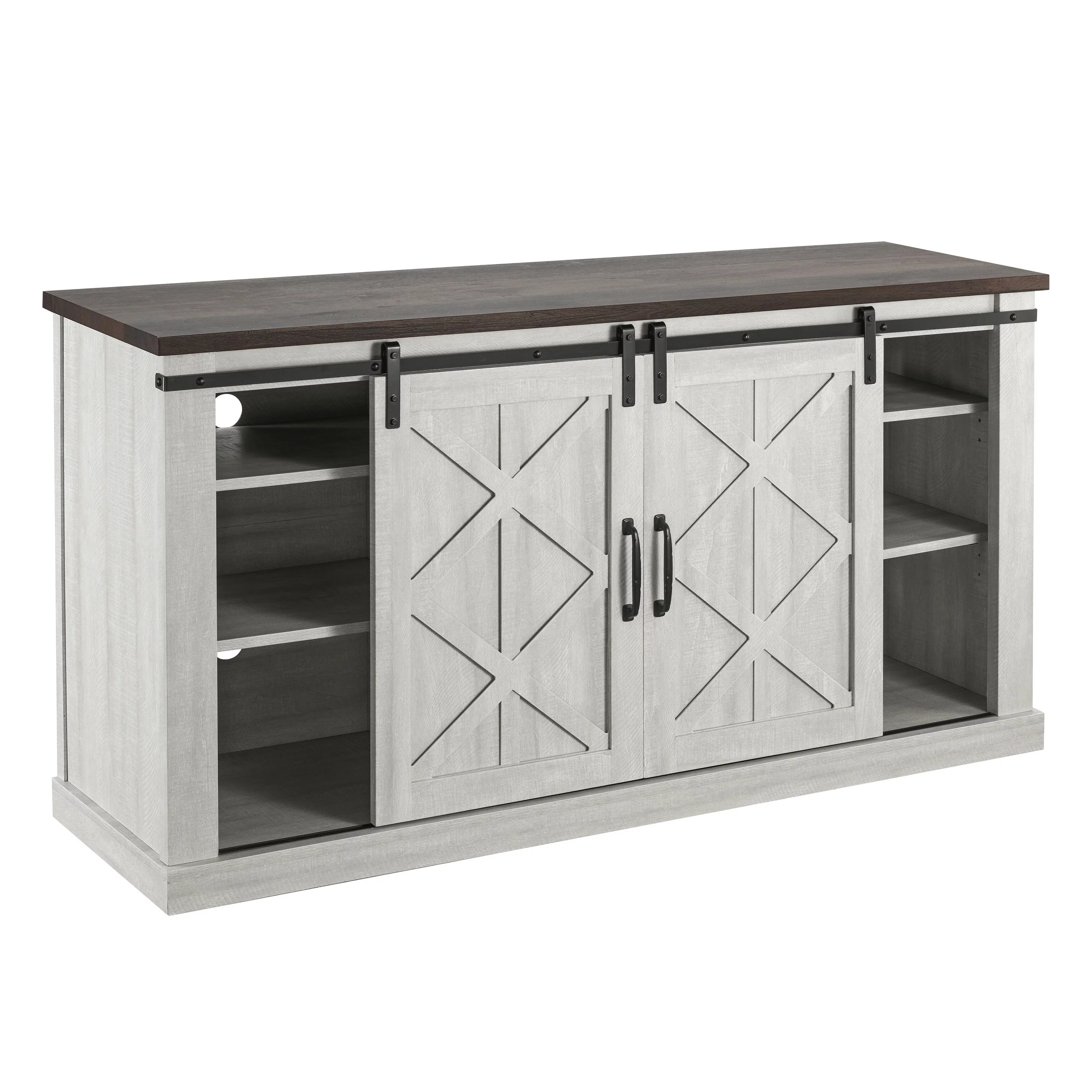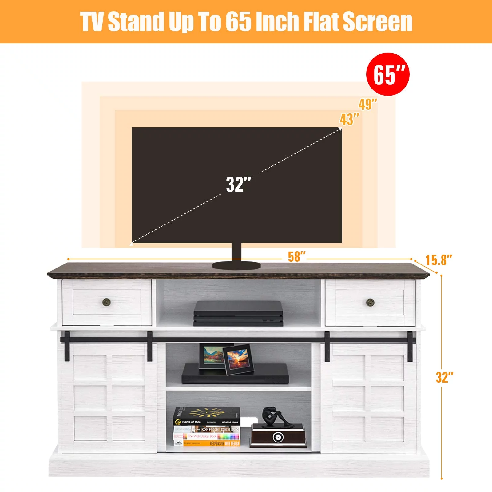 FESTIVO 58" Farmhouse Sliding Barn Door TV Stand - Fits TVs up to 65" - 58" in Width Off White
