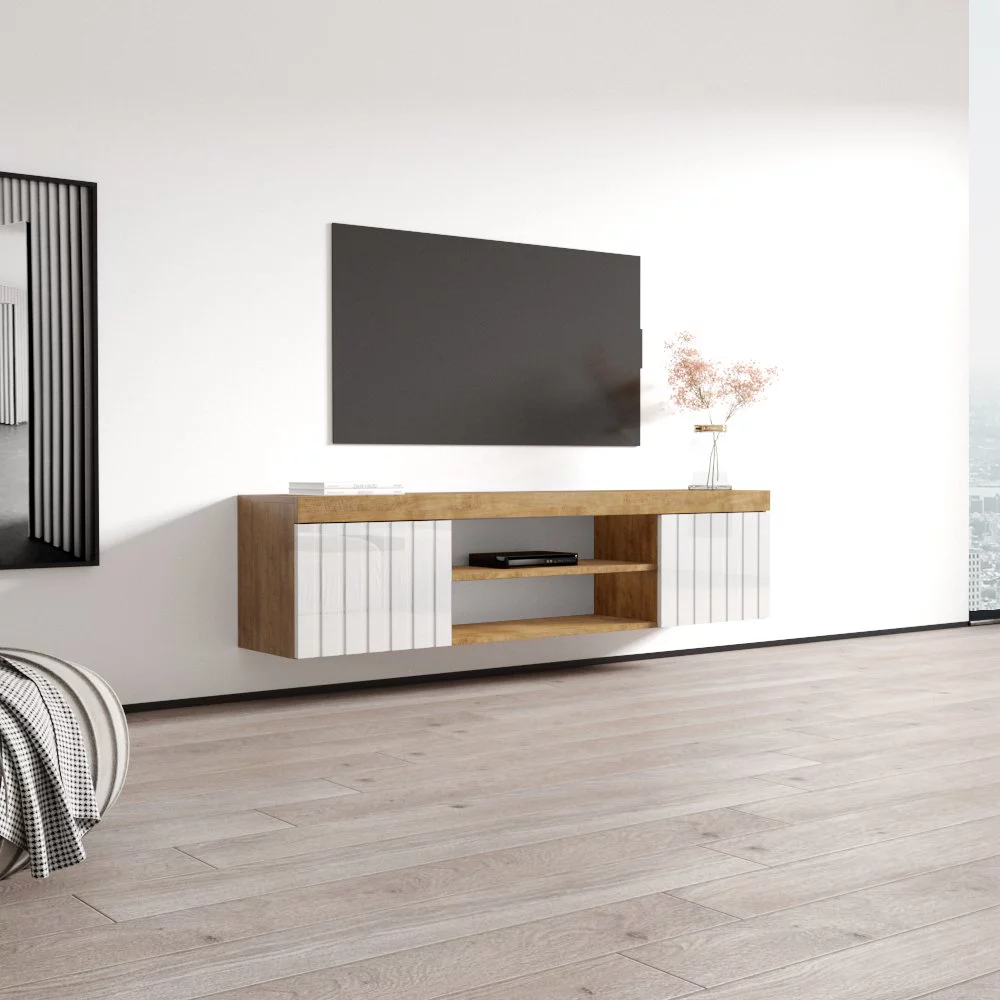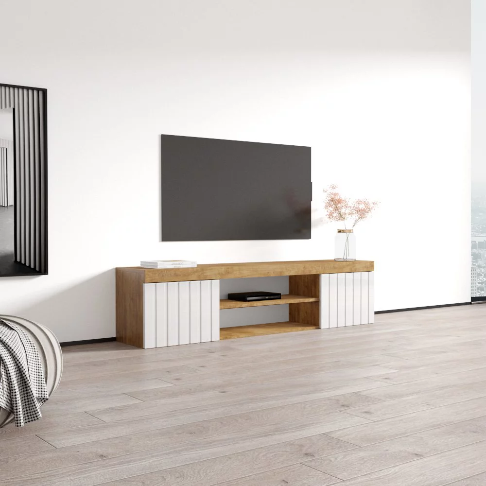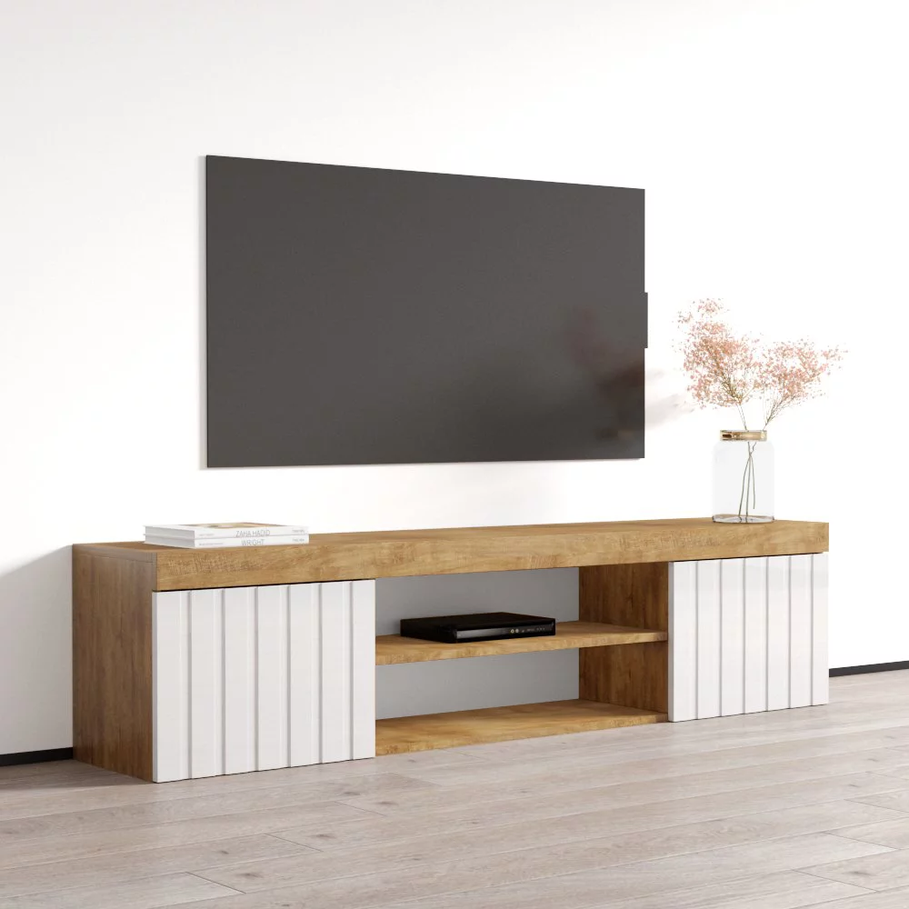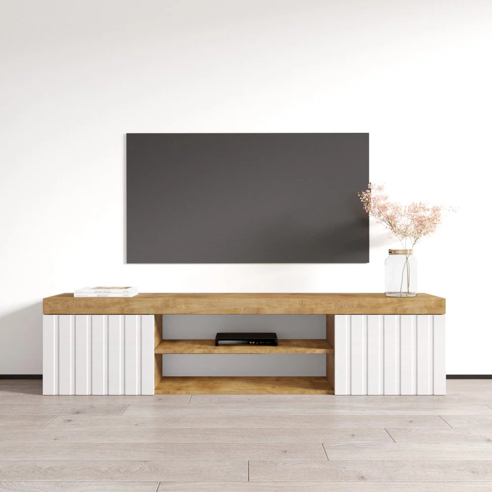 FESTIVO 58" Farmhouse Sliding Barn Door TV Stand - Fits TVs up to 65" - 58" in Width Off White