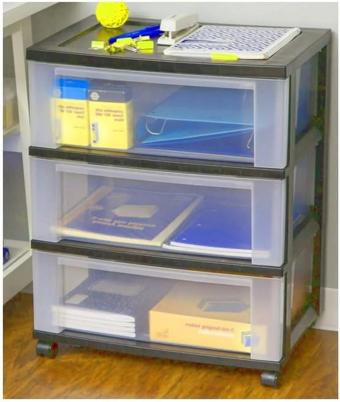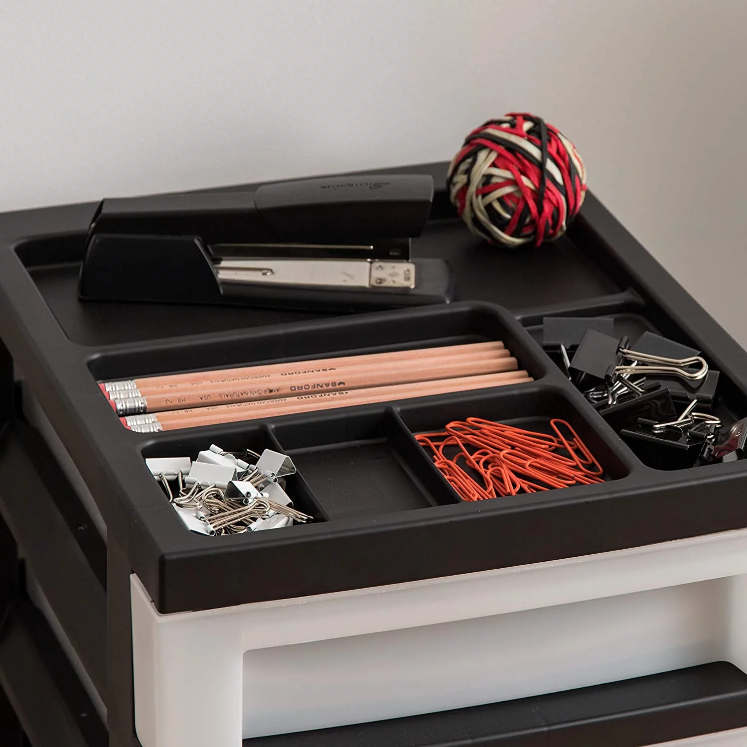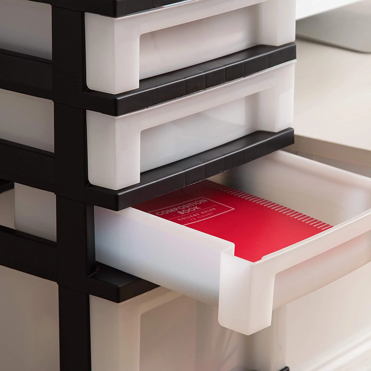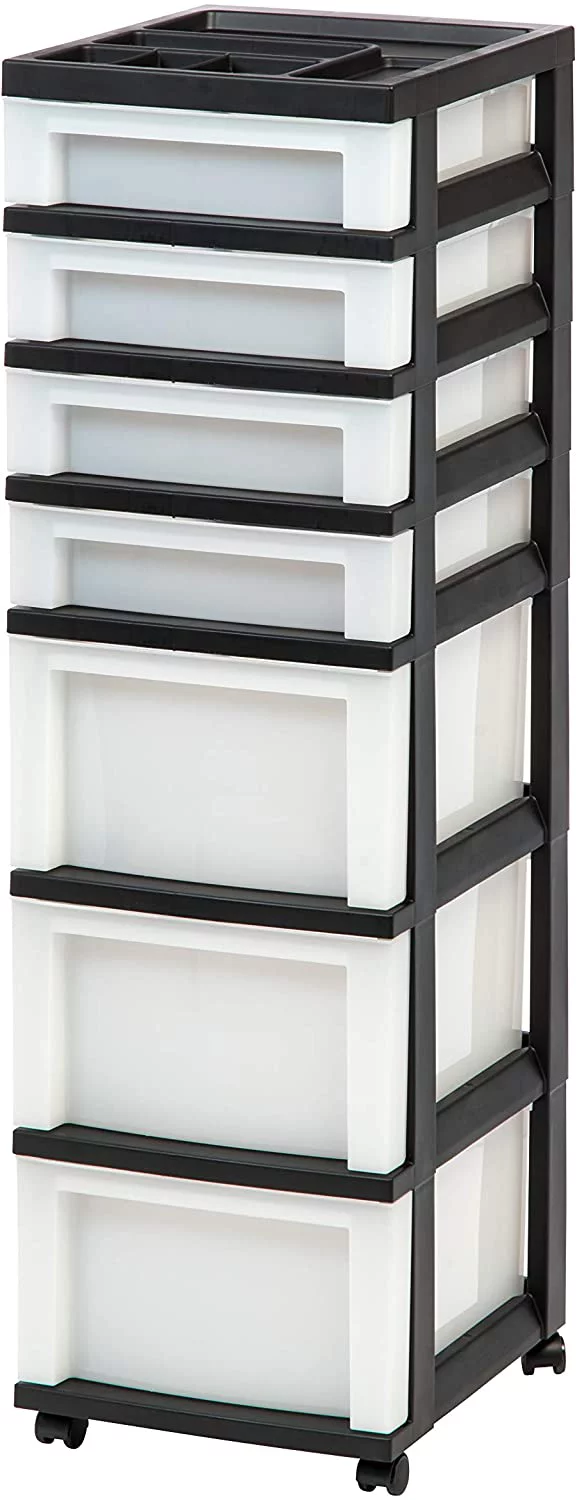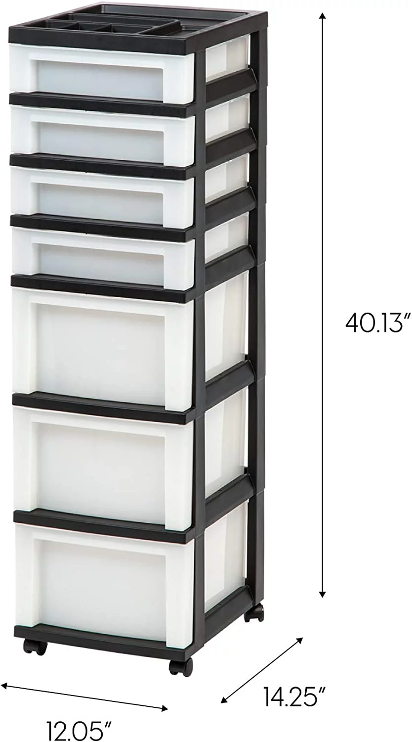 IRIS USA Medium 7-Drawer Storage Rolling Cart with Organizer Top, Black/Pearl