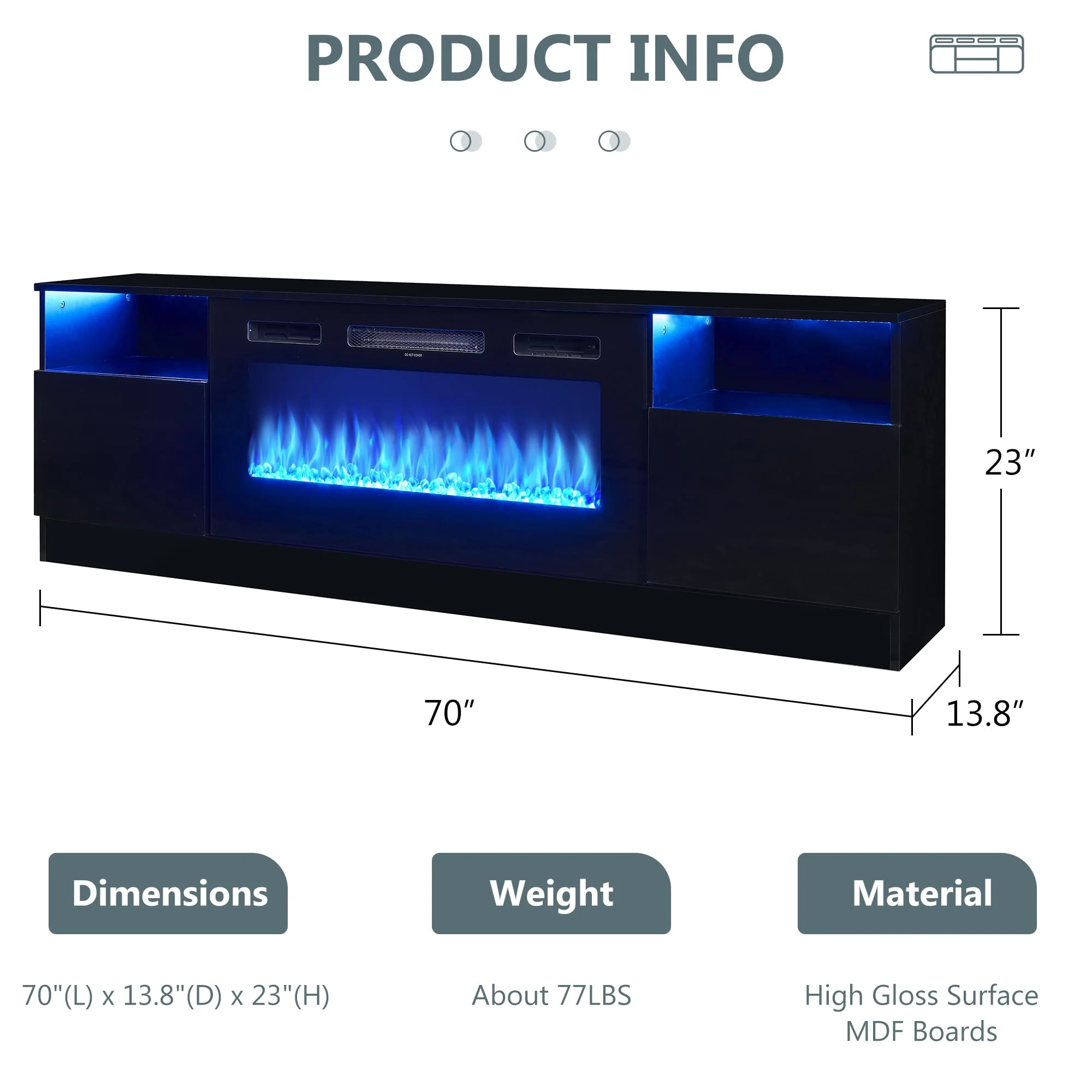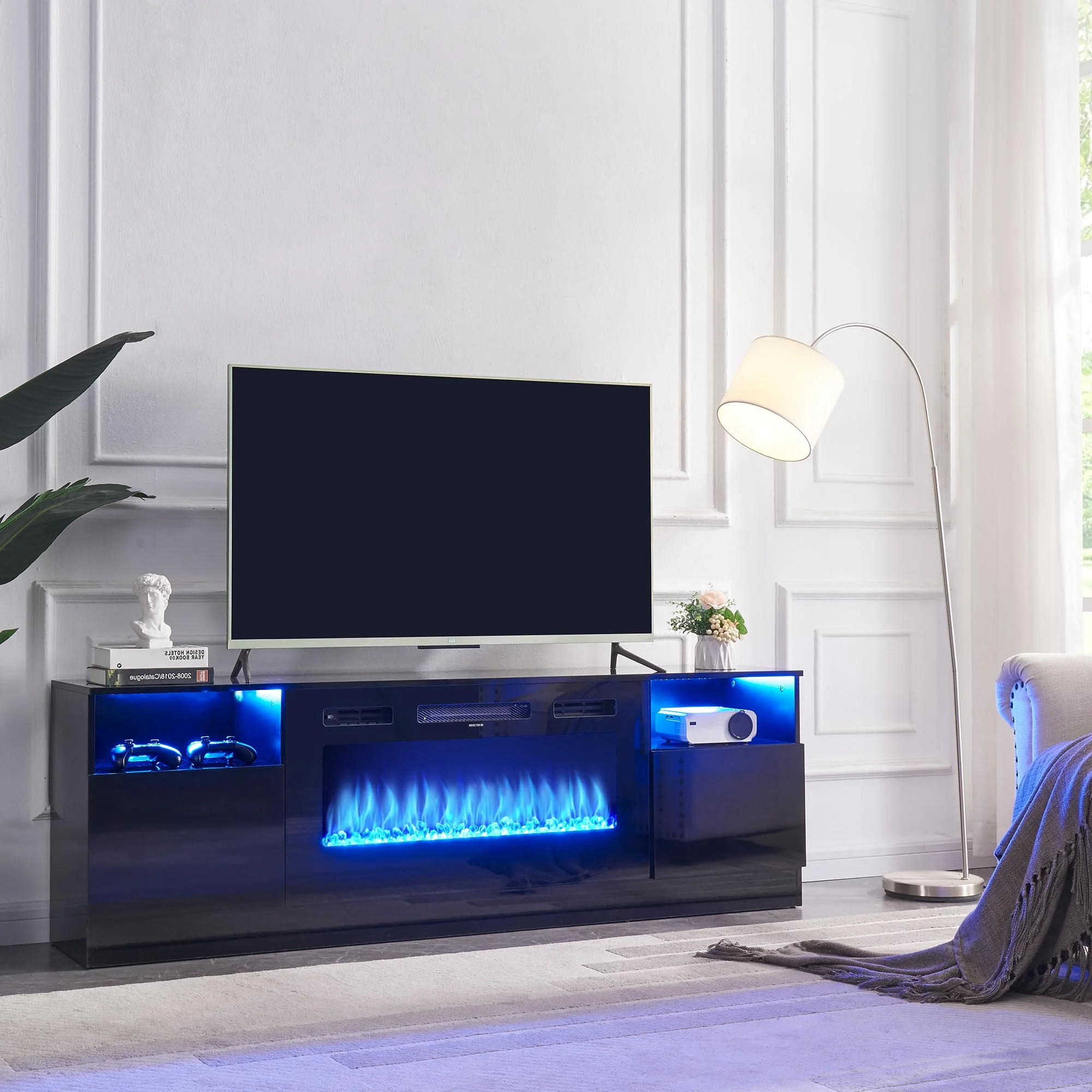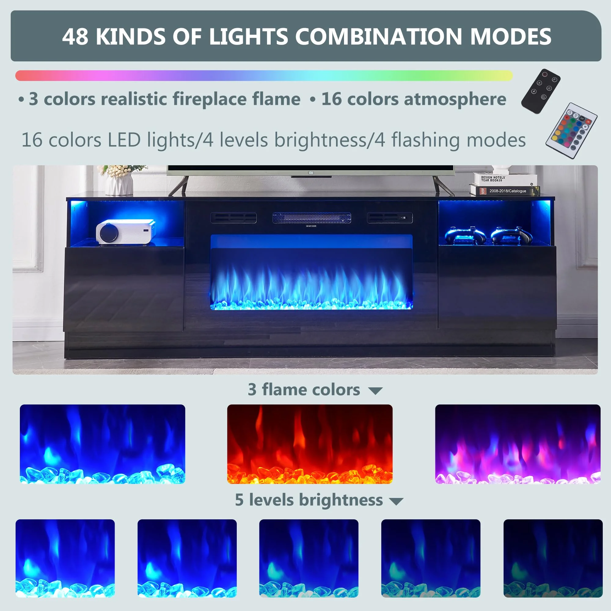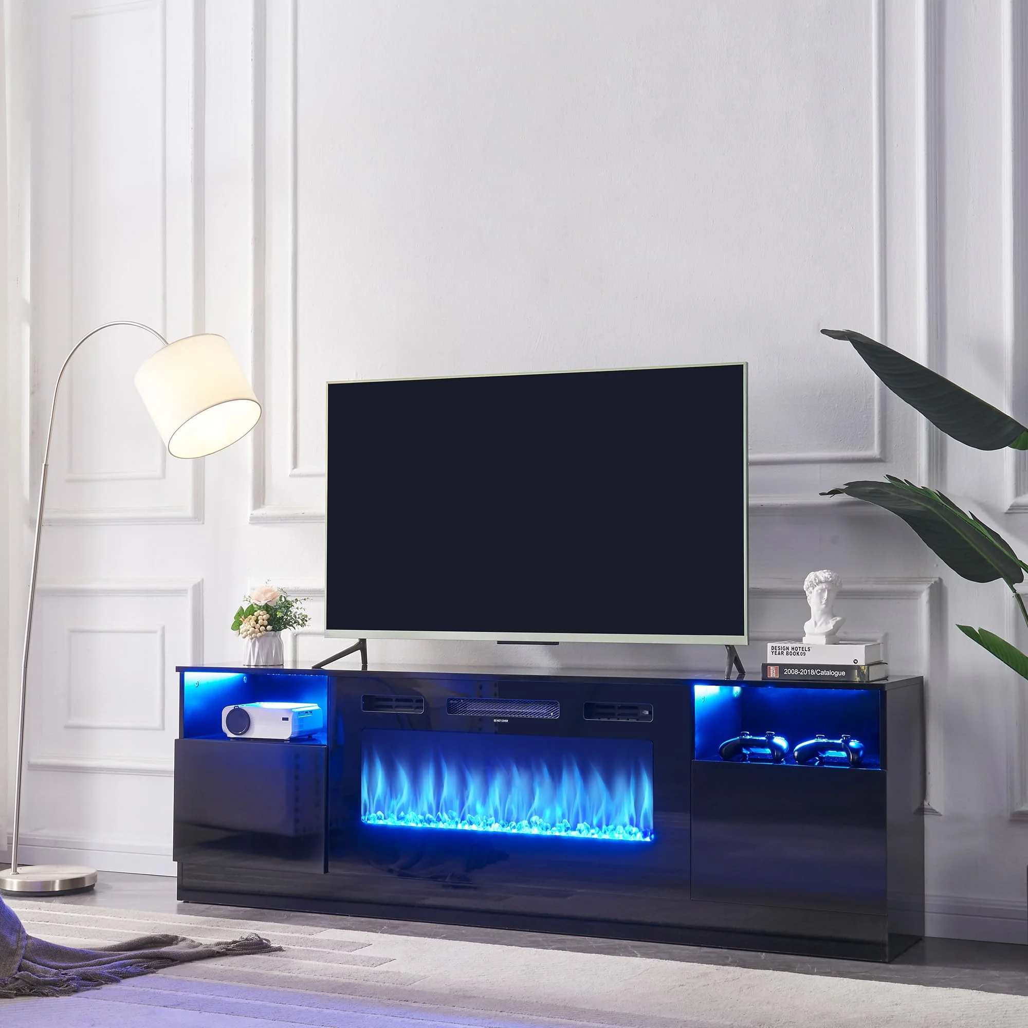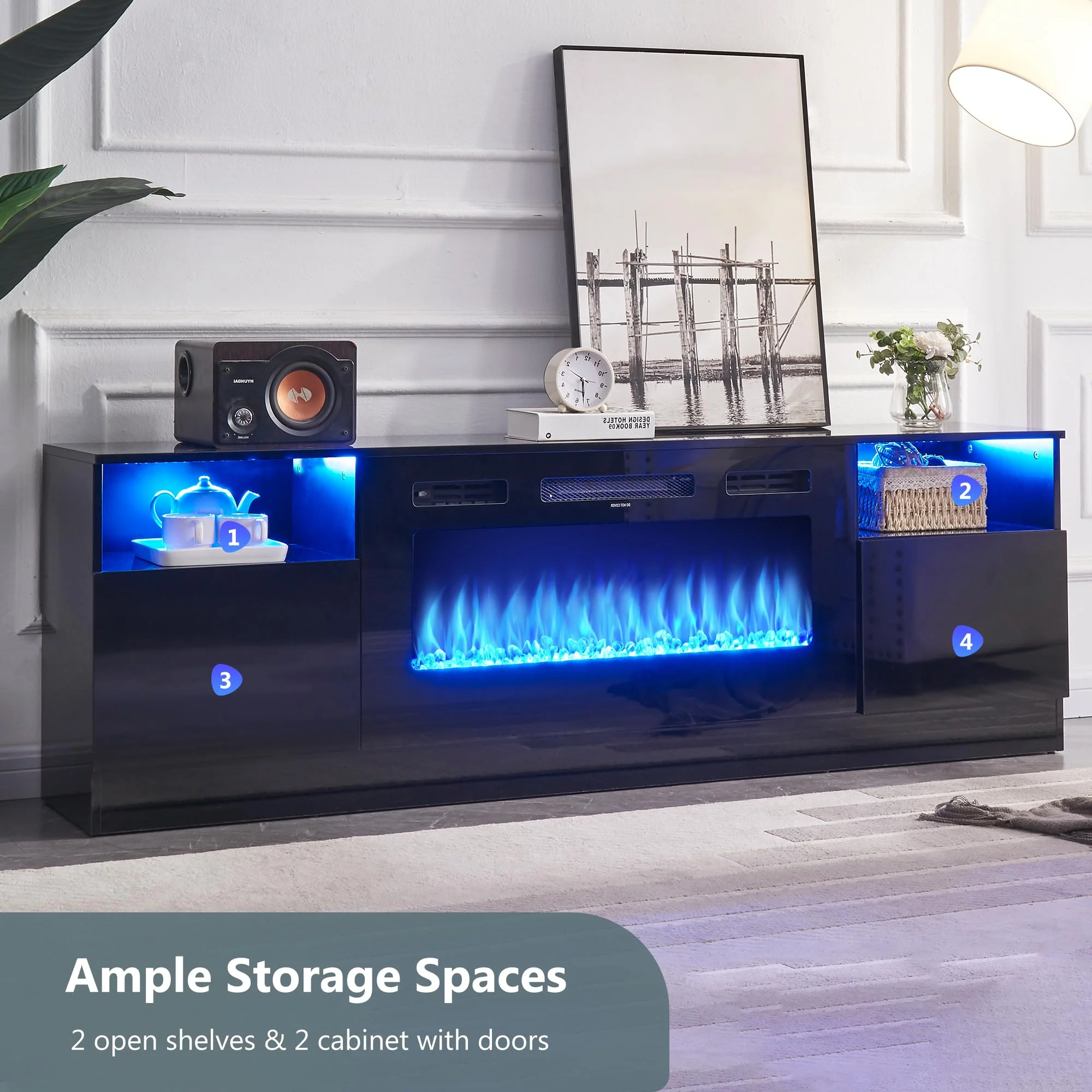 OKD Fireplace TV Stand with LED Lights TV Console for TVs up to 80" Entertainment Center with Adjustable Glass Shelves White