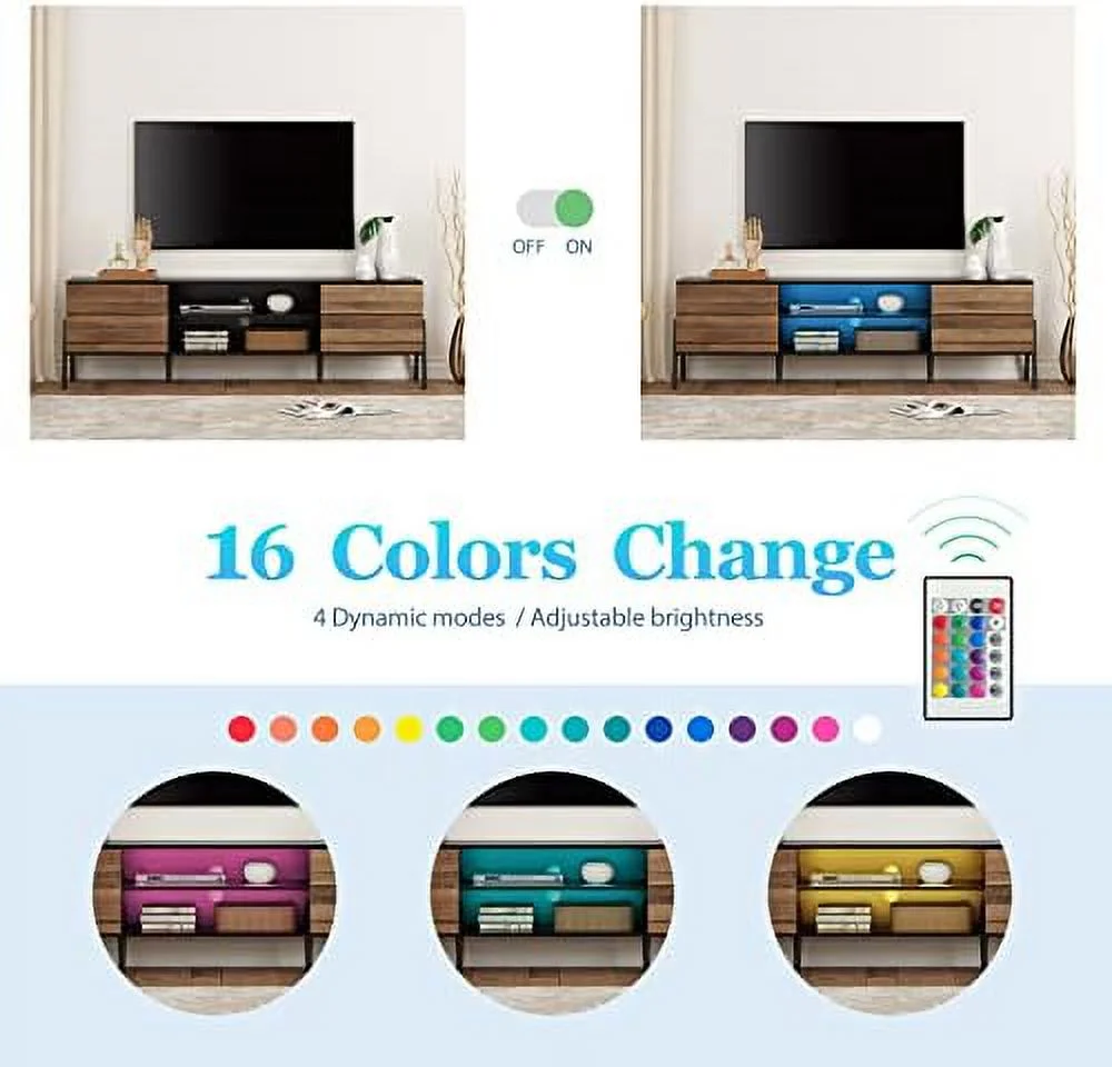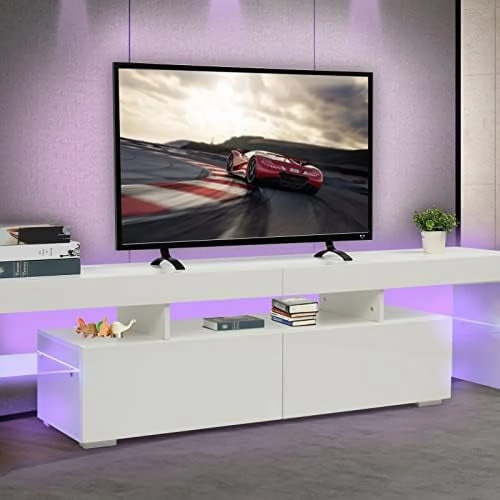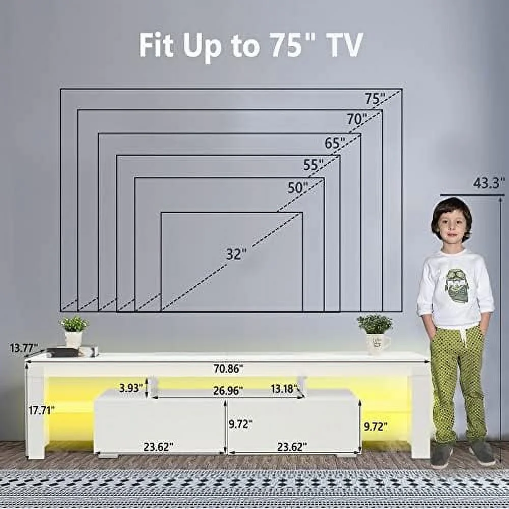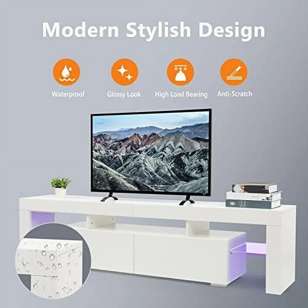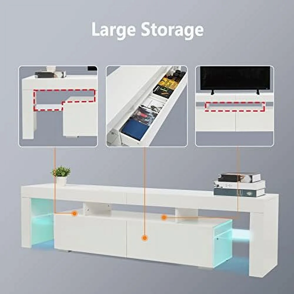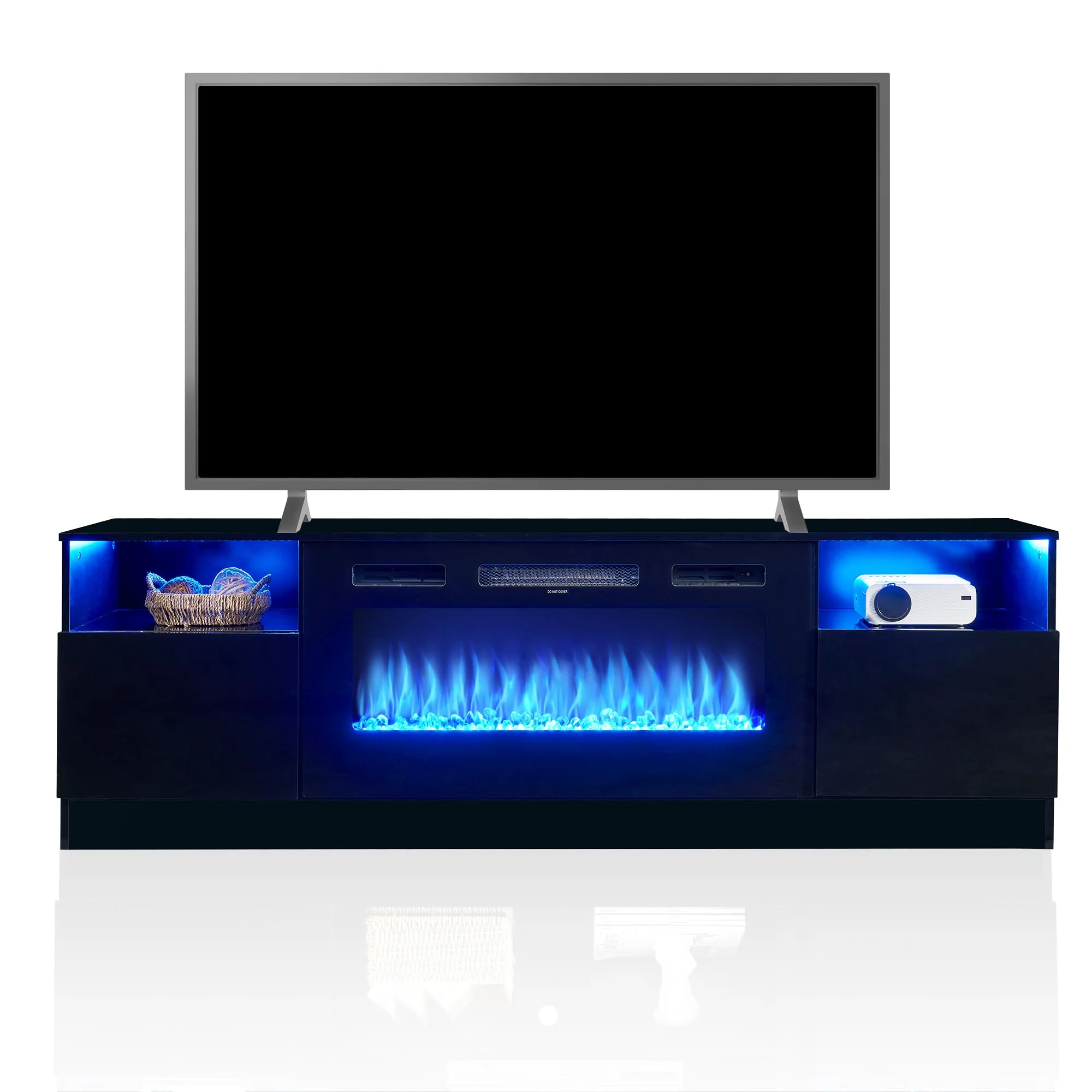 OKD Fireplace TV Stand with LED Lights TV Console for TVs up to 80" Entertainment Center with Adjustable Glass Shelves White