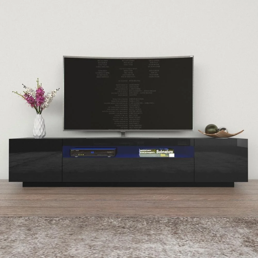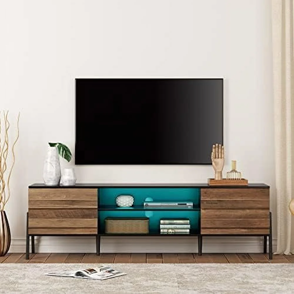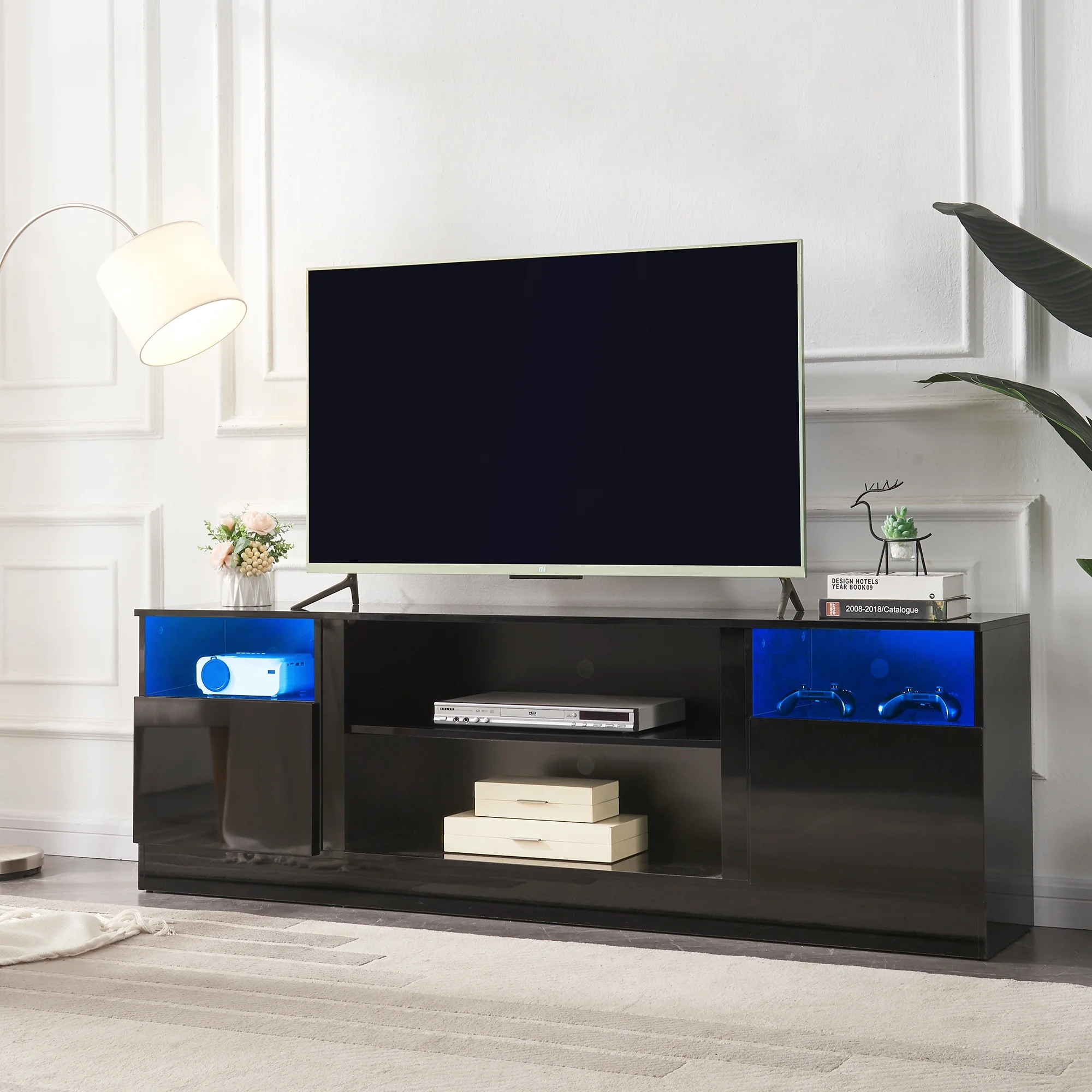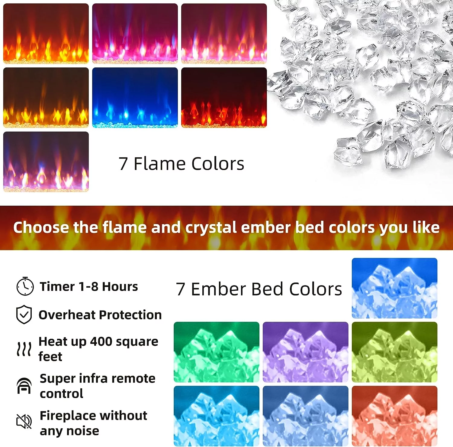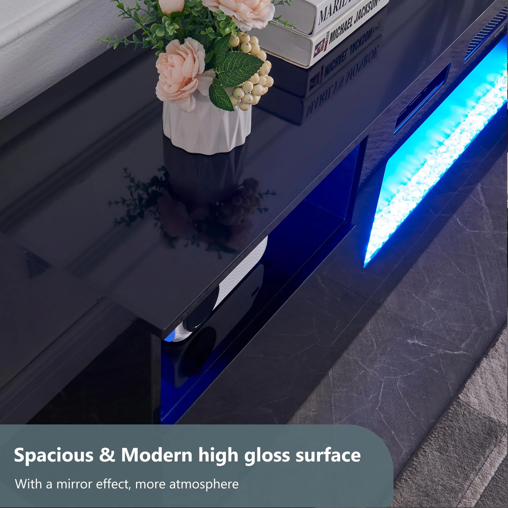 OKD Fireplace TV Stand with LED Lights TV Console for TVs up to 80" Entertainment Center with Adjustable Glass Shelves White
