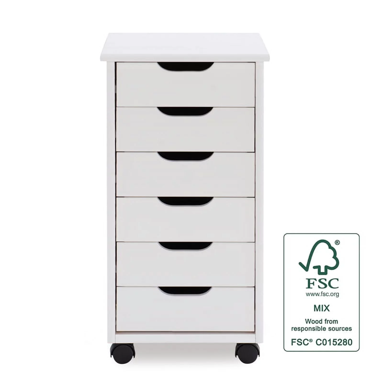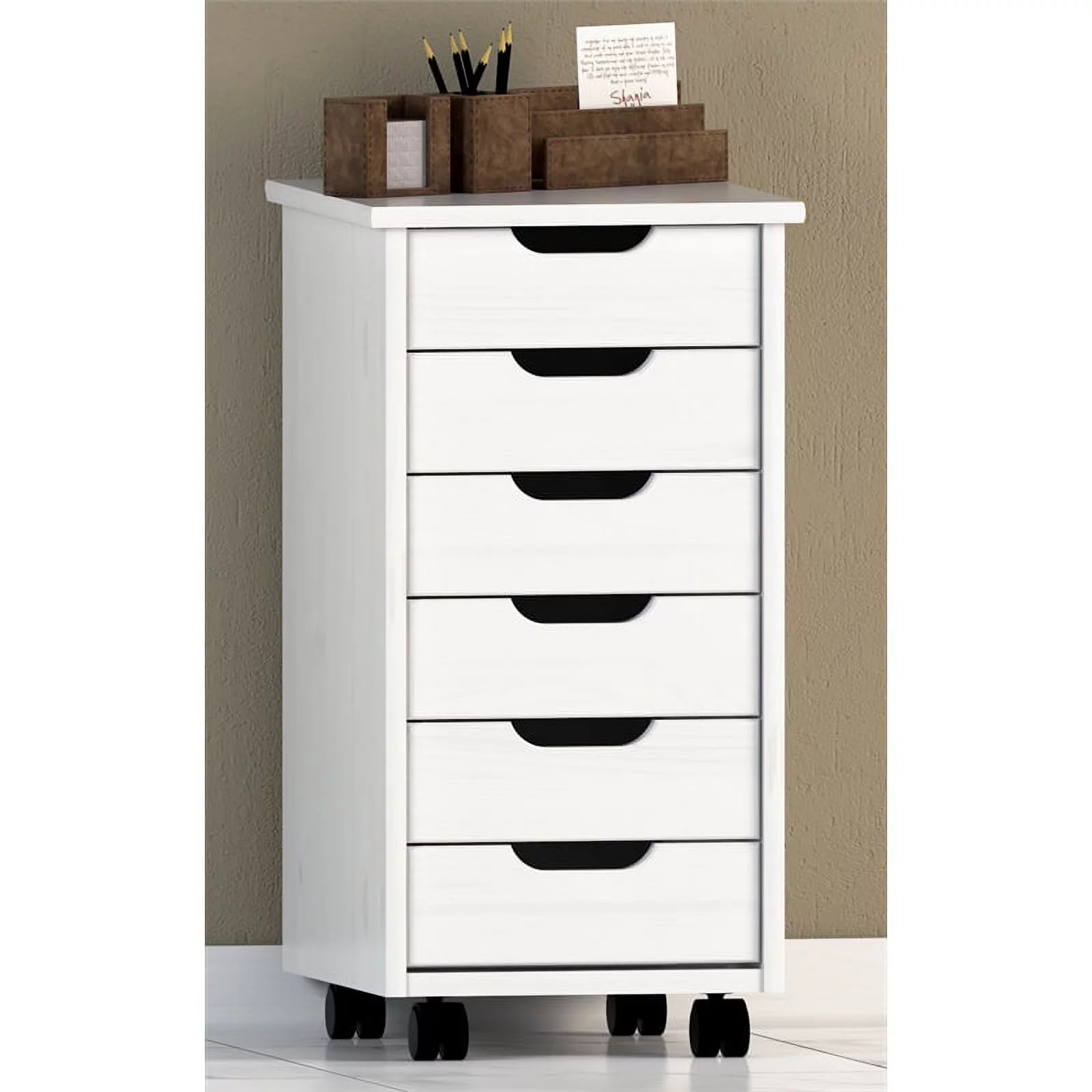 Linon Bridgton 6-drawer Wide Rolling Storage Chest Cart White Painted