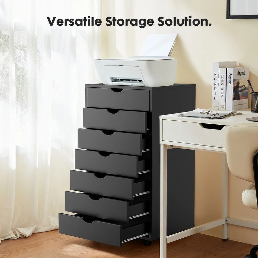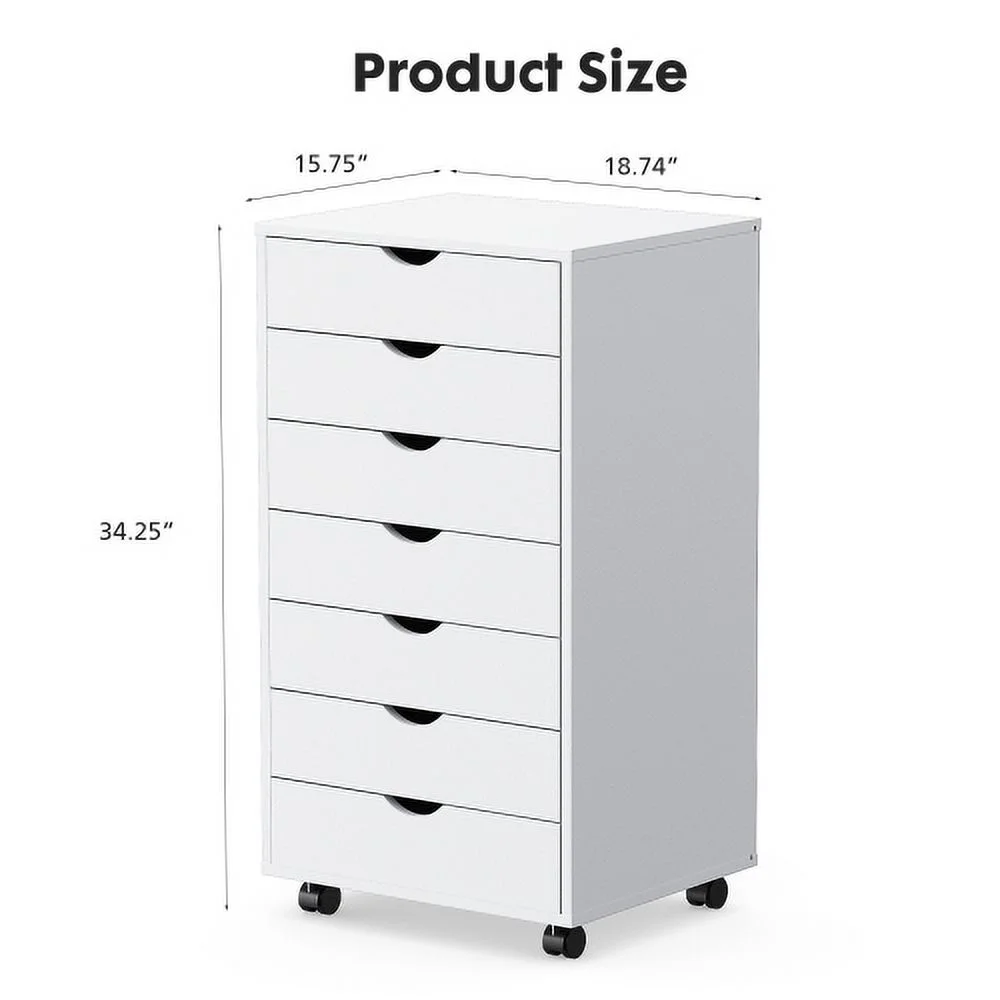 7 Drawer Chest - Storage Cabinets with Wheels Dressers Wood Dresser Cabinet Mobile Organizer Drawers for Office
