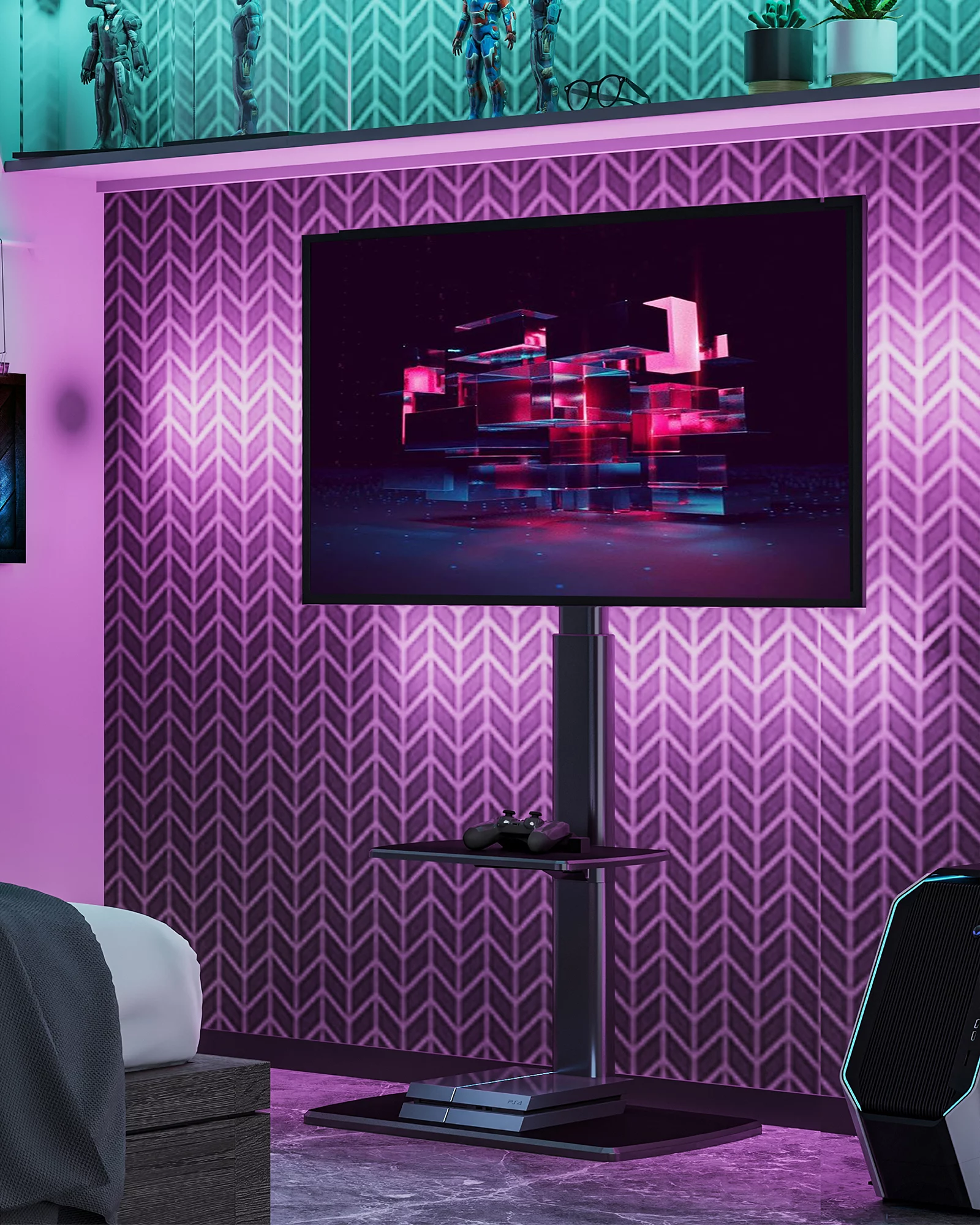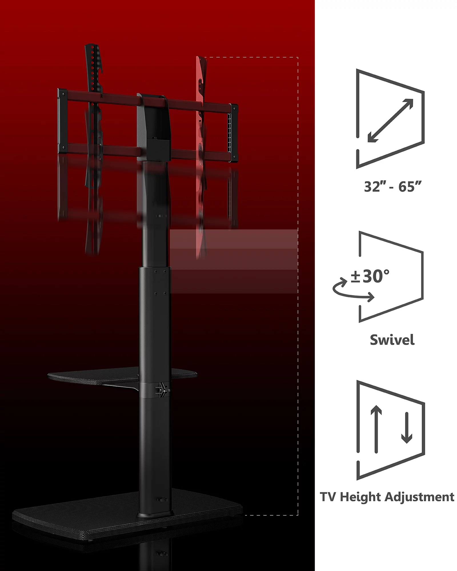 FITUEYES Floor TV Stand Mount with Swivel Bracket for TVs up to 65", Black