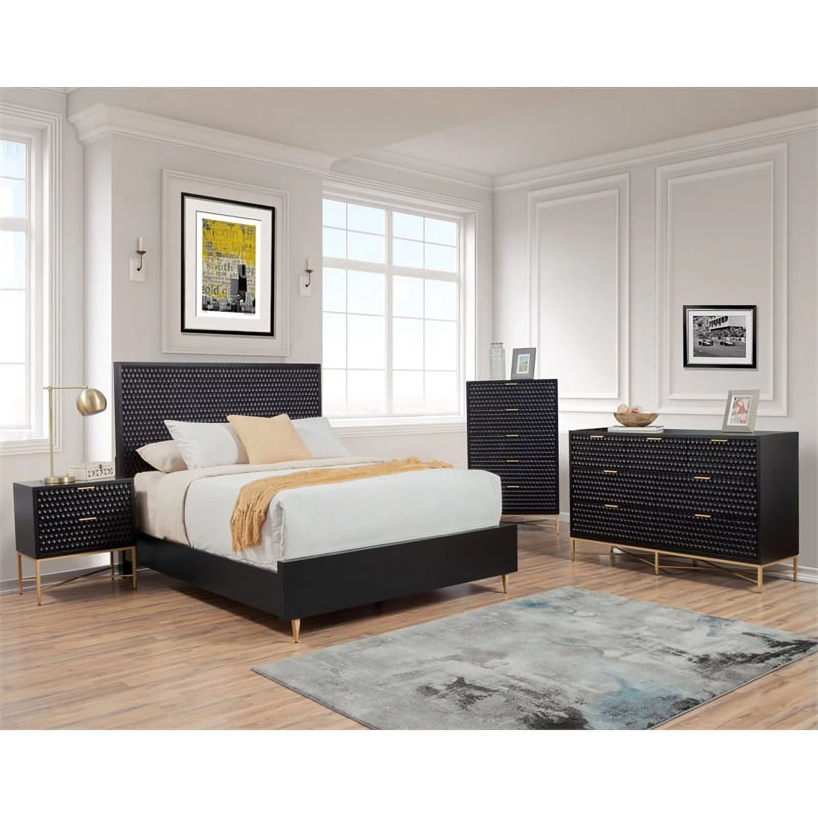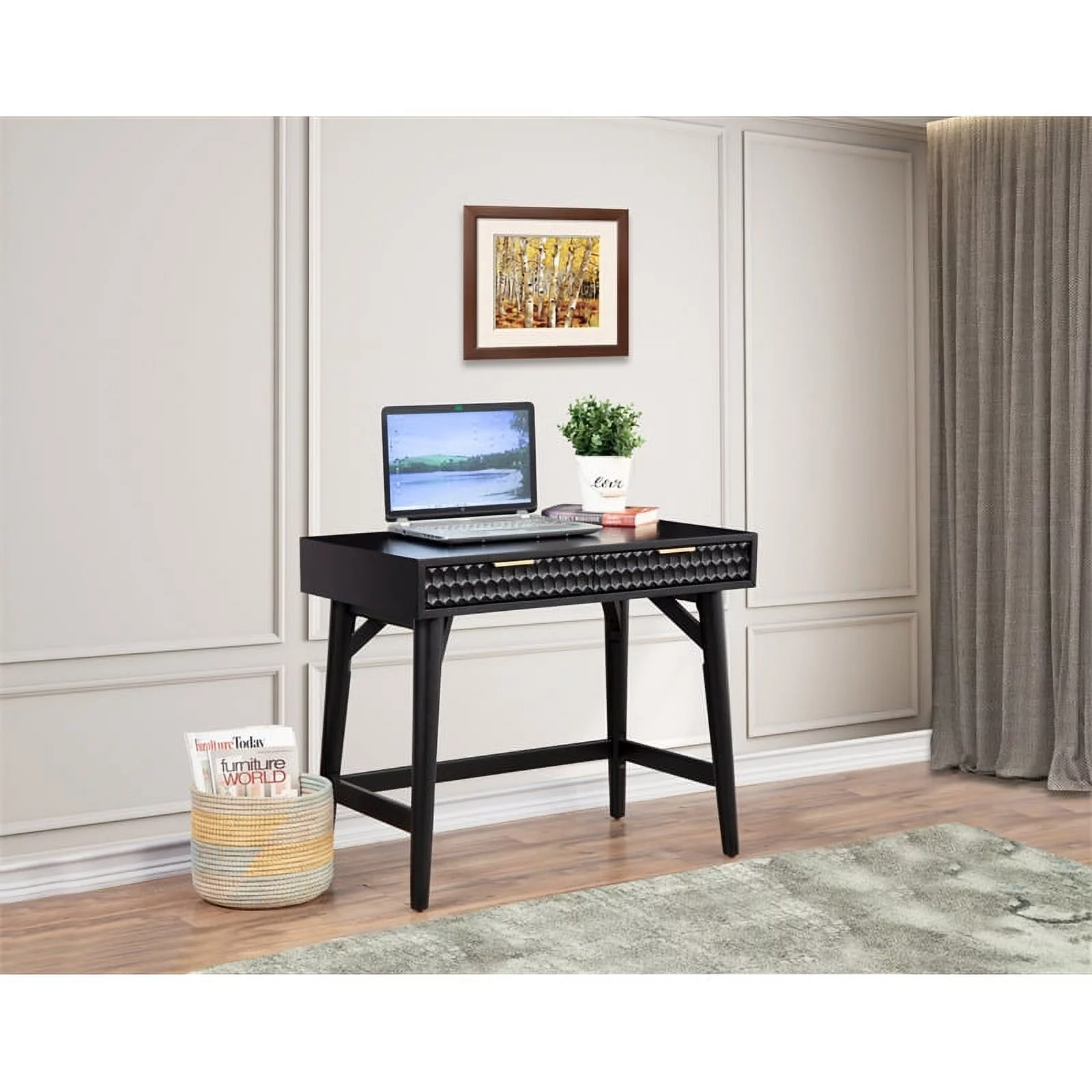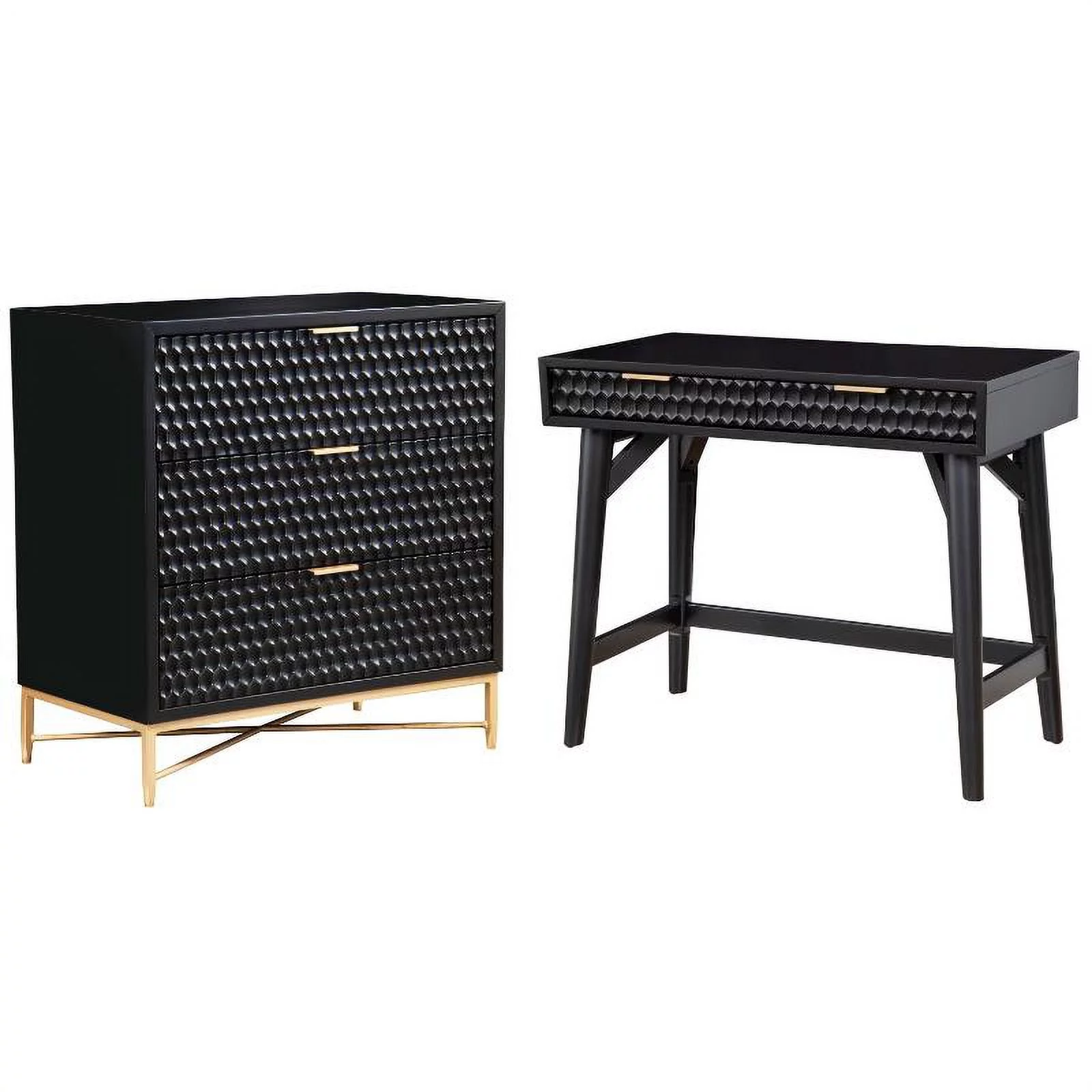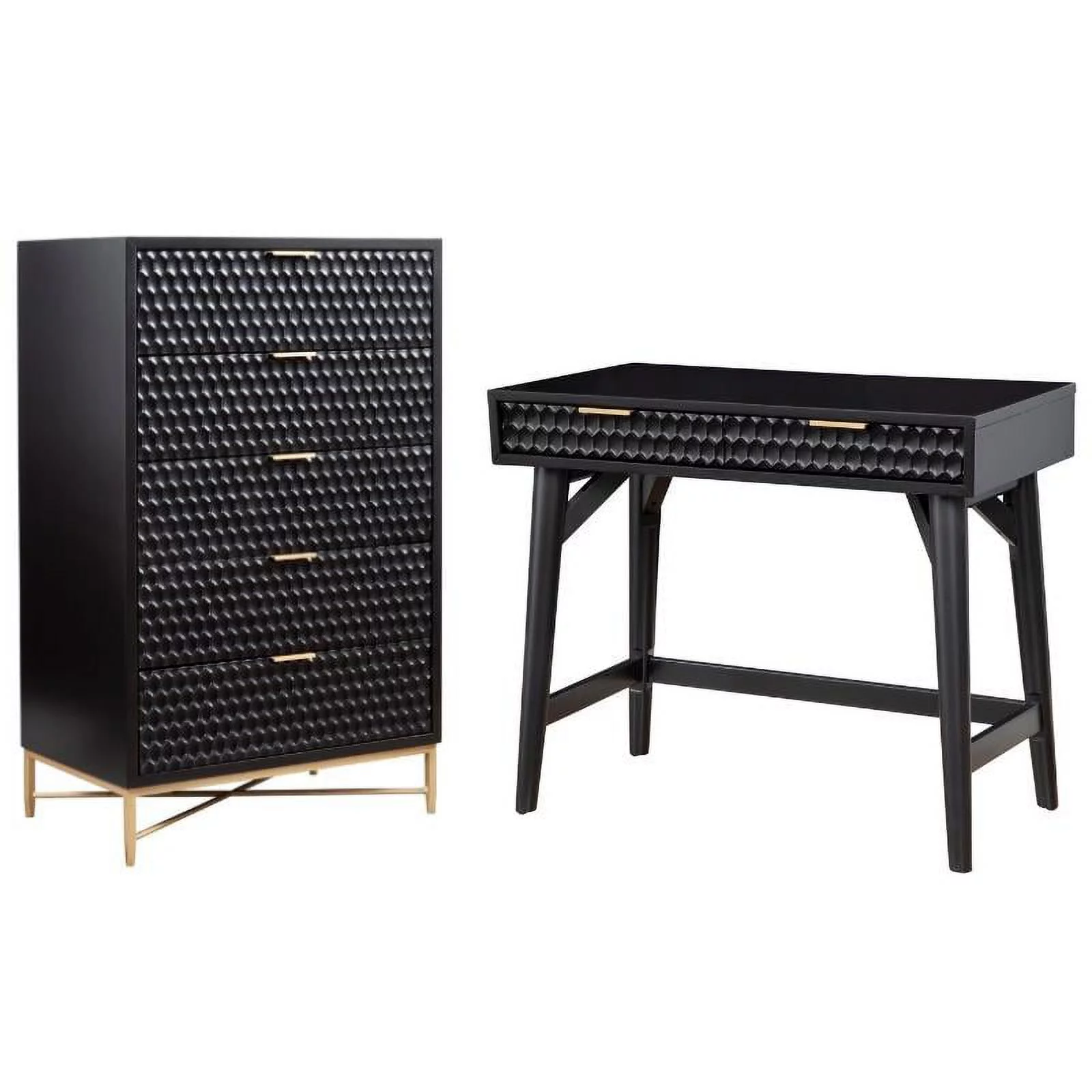 Home Square 2-Piece Set with 5 Drawer Chest and Mini Wood Desk in Black