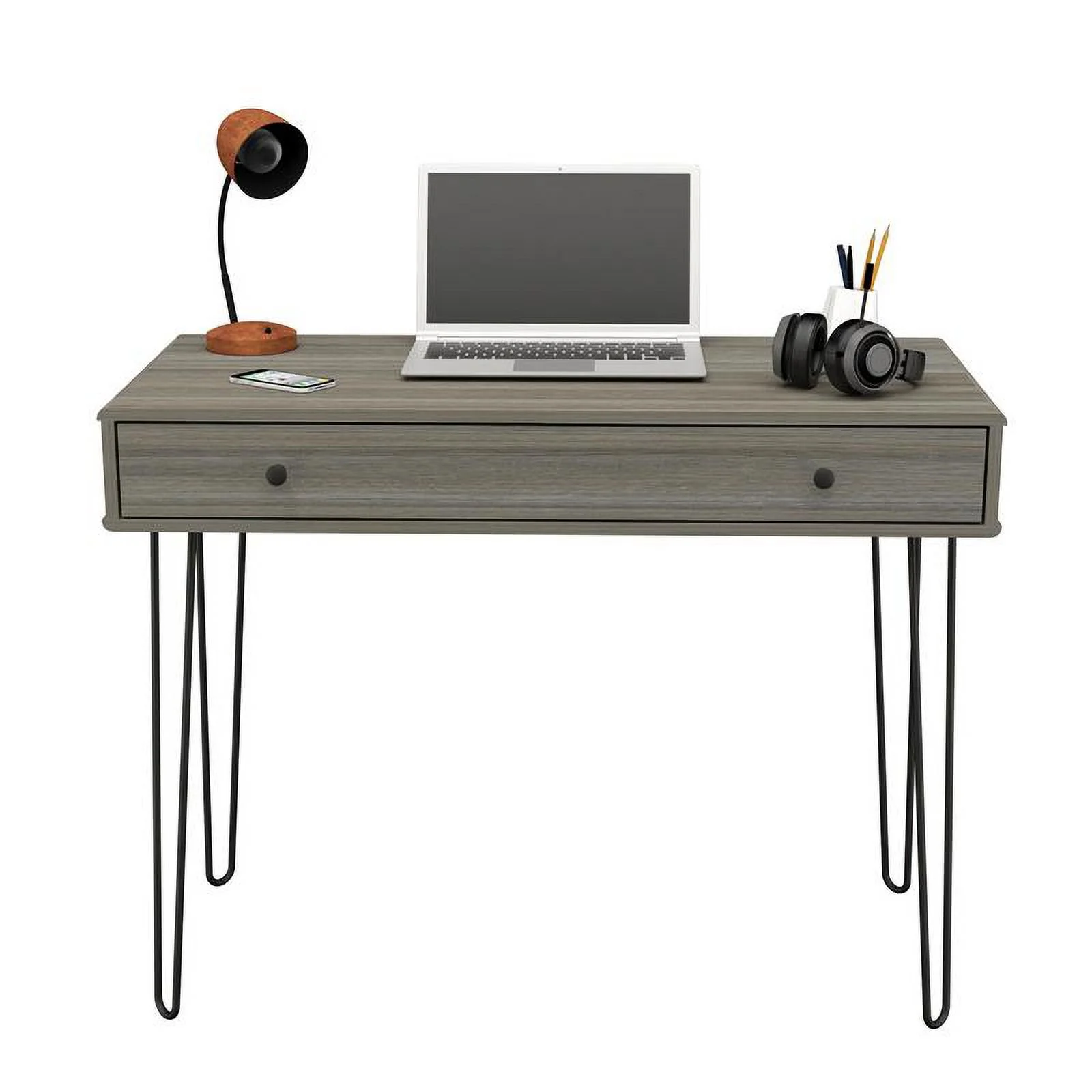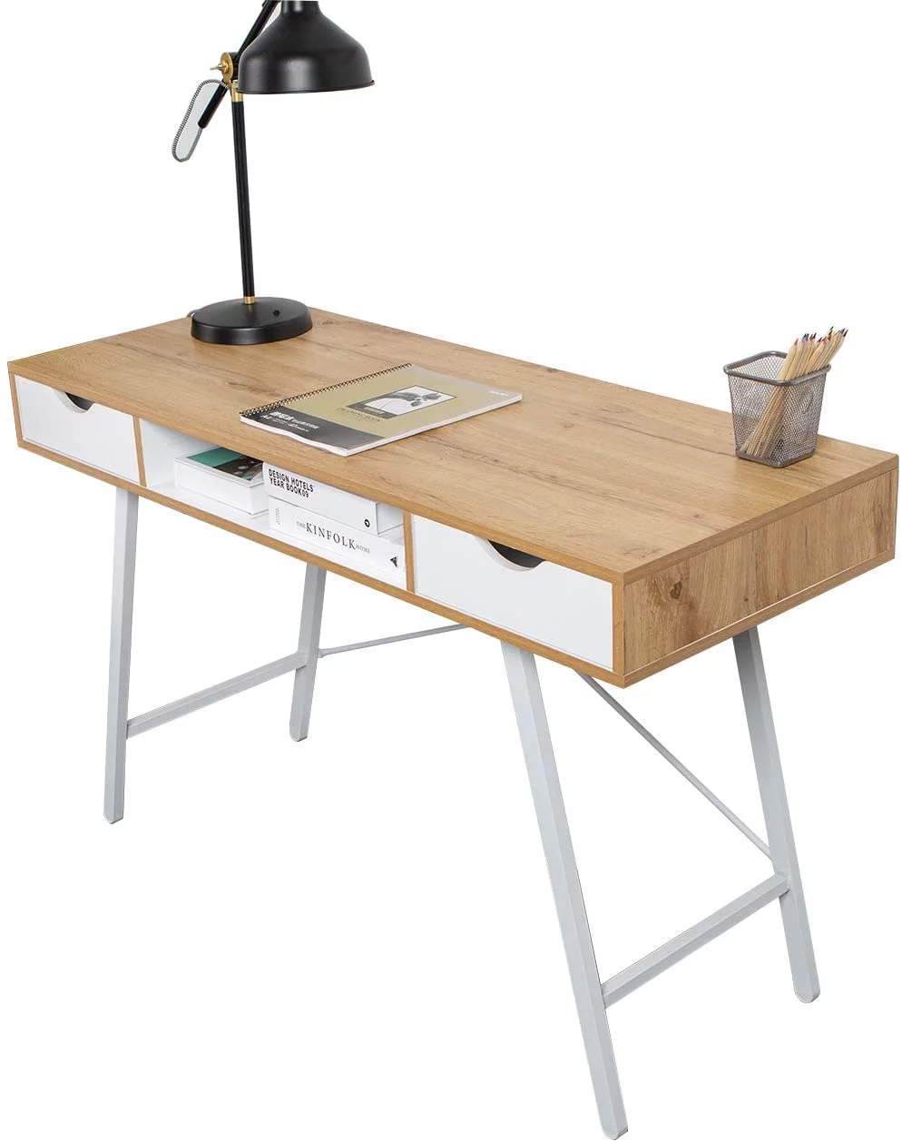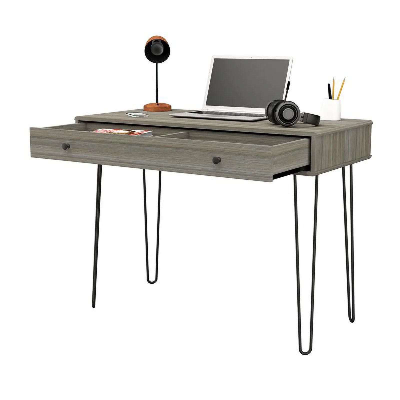 Vera Computer Desk with Top Open Shelf with 1-Drawer & 2-Storage Shelves, Smokey Oak