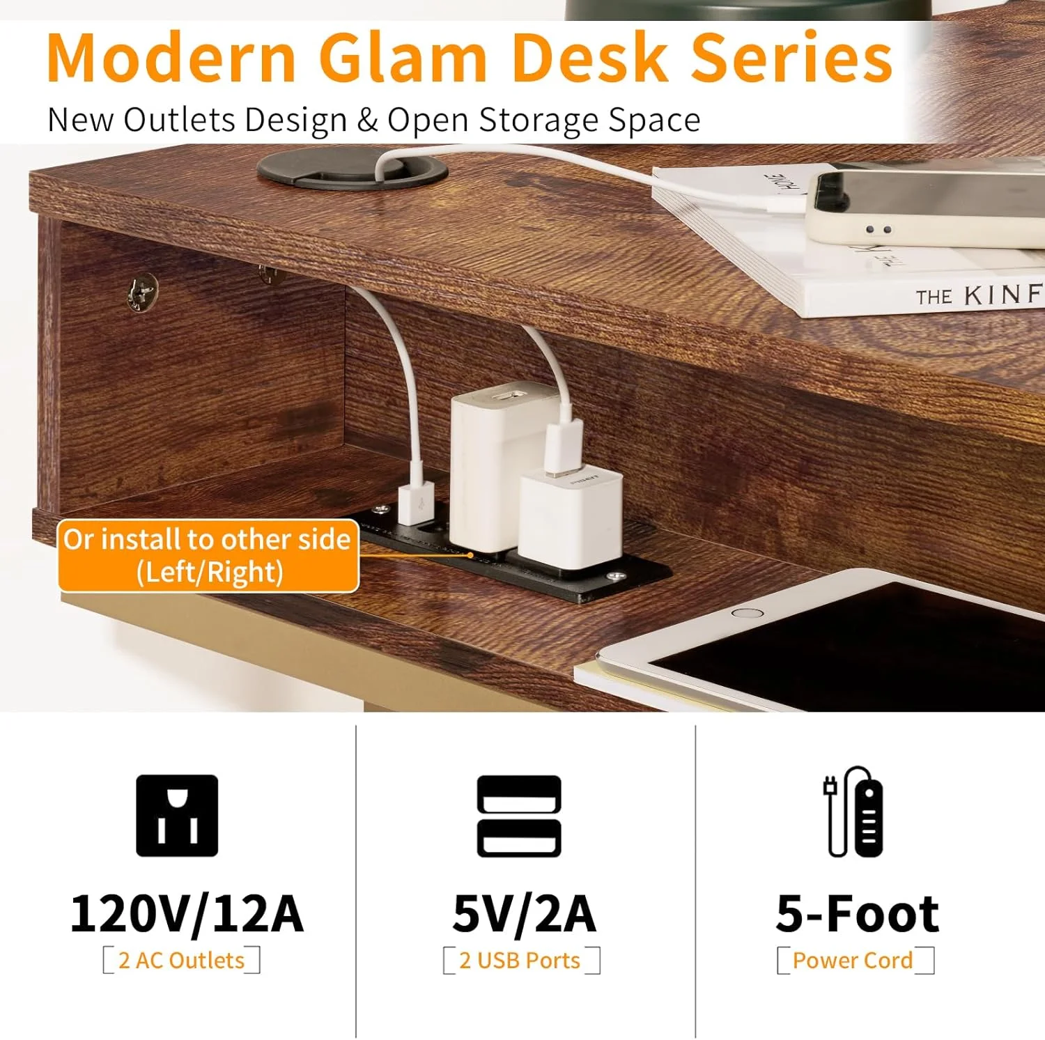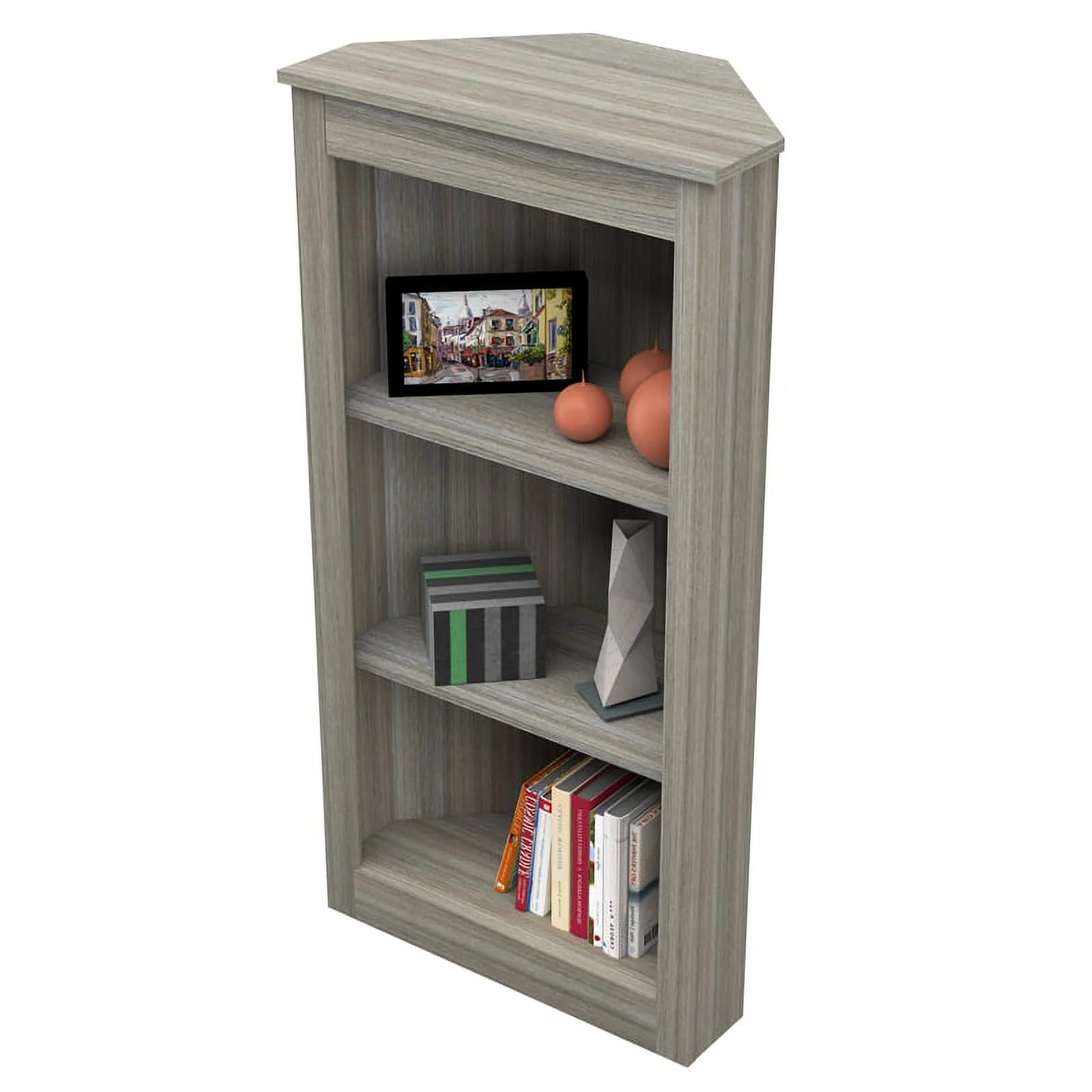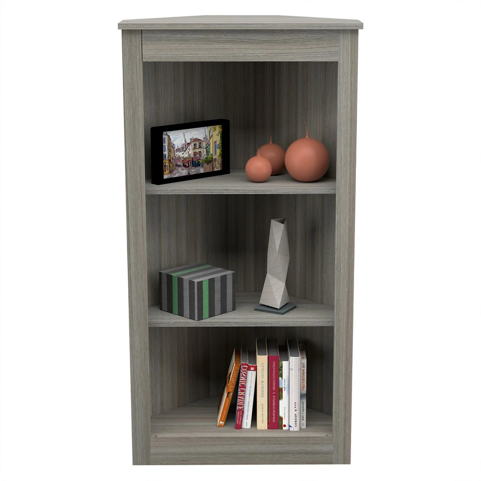 Vera Computer Desk with Top Open Shelf with 1-Drawer & 2-Storage Shelves, Smokey Oak
