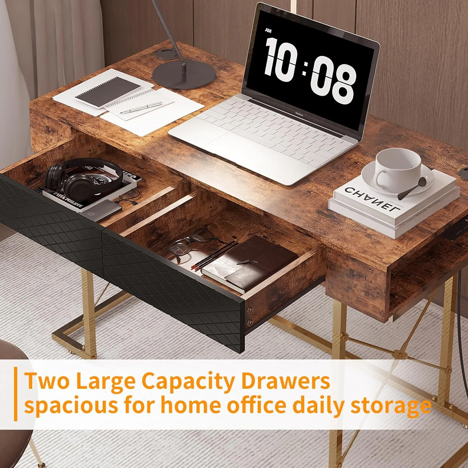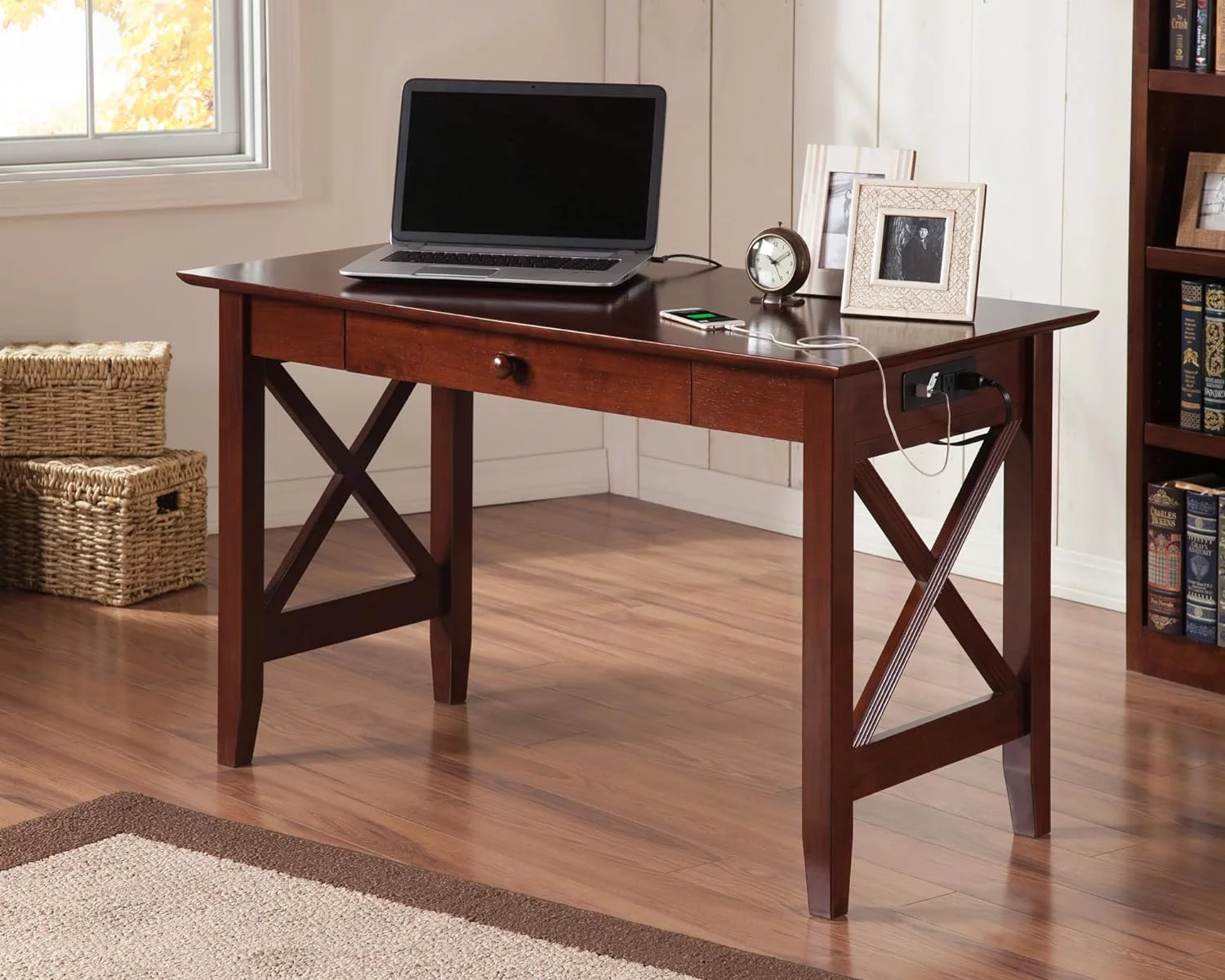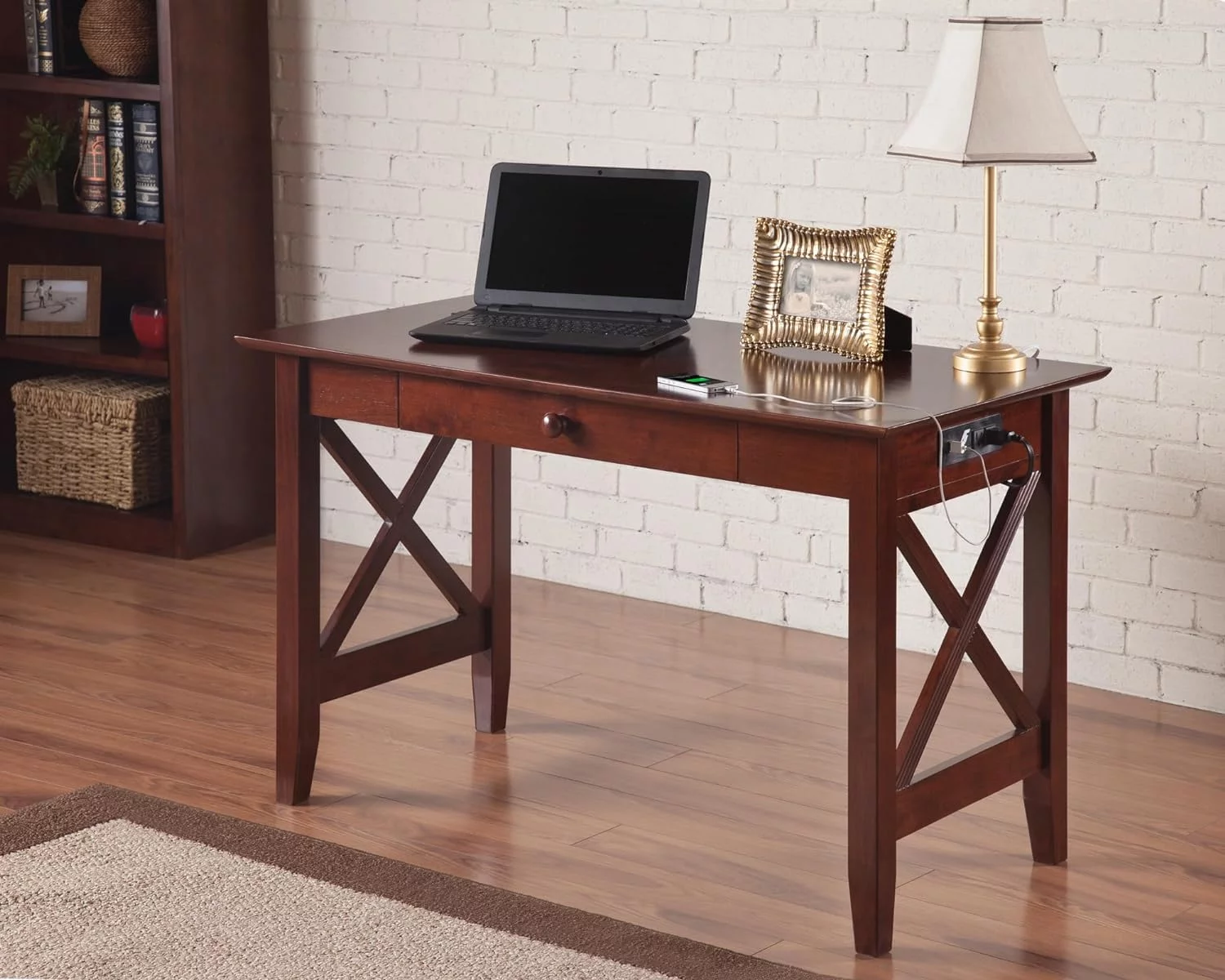 Home Square 2-Piece Set with Computer Desk & Accent Chest in Chalked Chestnut