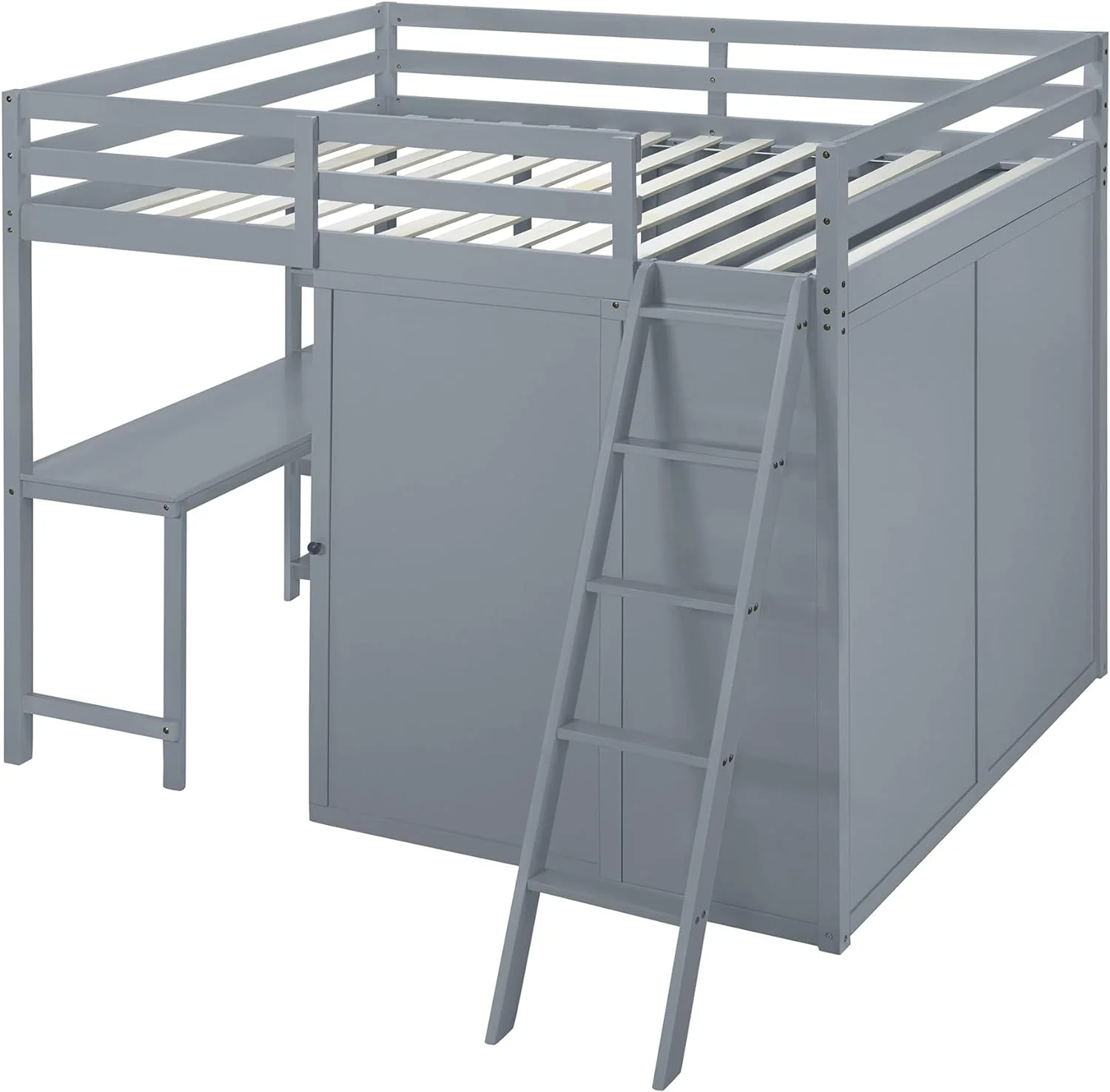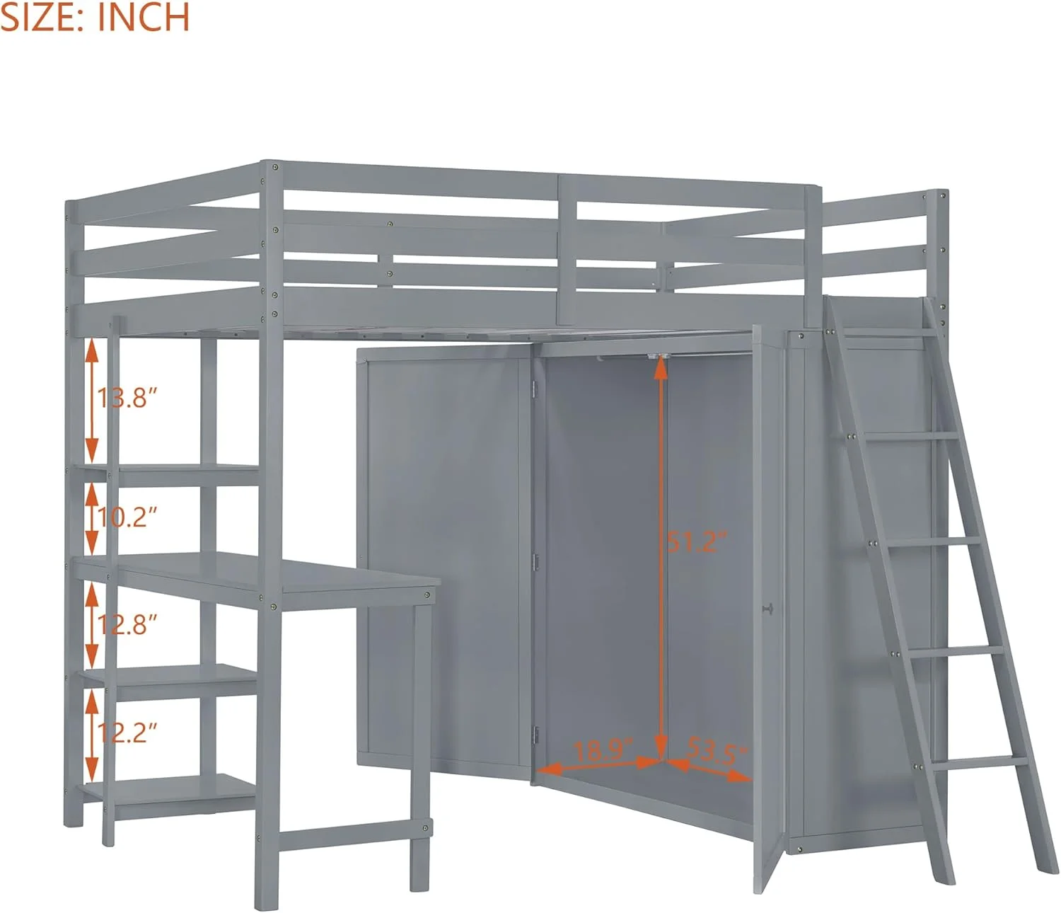 Loft Bed With Wardrobe And Desk, Solid Wood Loft Bed Frame With Storage, For Kids Teens Adults ( Size, Gray)