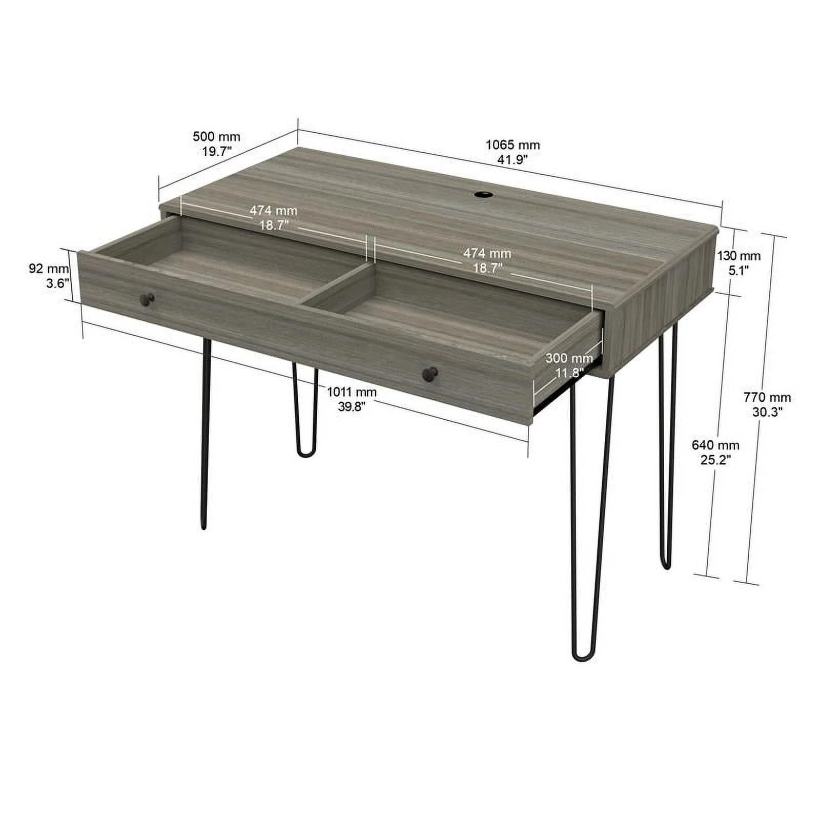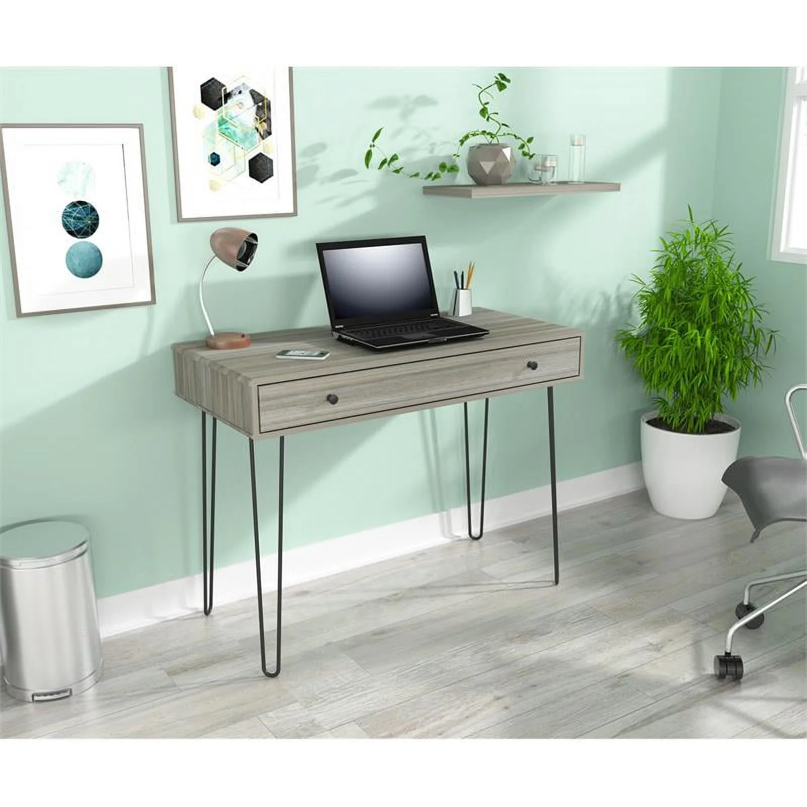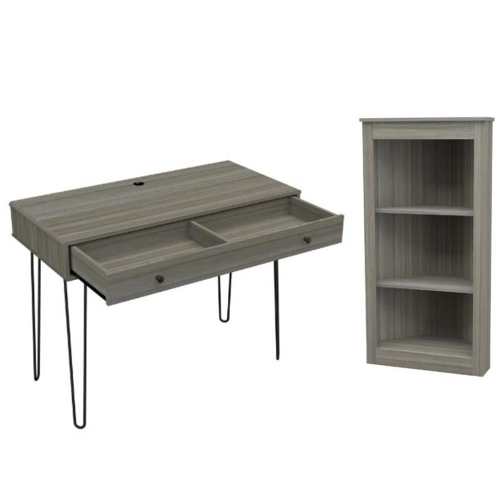 Home Square 2-Piece Set with 1 Drawer Computer Desk & Bookcase in Gray Smoke Oak