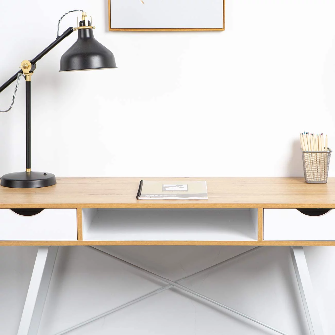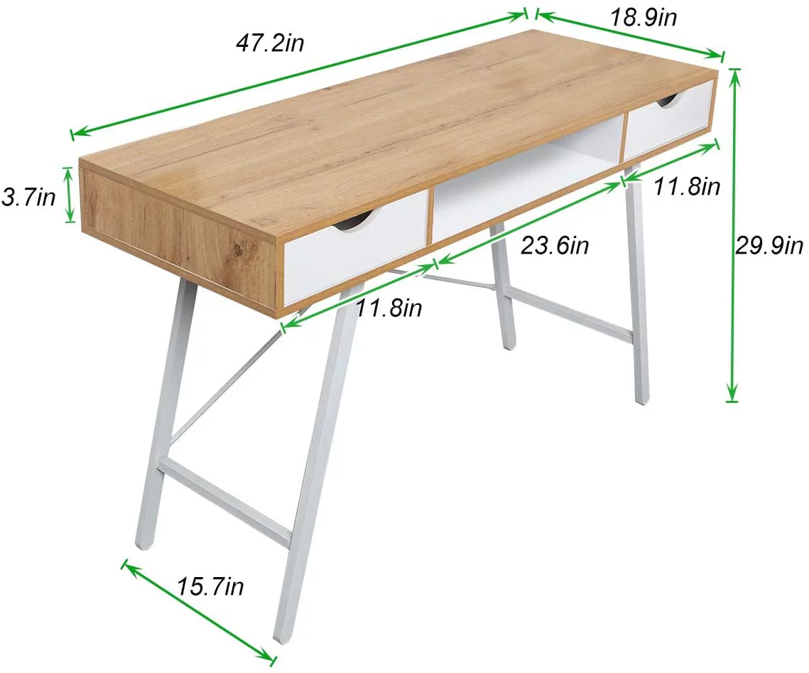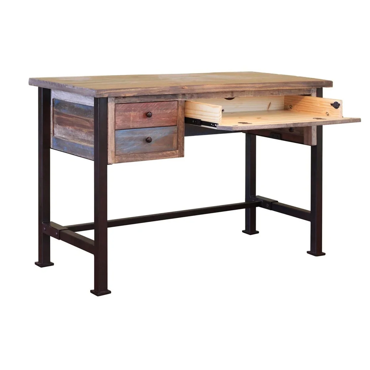 Fena 48 Inch 3 Drawer Office Desk Iron Base Multicolor Distress Pine Wood- Saltoro Sherpi