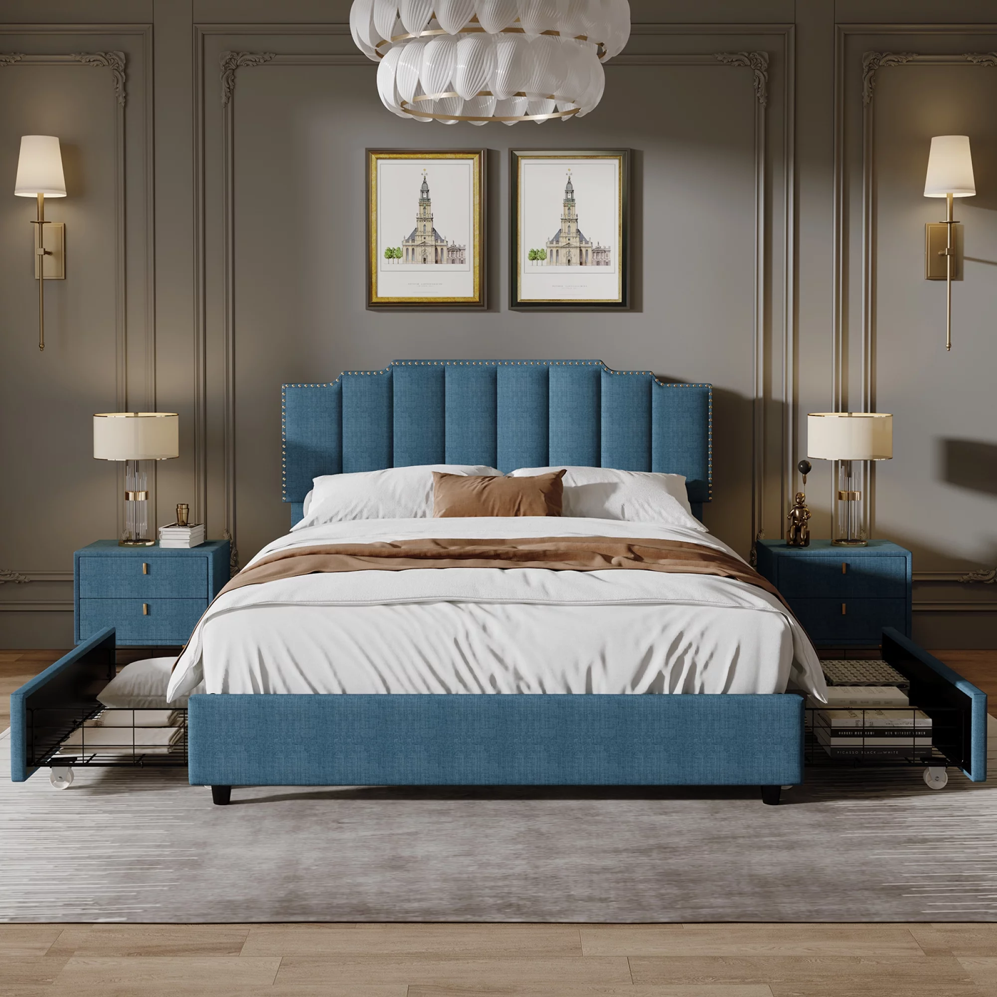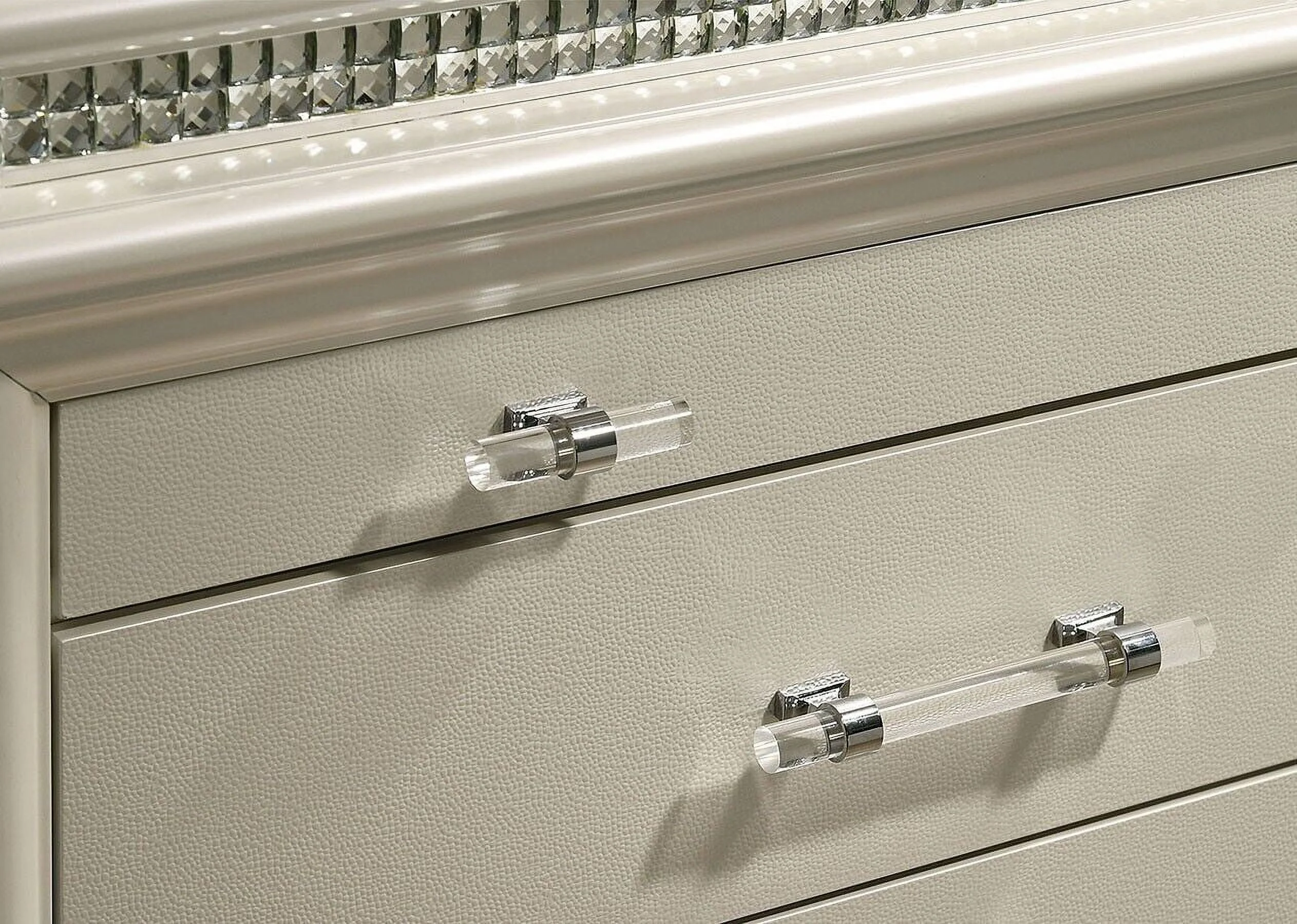 1pc Cal King Size Bed Pearl White Color Contemporary Bedroom Furniture Storage Footboard Padded Headboard w LED Acrylic Legs