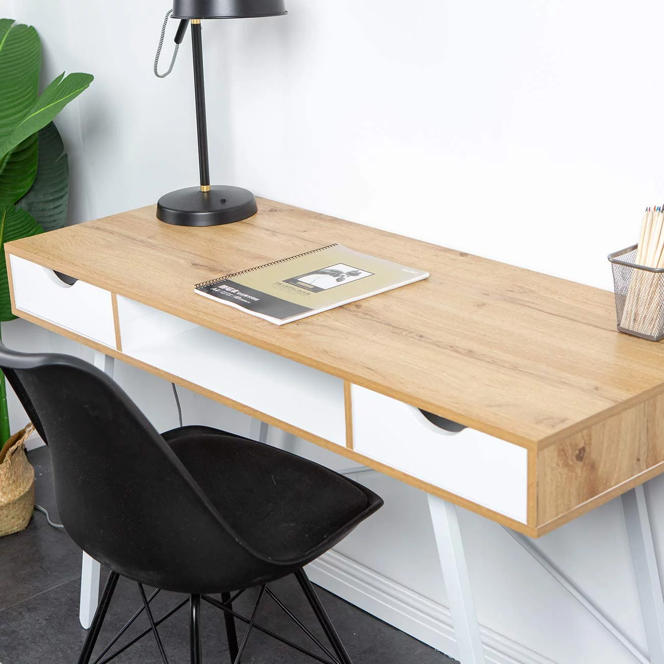 Home Square 2-Piece Set with 3 Drawer Small Chest and Mini Wood Desk in Black