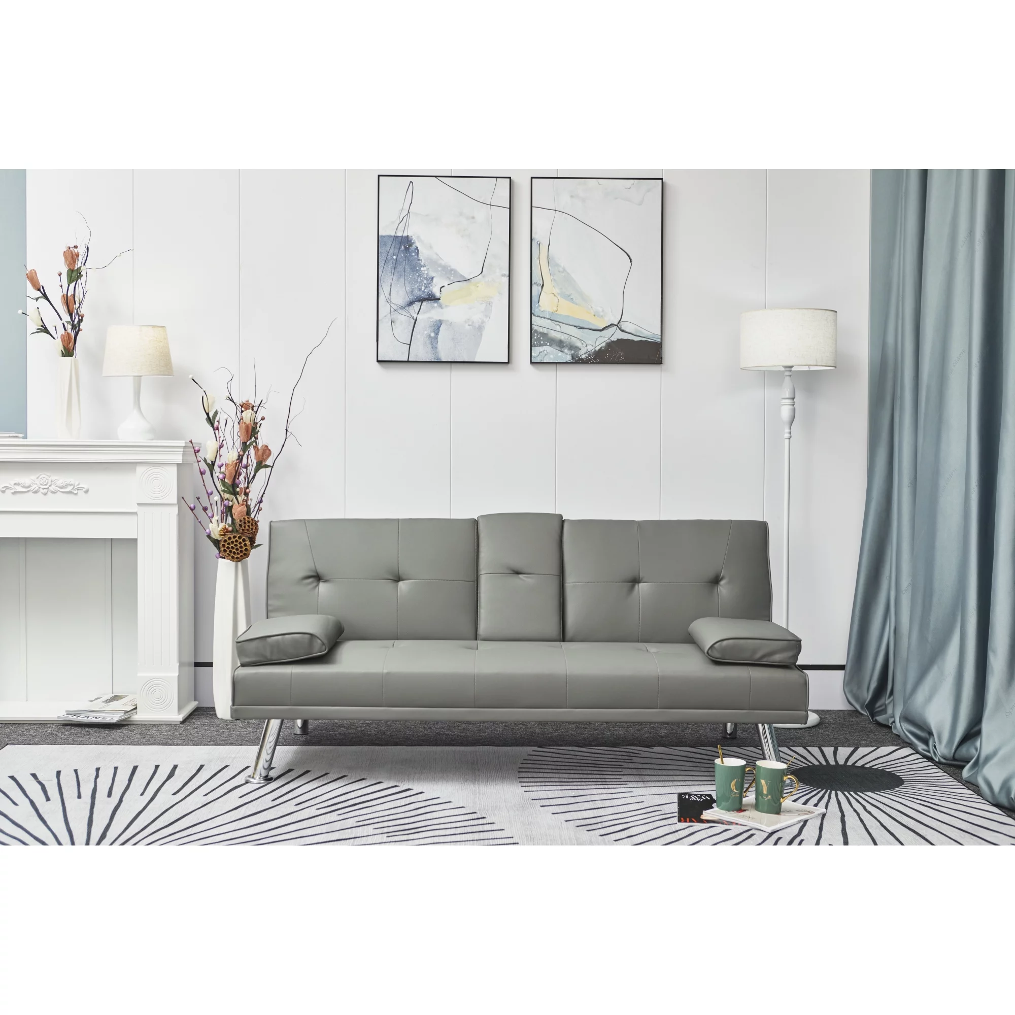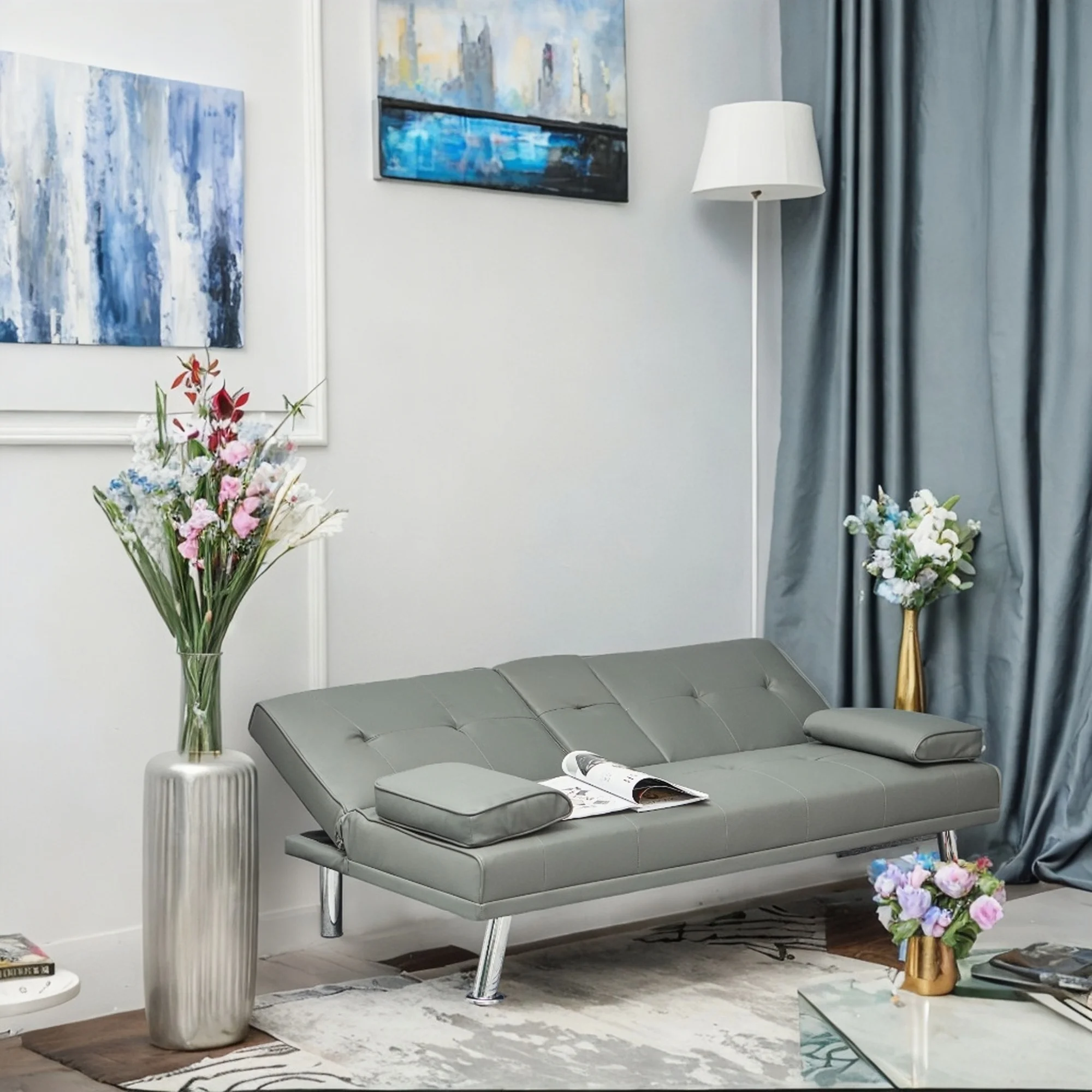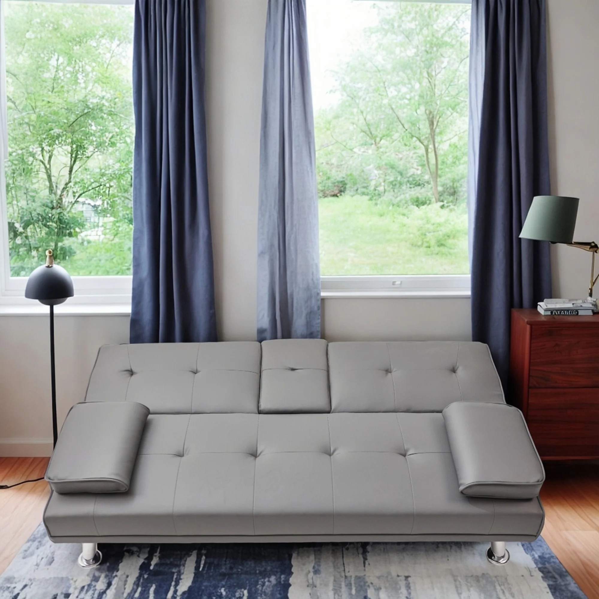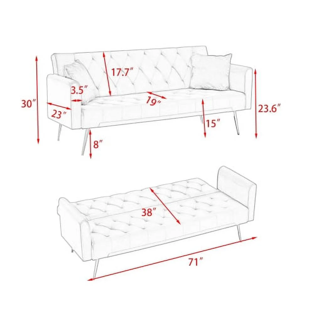 Docooler Retro Blue Double Corner Folding Sofa Bed, Two Throw Pillows, Large Size, Ideal for Living Rooms
