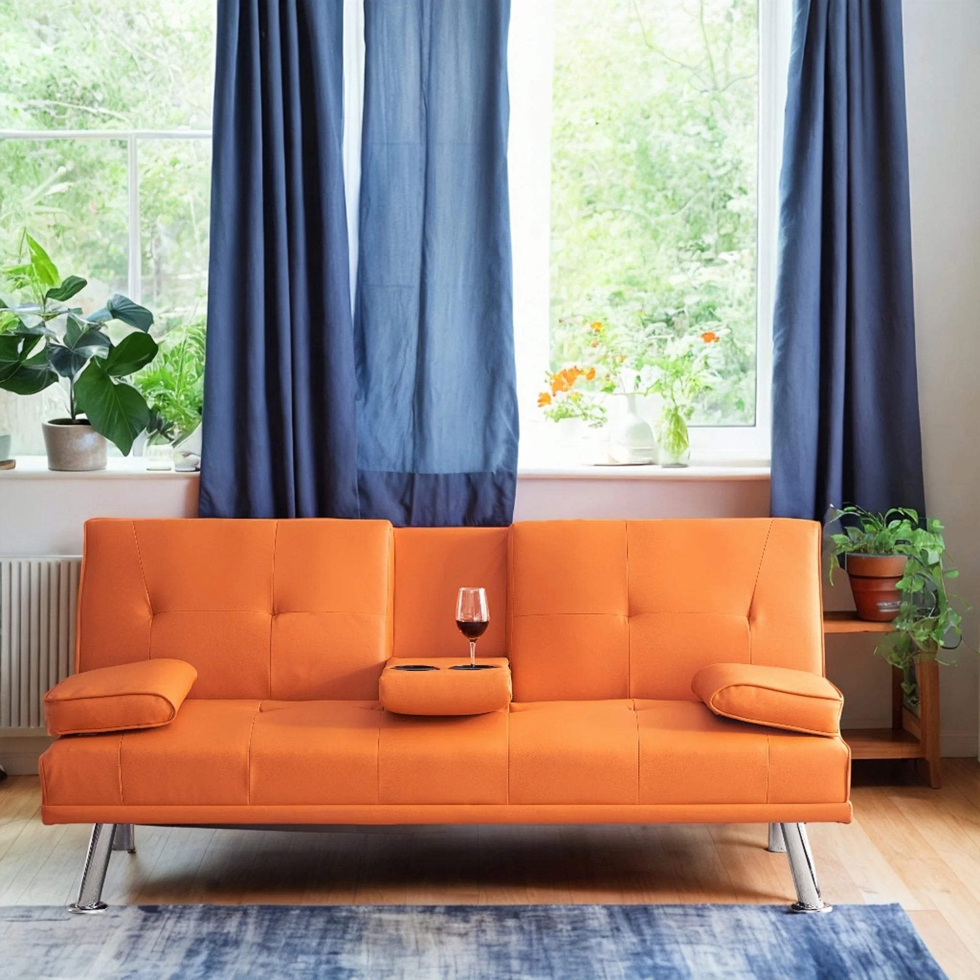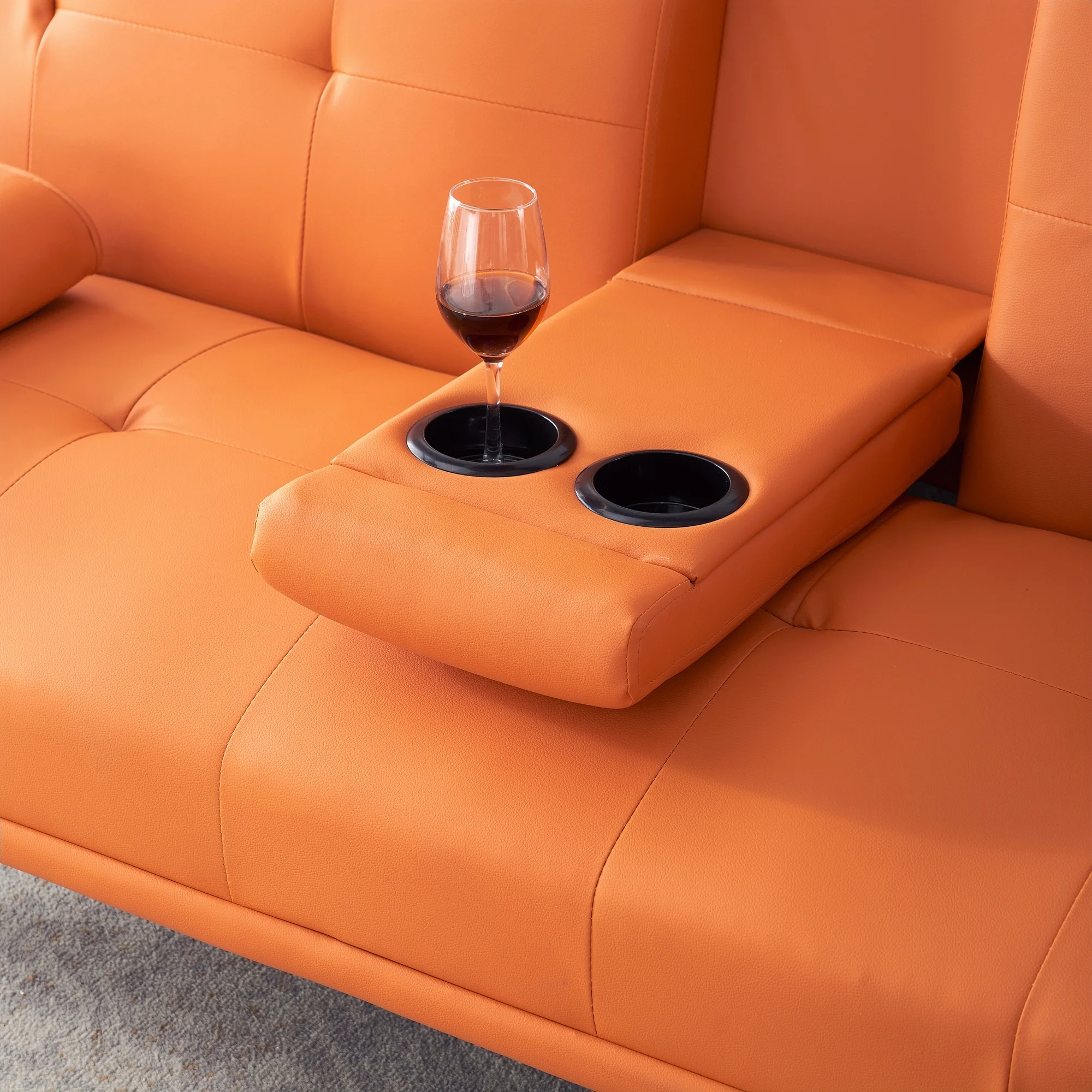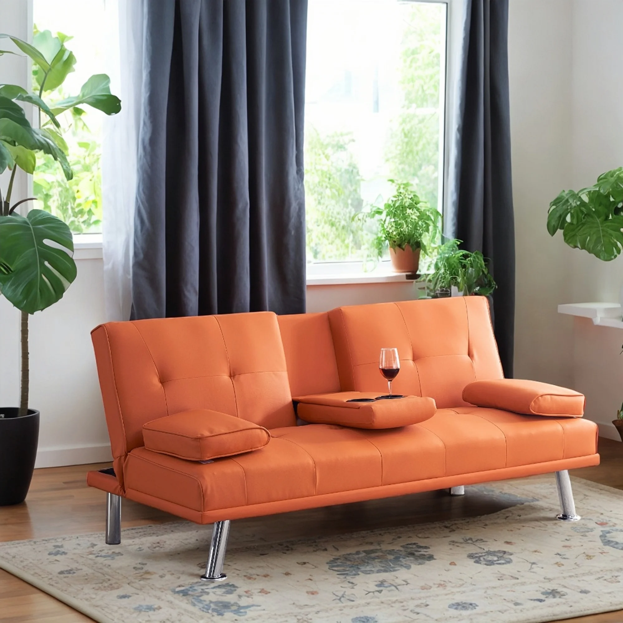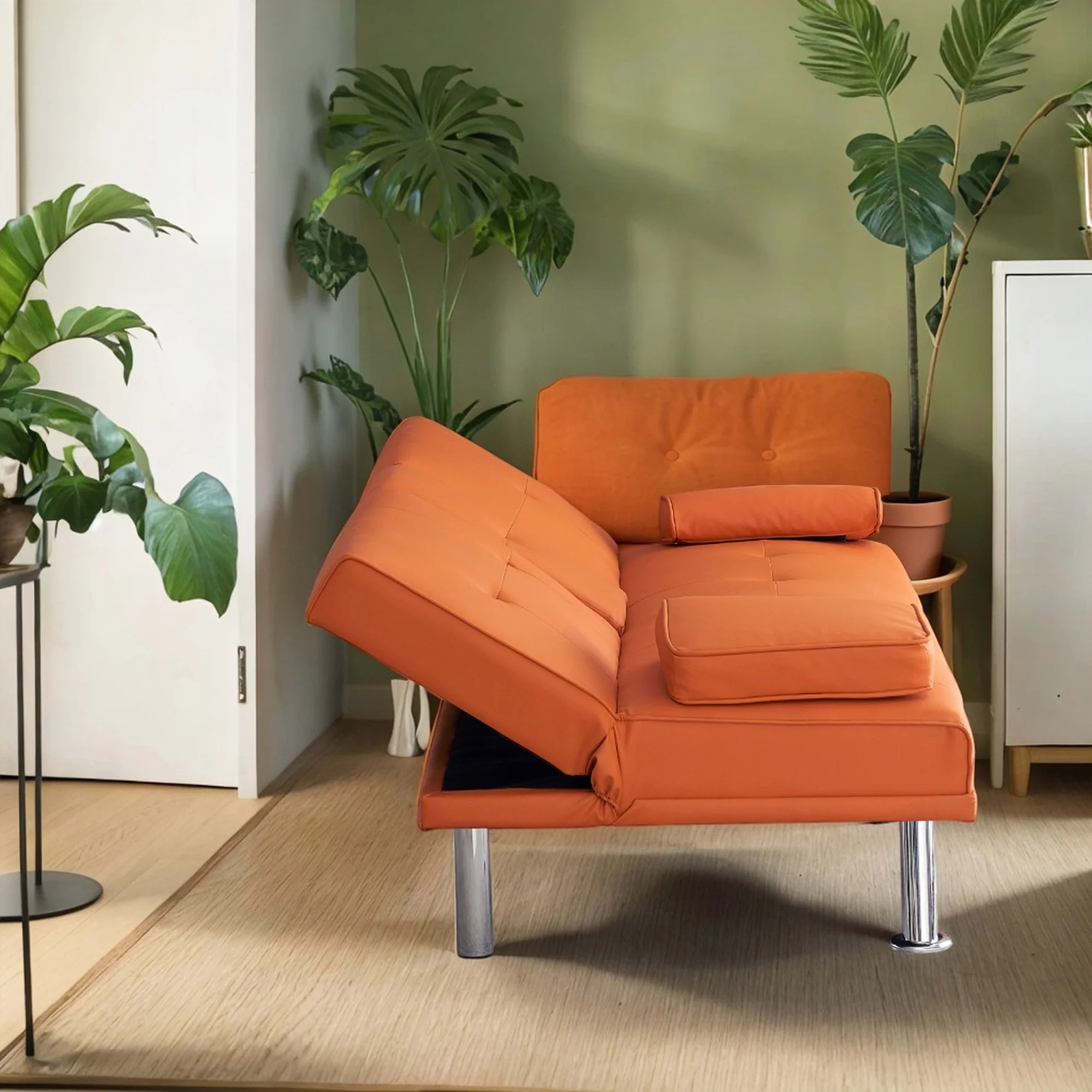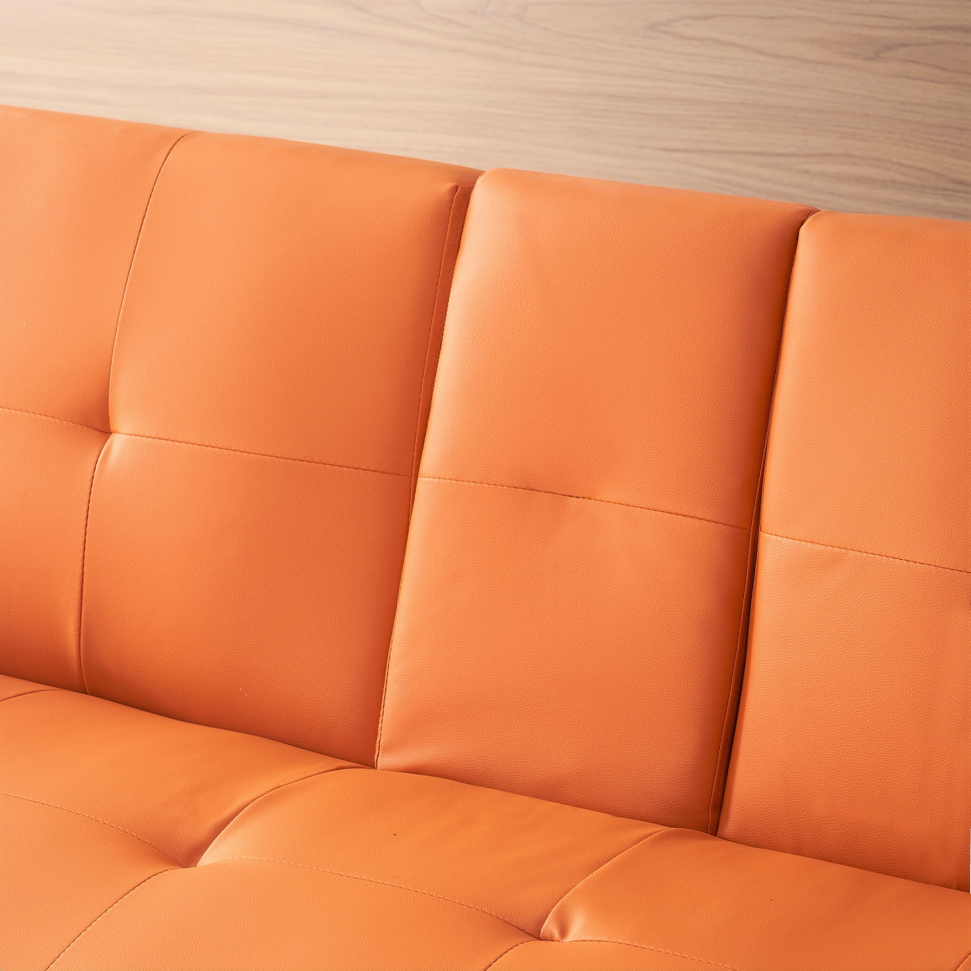 CoSoTower 67" Orange Leather Multifunctional Double Folding Sofa Bed for Office with Coffee Table