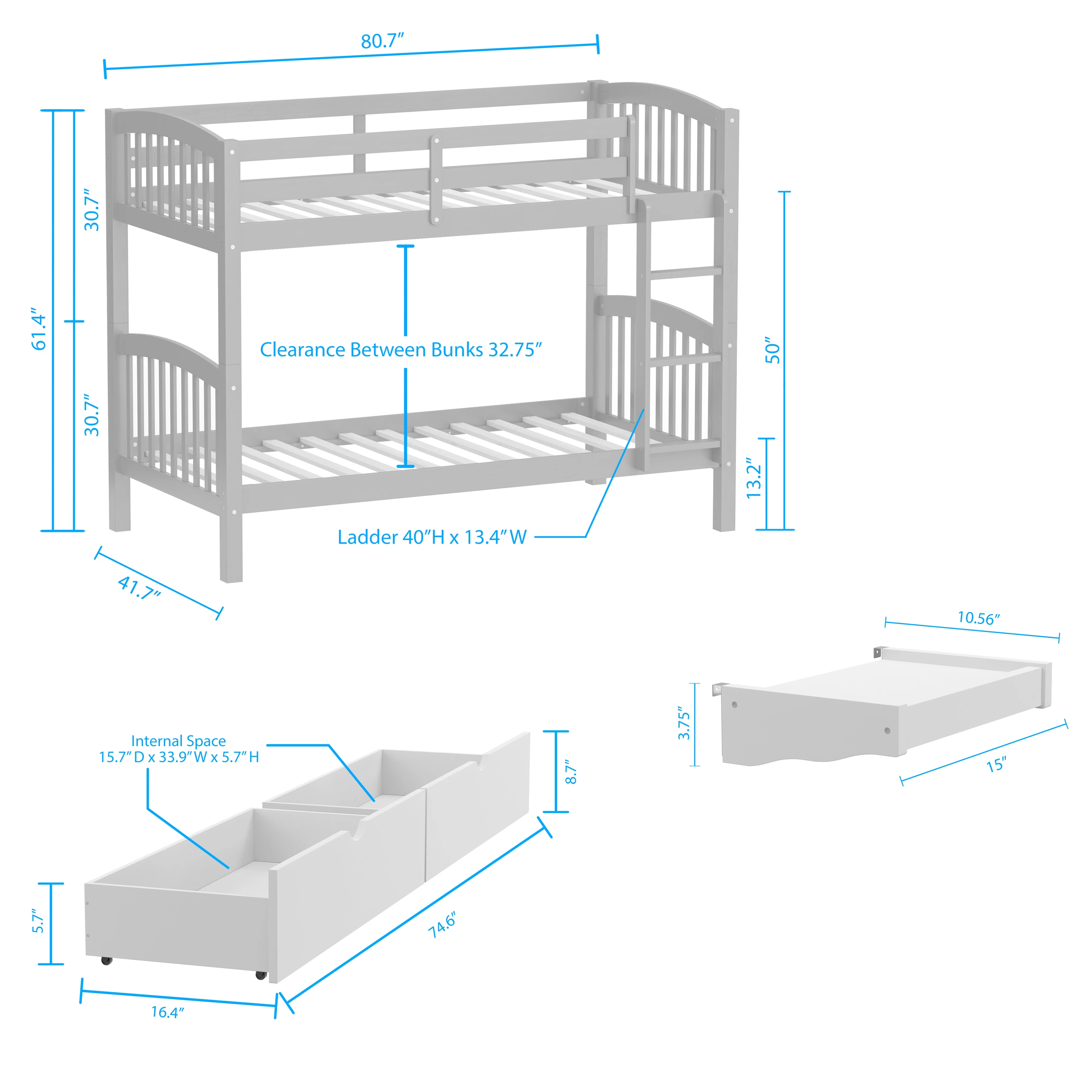 BEKids Traditional Solid Wood Full/Full Bunk Bed with Slats in White