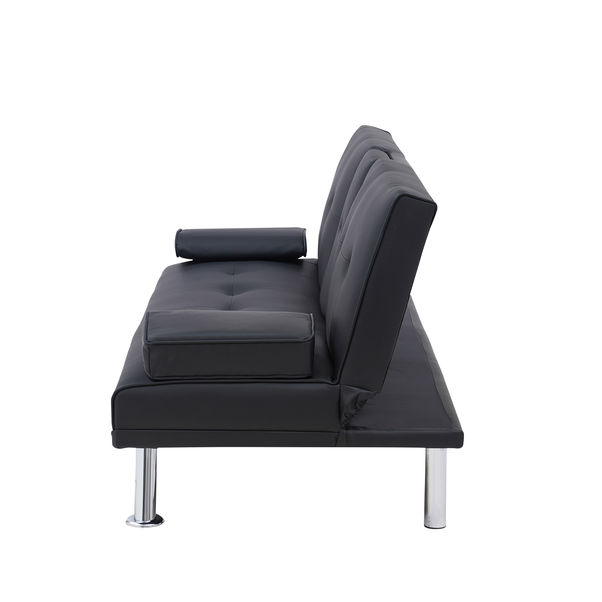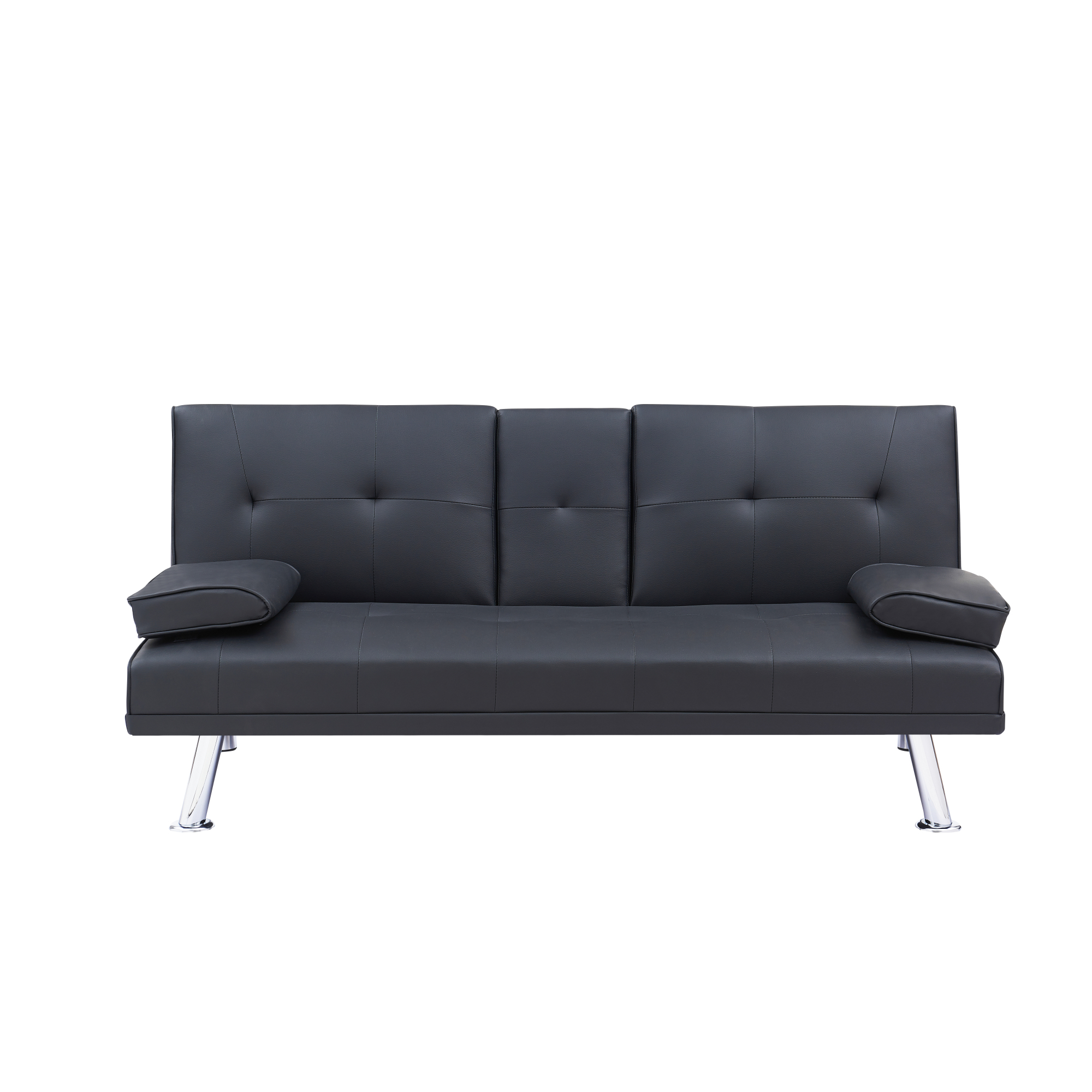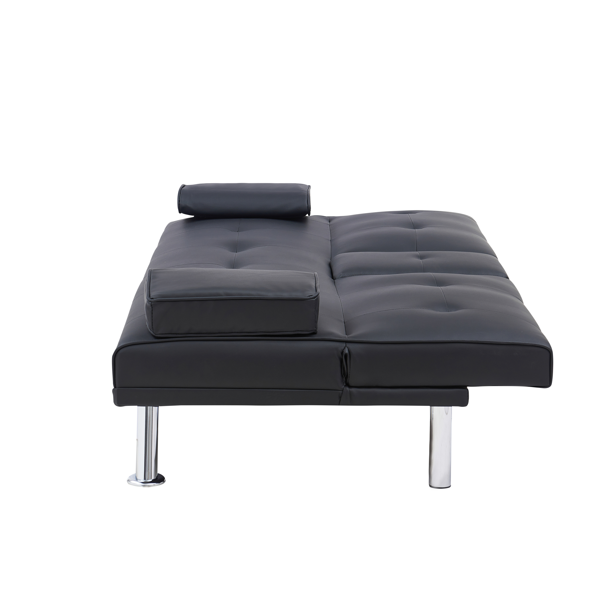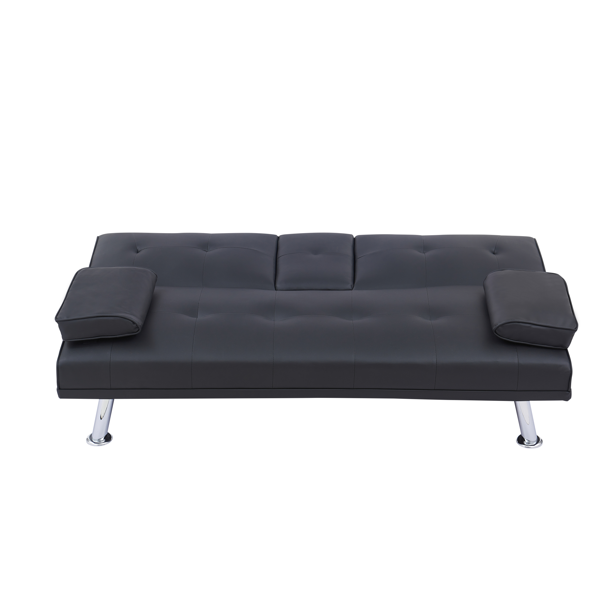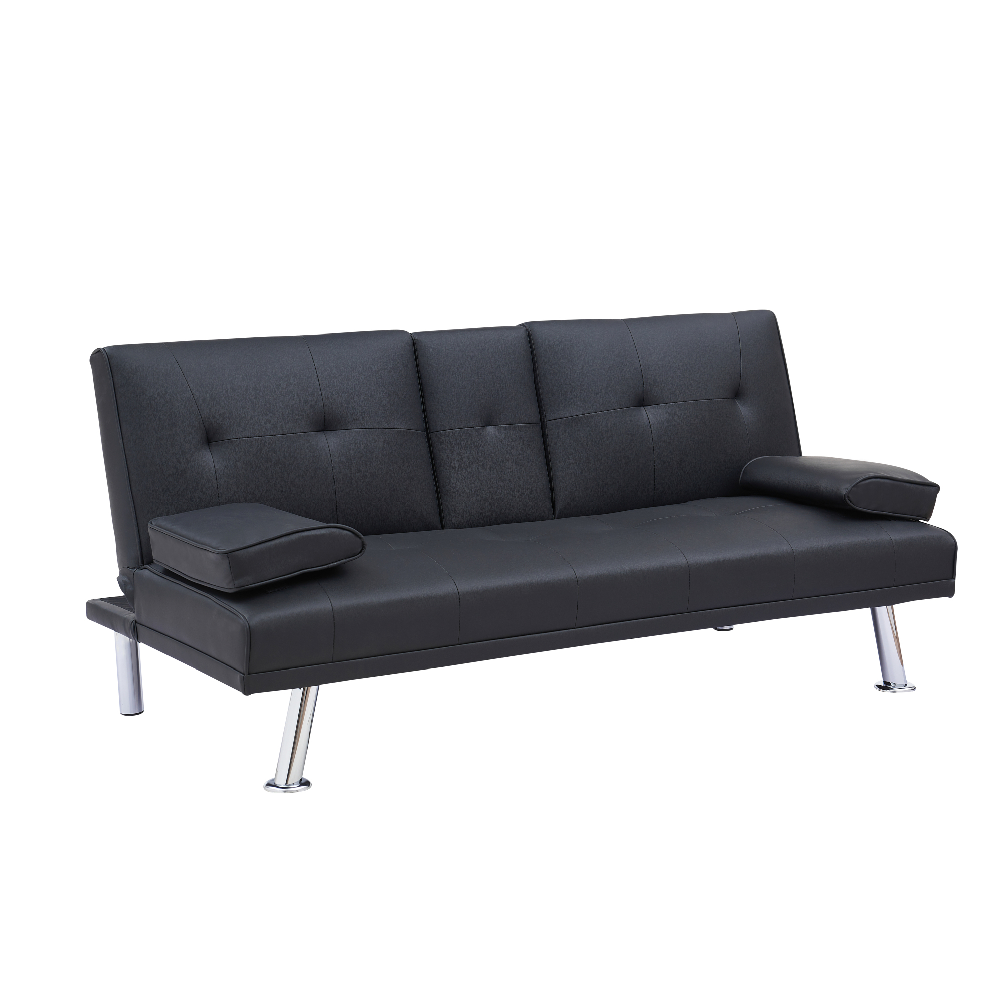 Black Leather Multifunctional Double Folding Sofa Bed for Office with Coffee Table