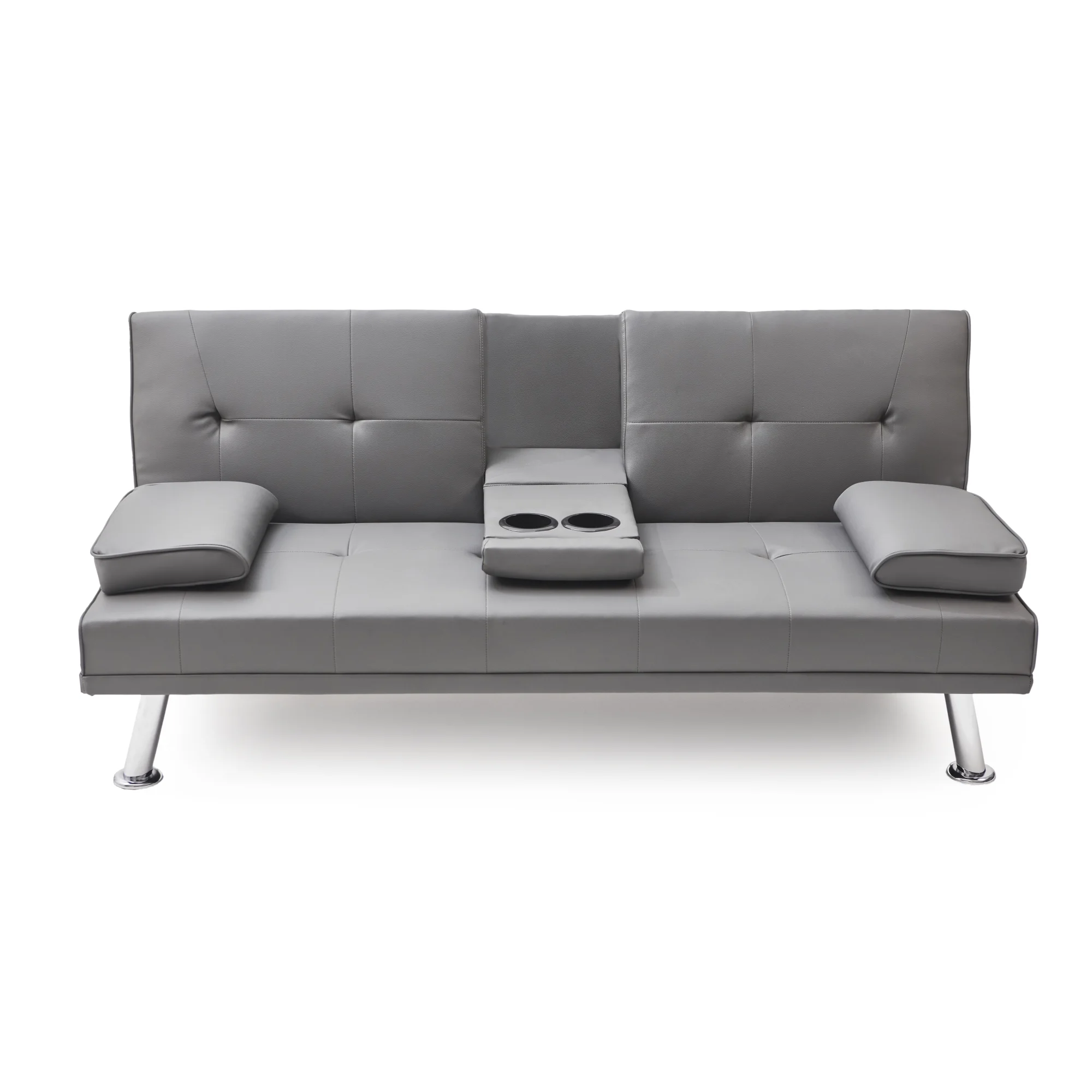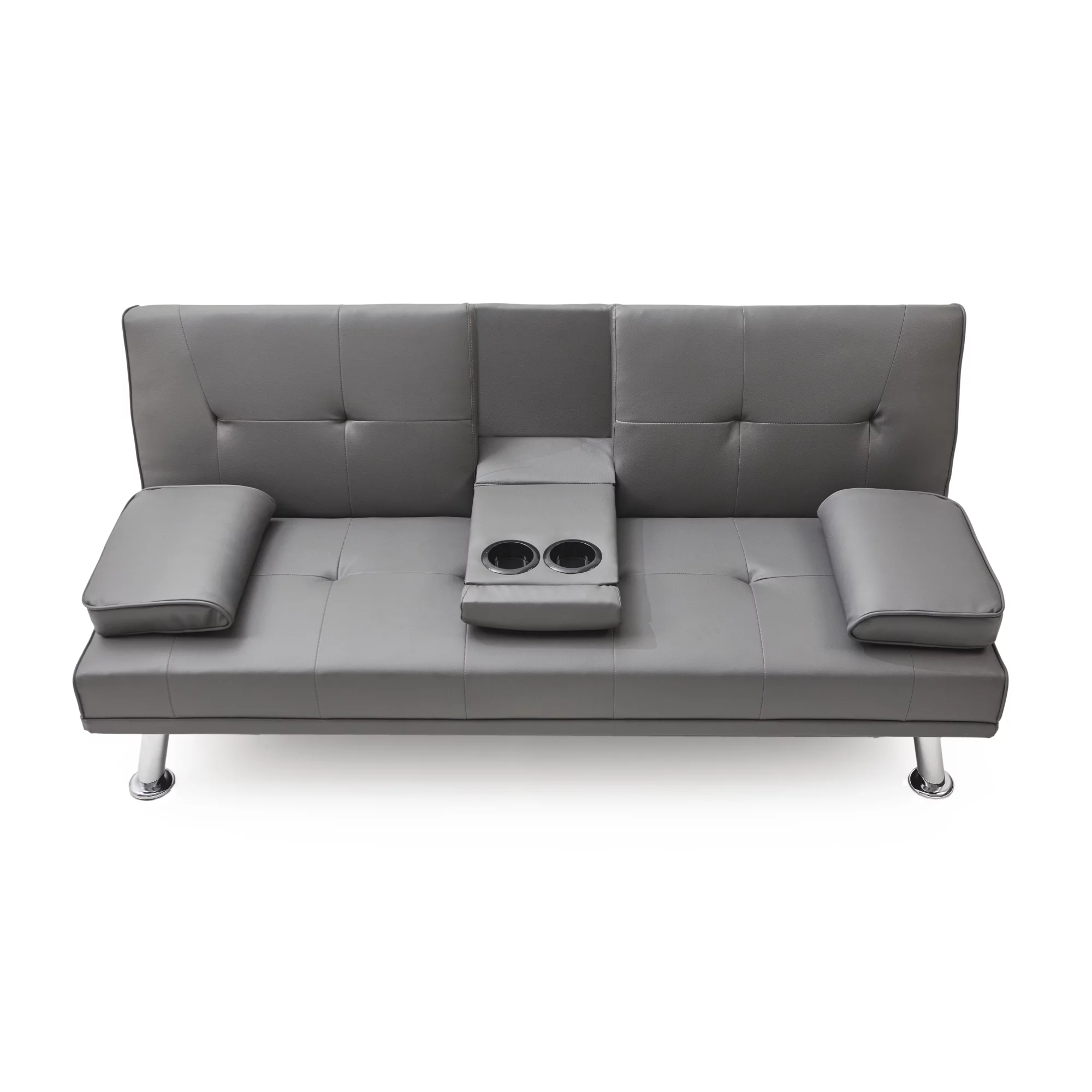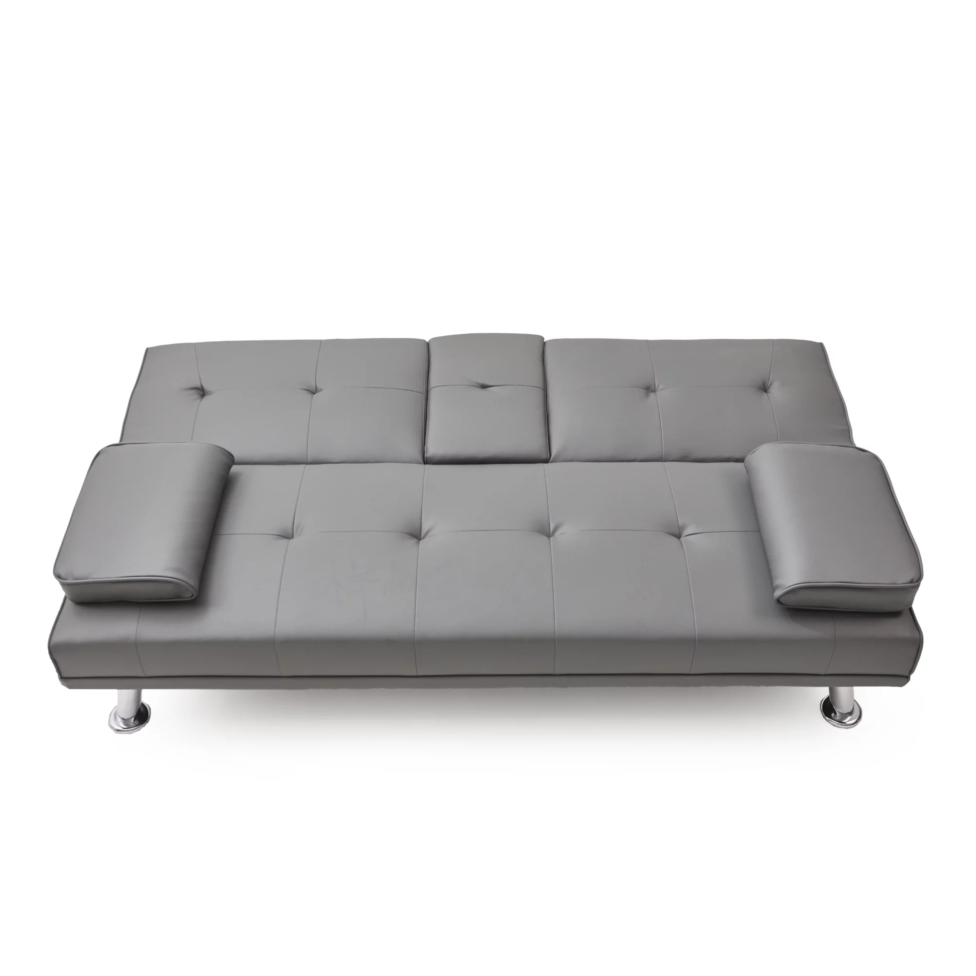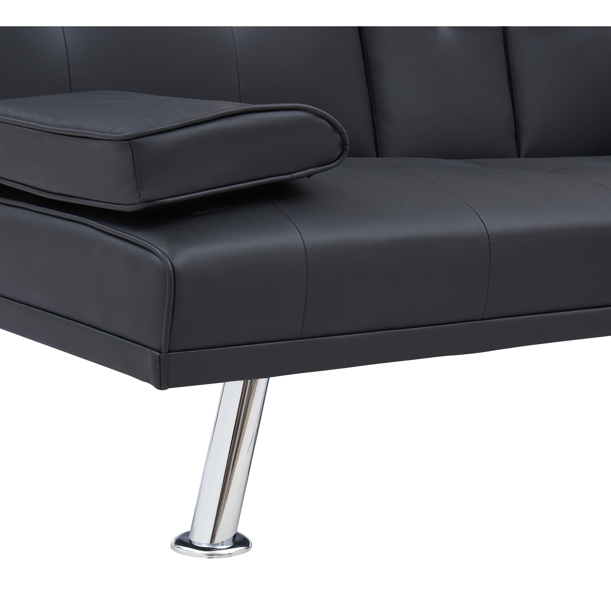 Black Leather Multifunctional Double Folding Sofa Bed for Office with Coffee Table
