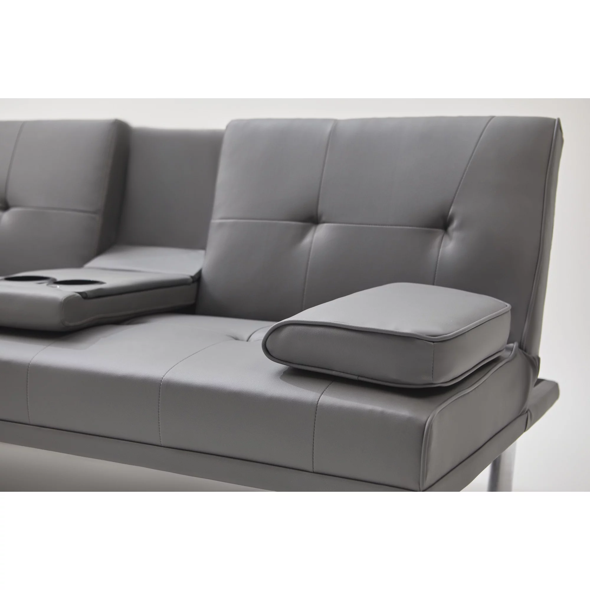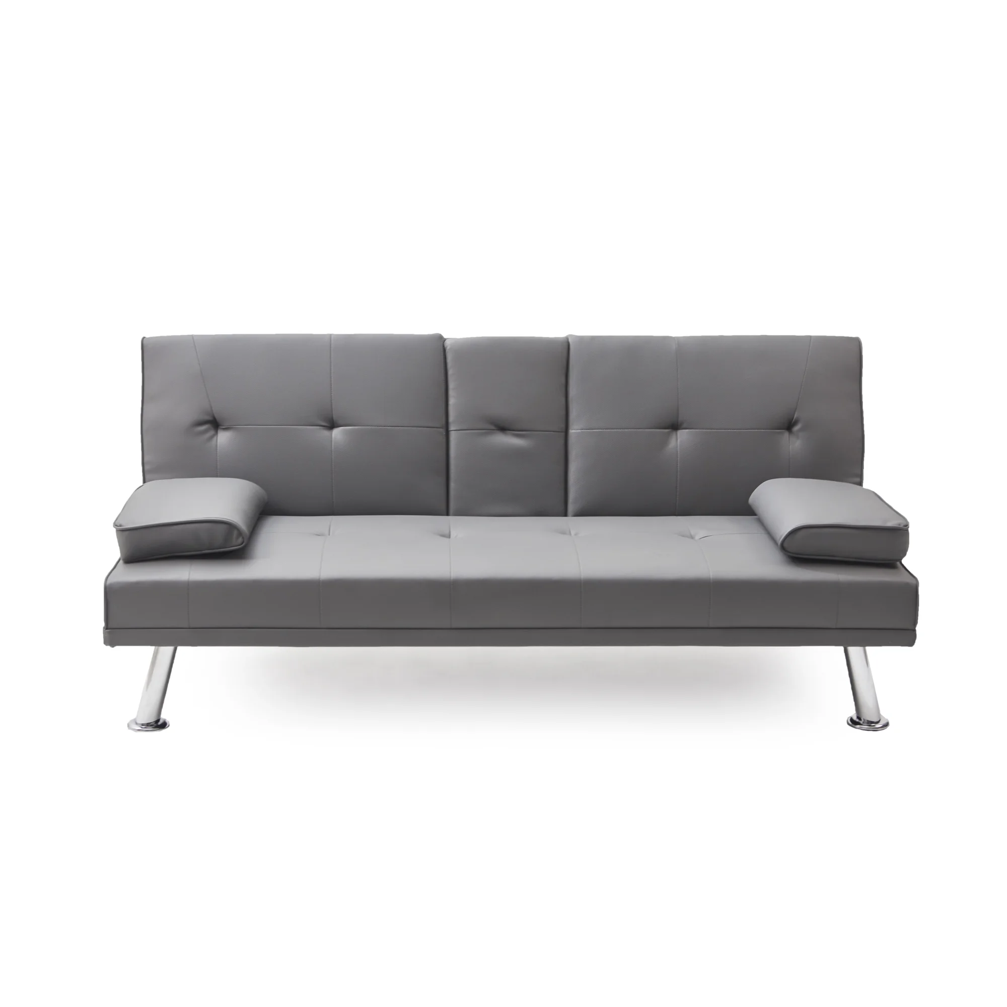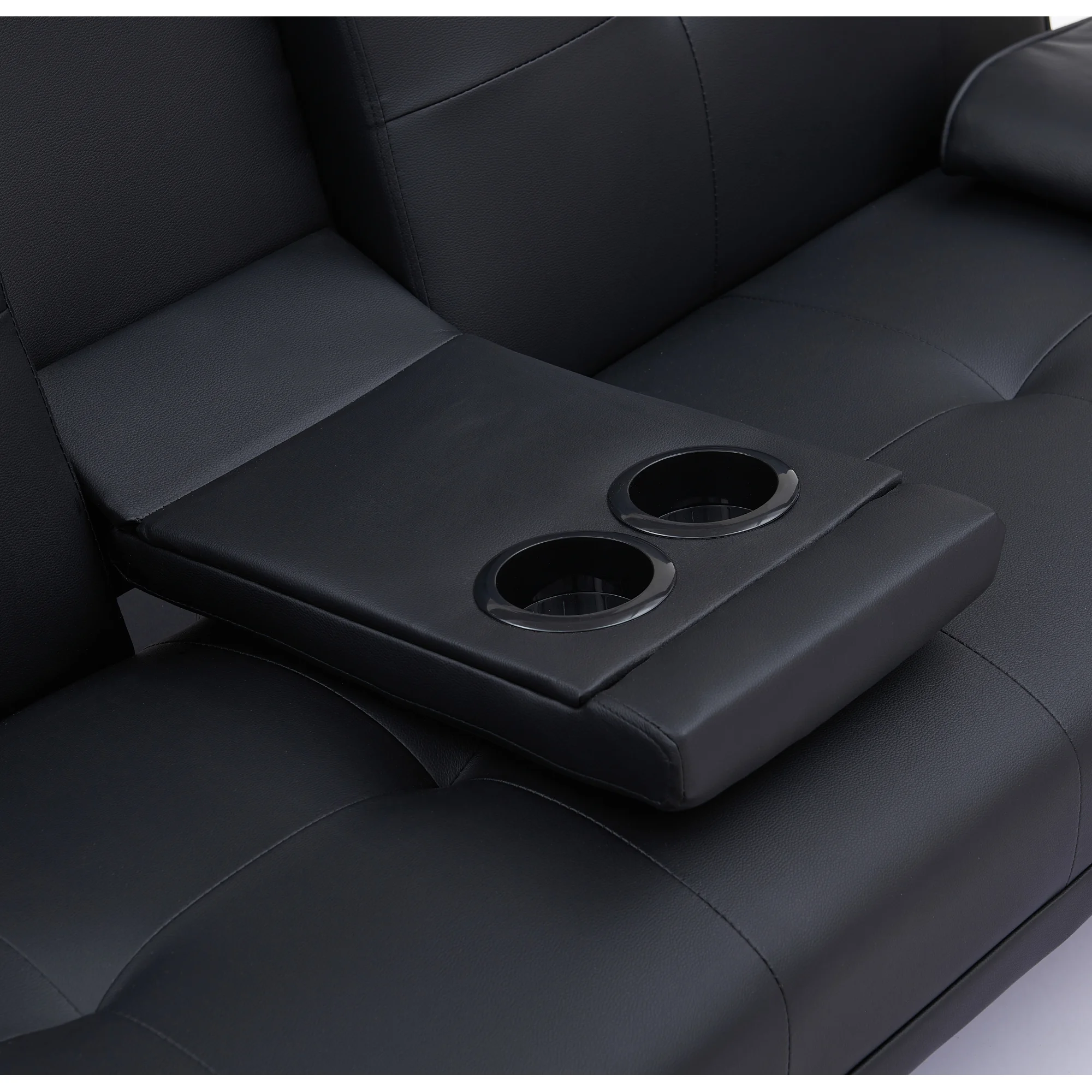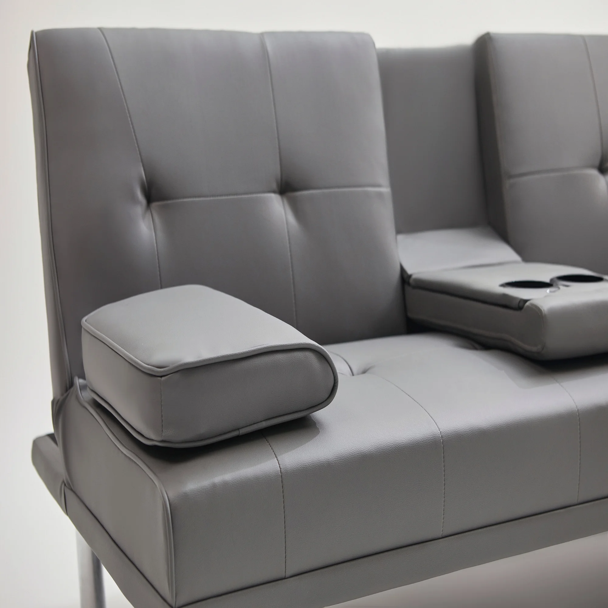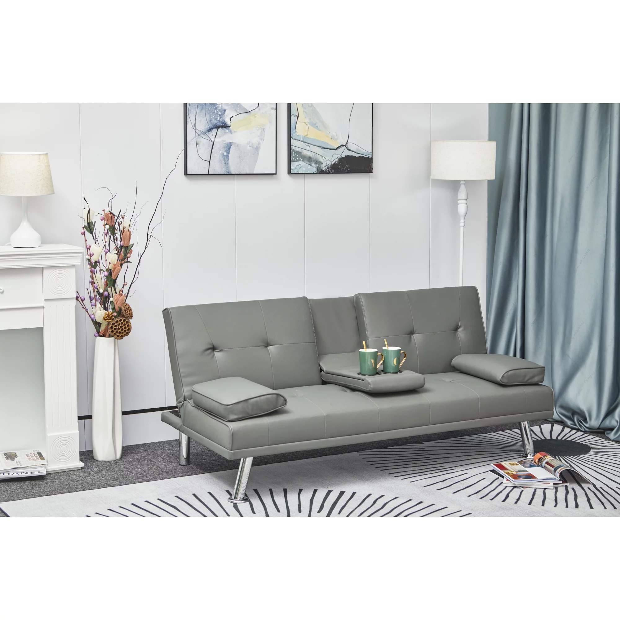 Black Leather Multifunctional Double Folding Sofa Bed for Office with Coffee Table