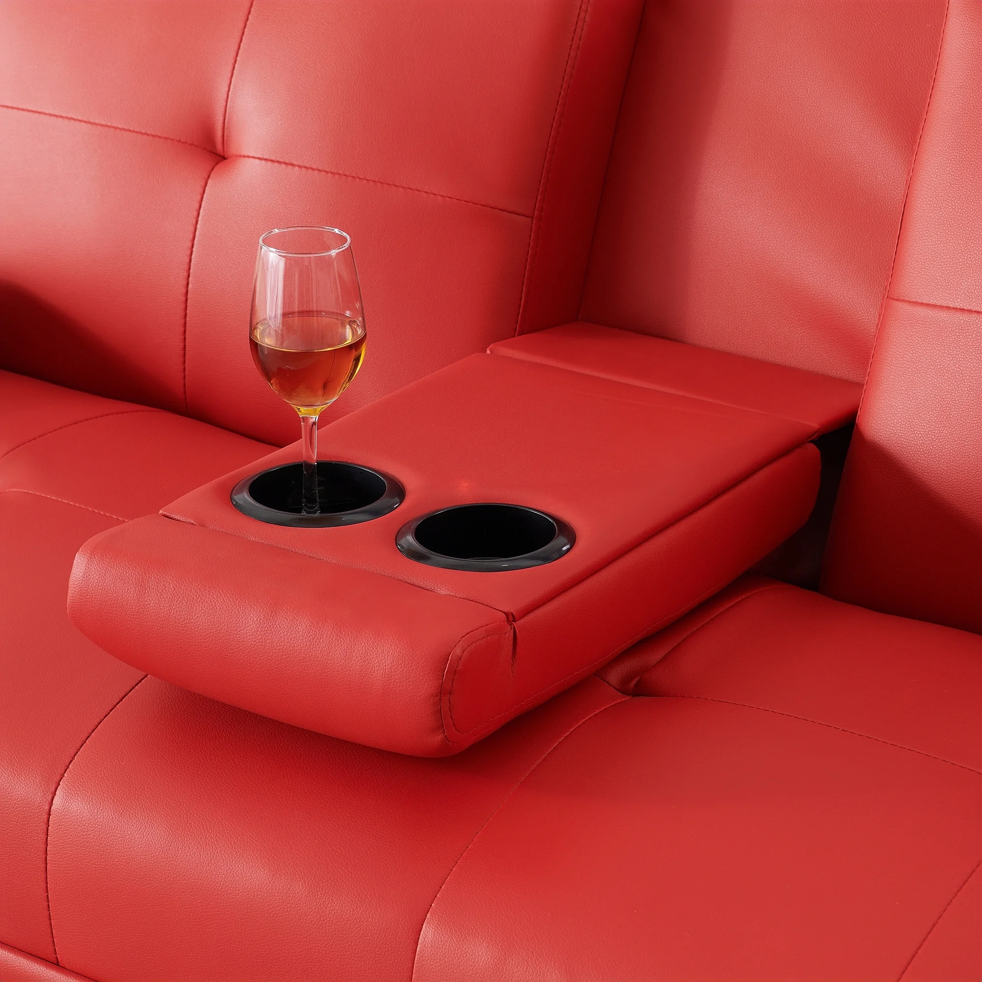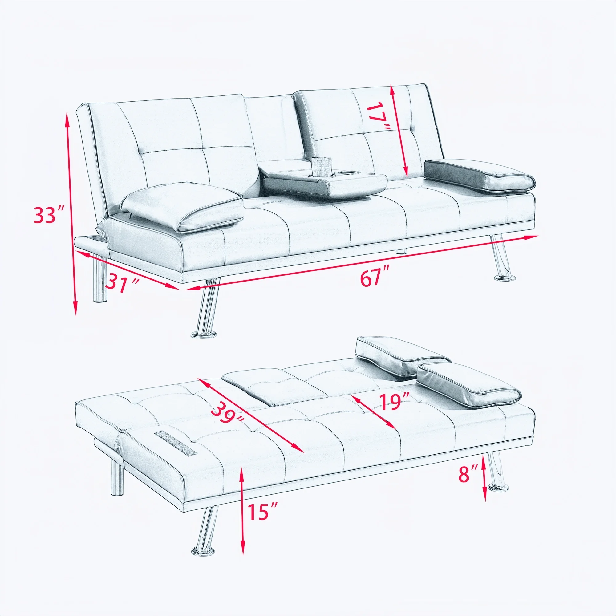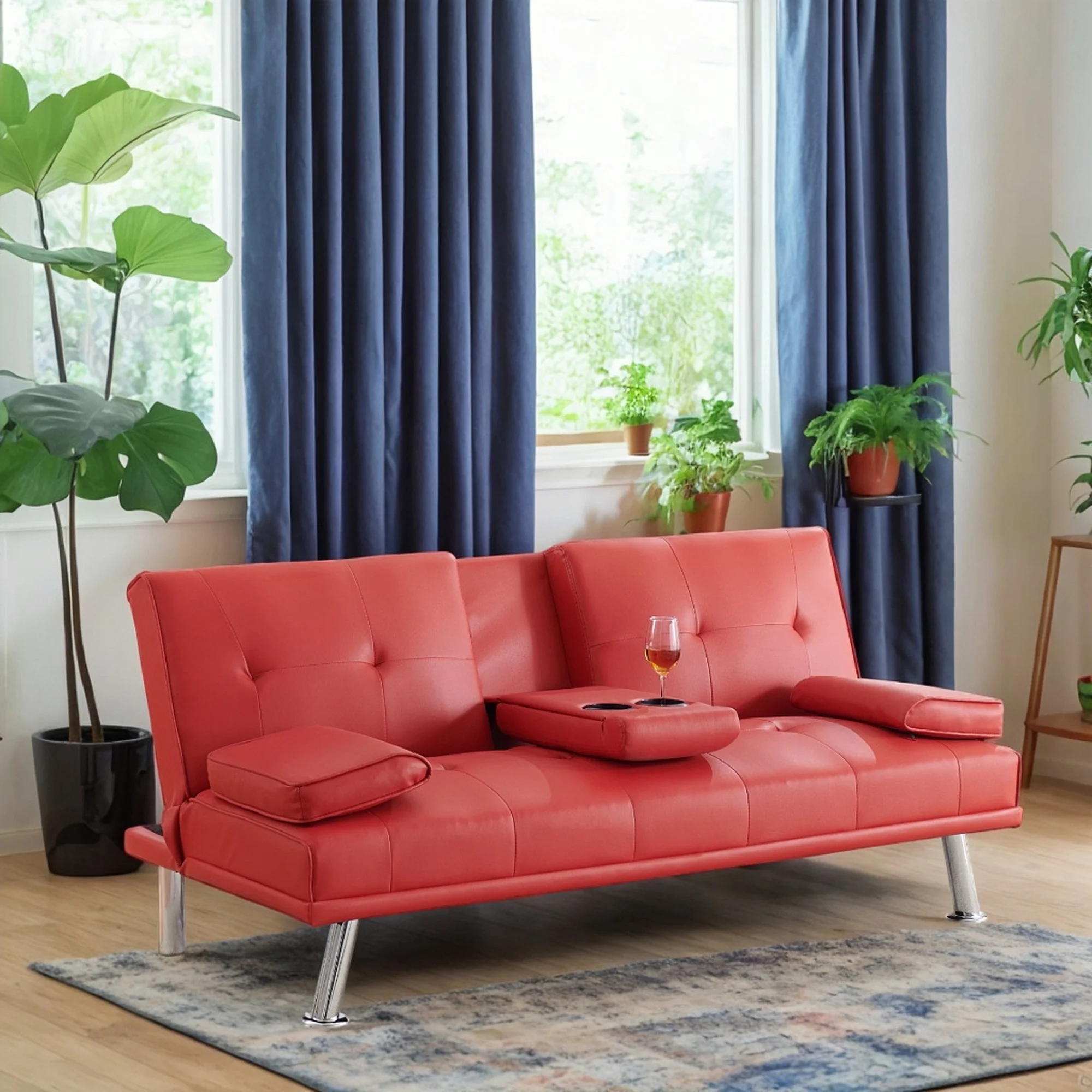 Red Leather Multifunctional Double Folding Sofa Bed for Office with Coffee Table