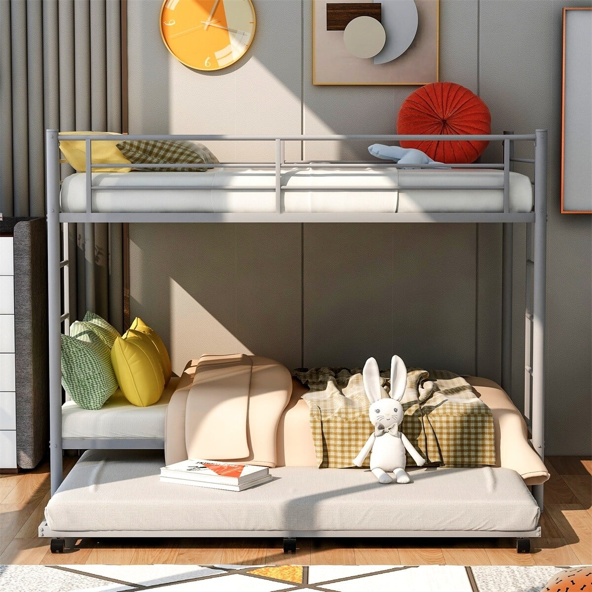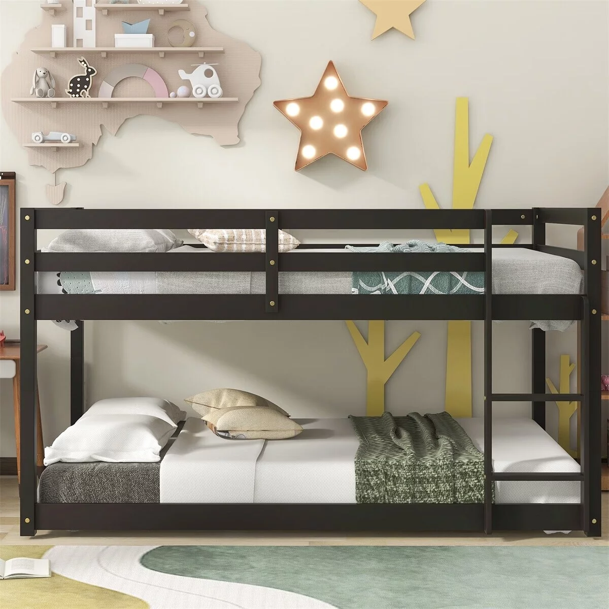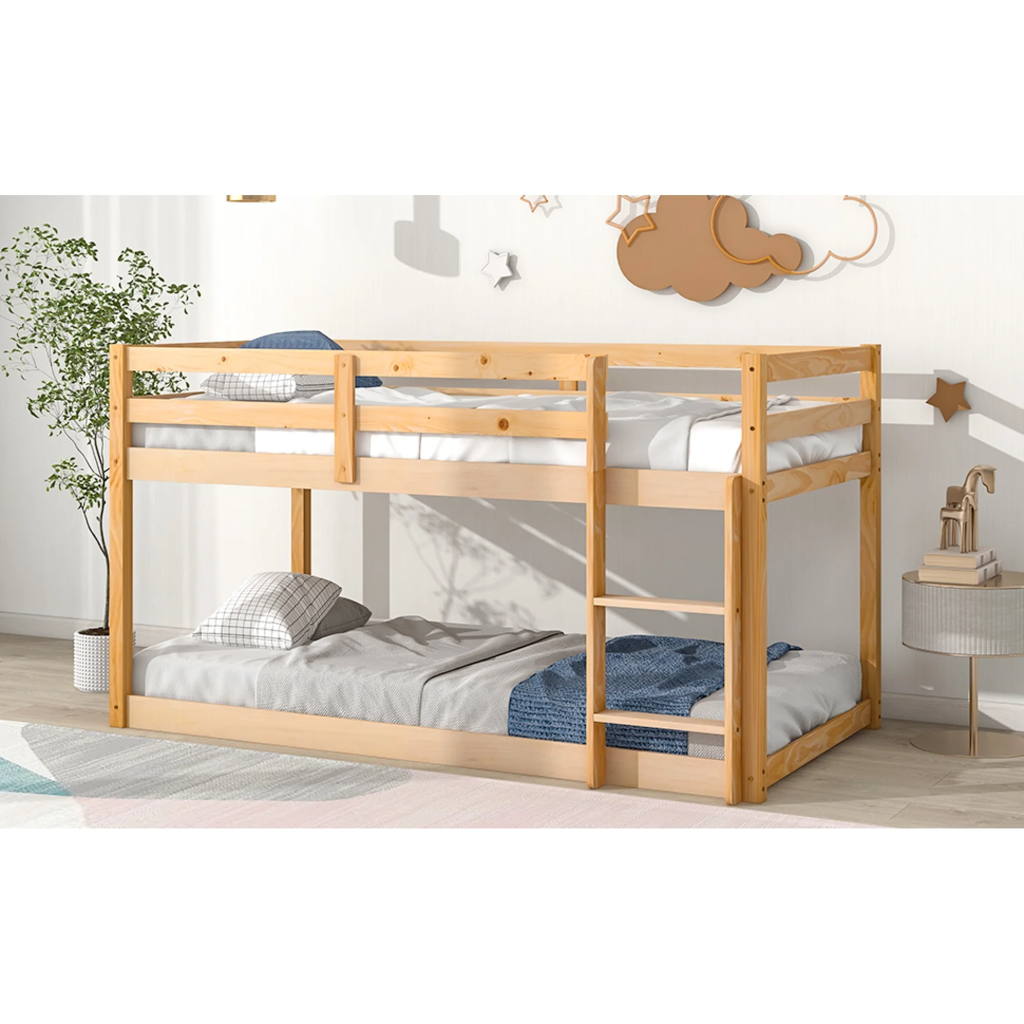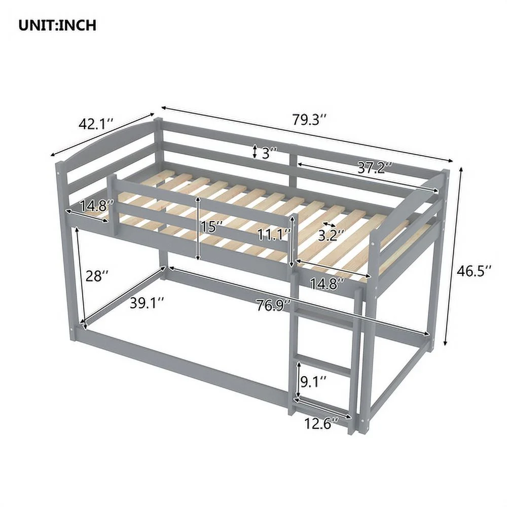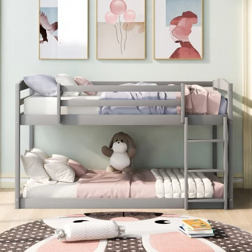 Natural Twin Over Twin Floor Bunk Bed - Space-Saving Design for Kids' Bedroom or Guest Room