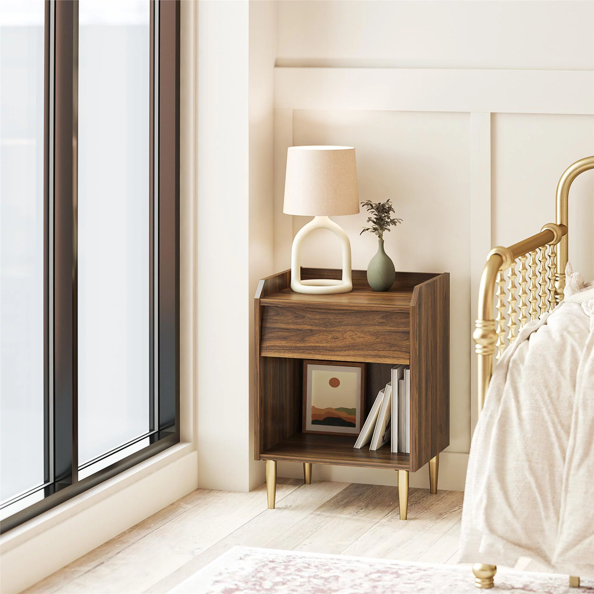 Mega Solutions Paradiseo Murphy Cabinet Chest Bed with Charging Station 8 Inch, Queen (Tobacco)