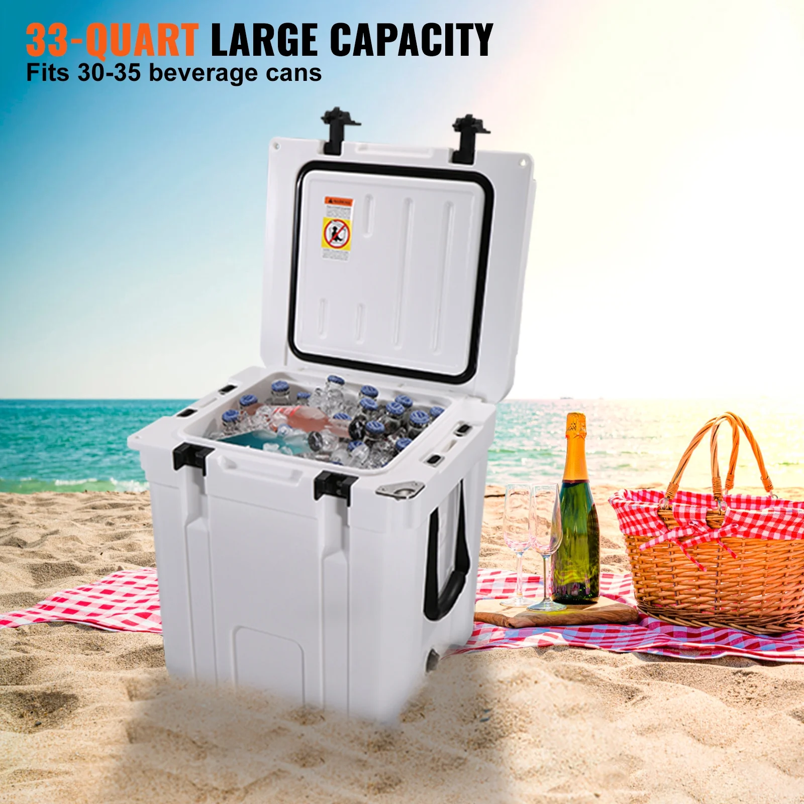 SKYSHALO 33 Quart Hard Cooler Insulated Portable Cooler 35-Can Capacity Ice Chest