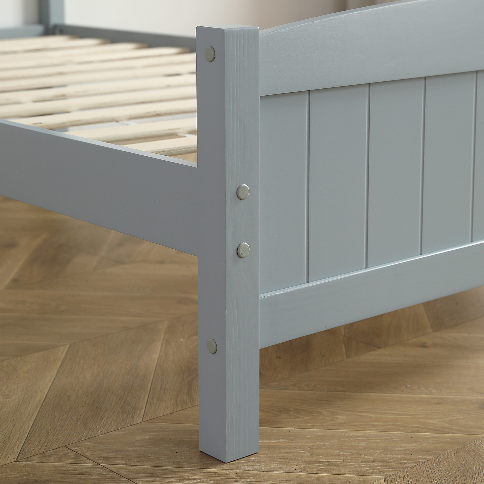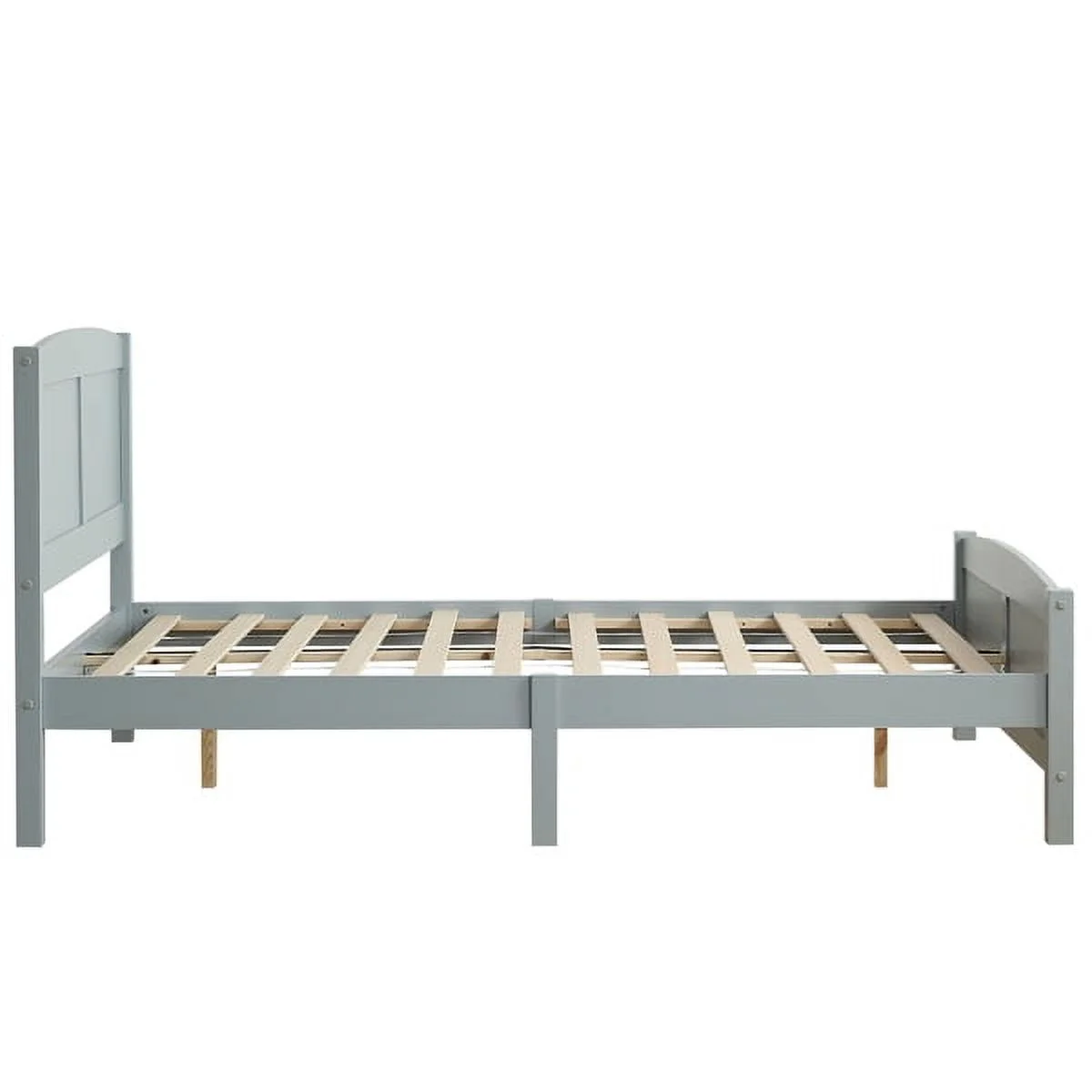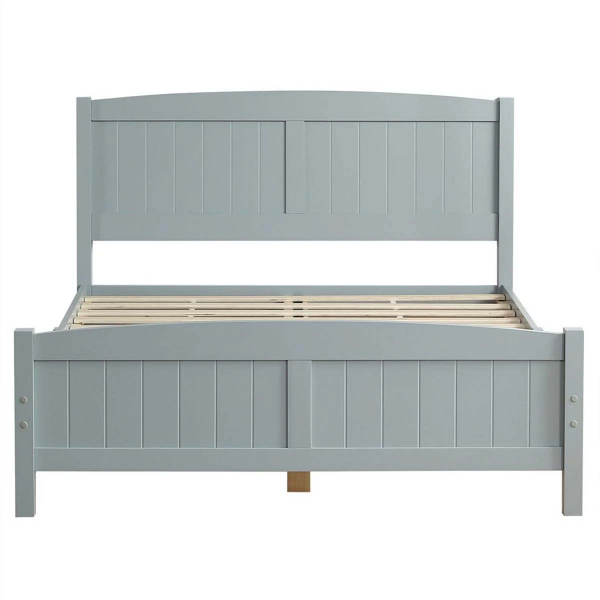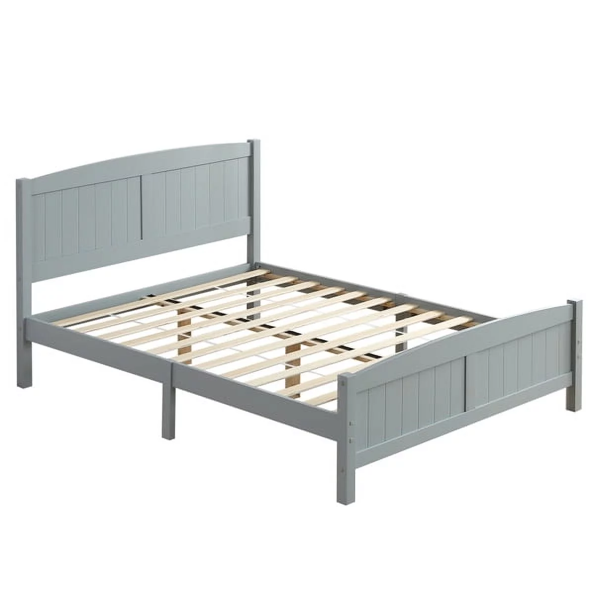 RUXAN Twin Pine Single-Layer Core Vertical Stripe Full-Board Curved Bed Head With The Same Bed Foot Wooden Bed Grey