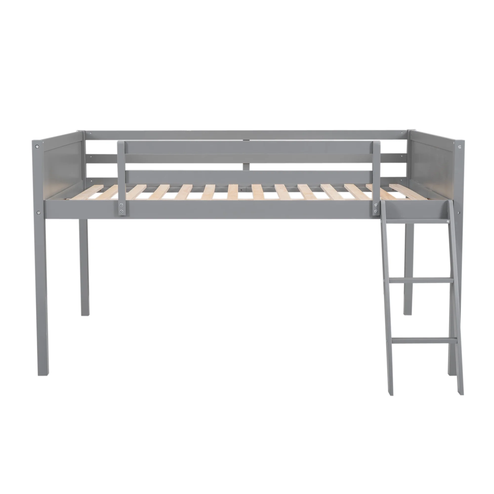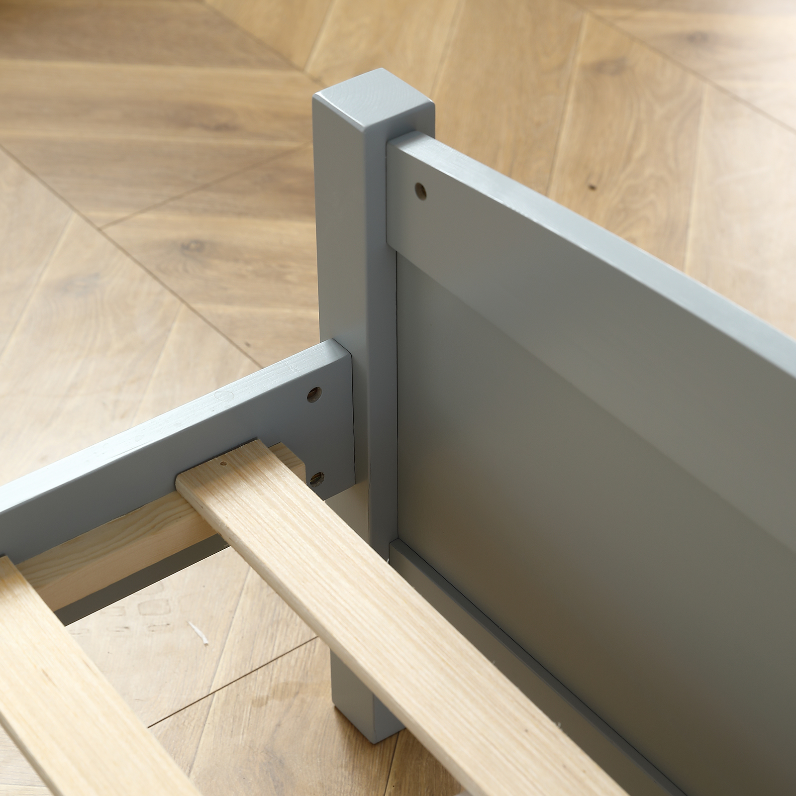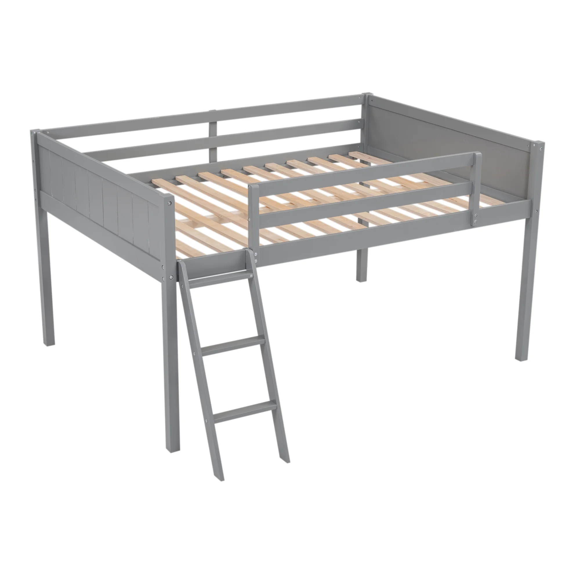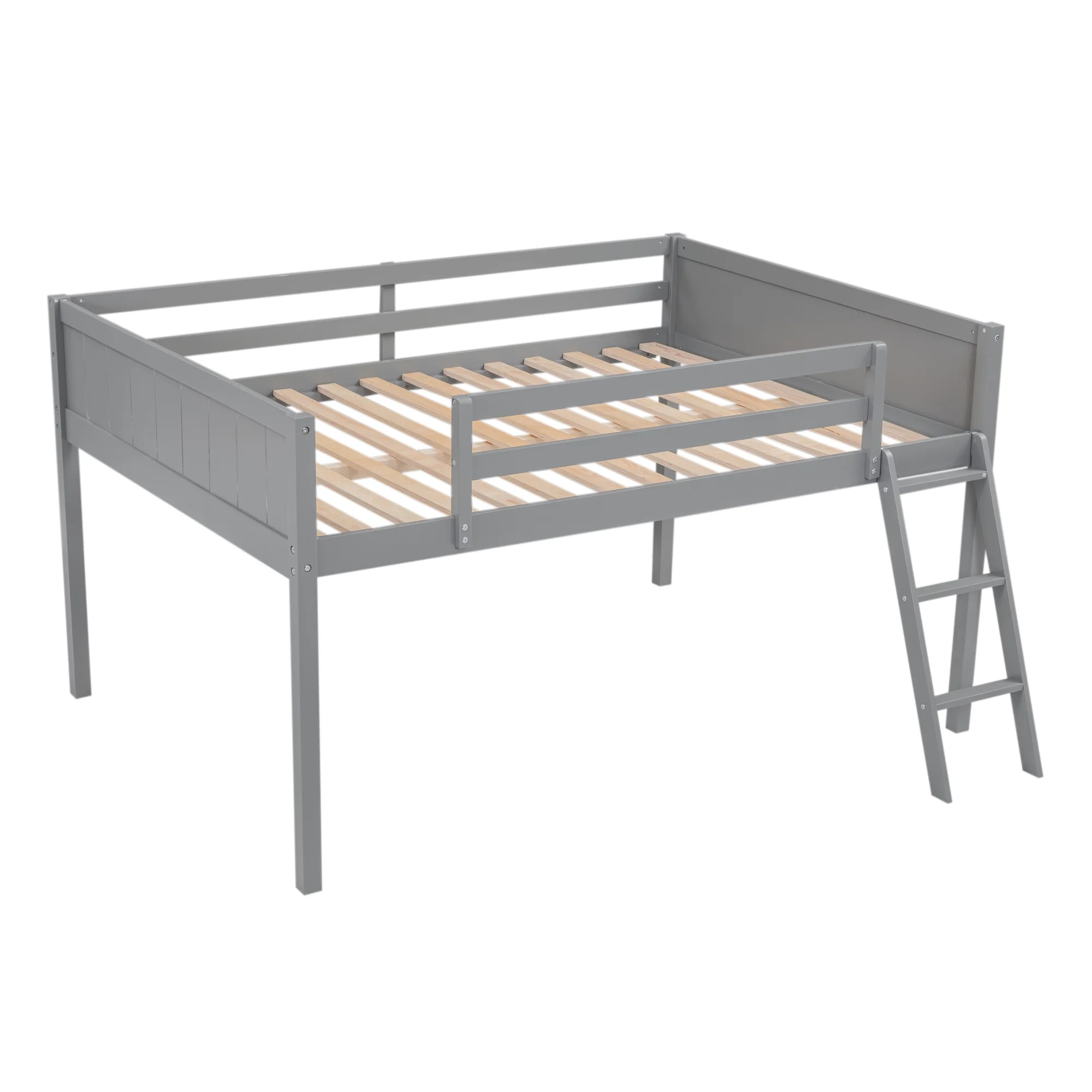 RUXAN Twin Pine Single-Layer Core Vertical Stripe Full-Board Curved Bed Head With The Same Bed Foot Wooden Bed Grey