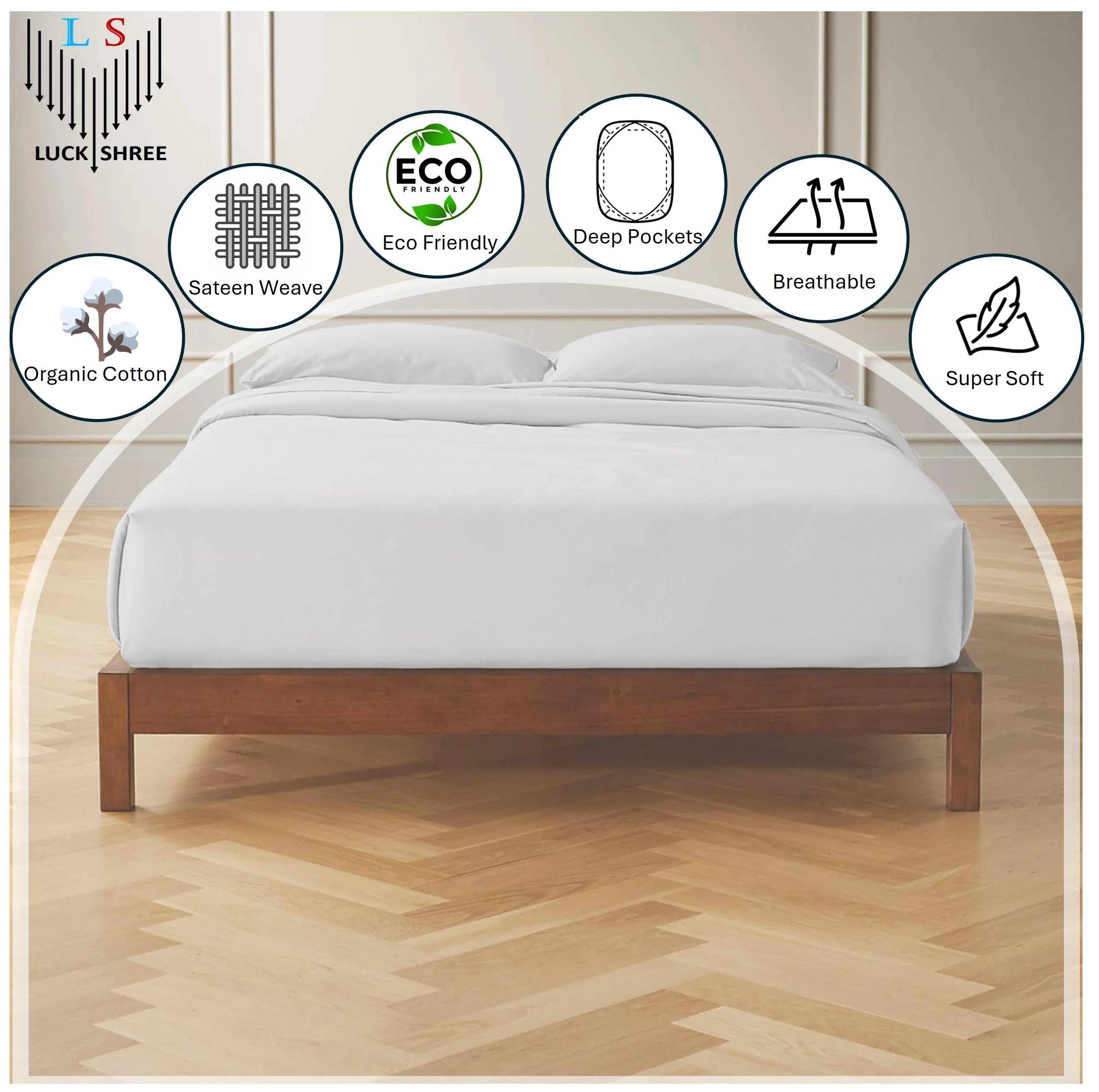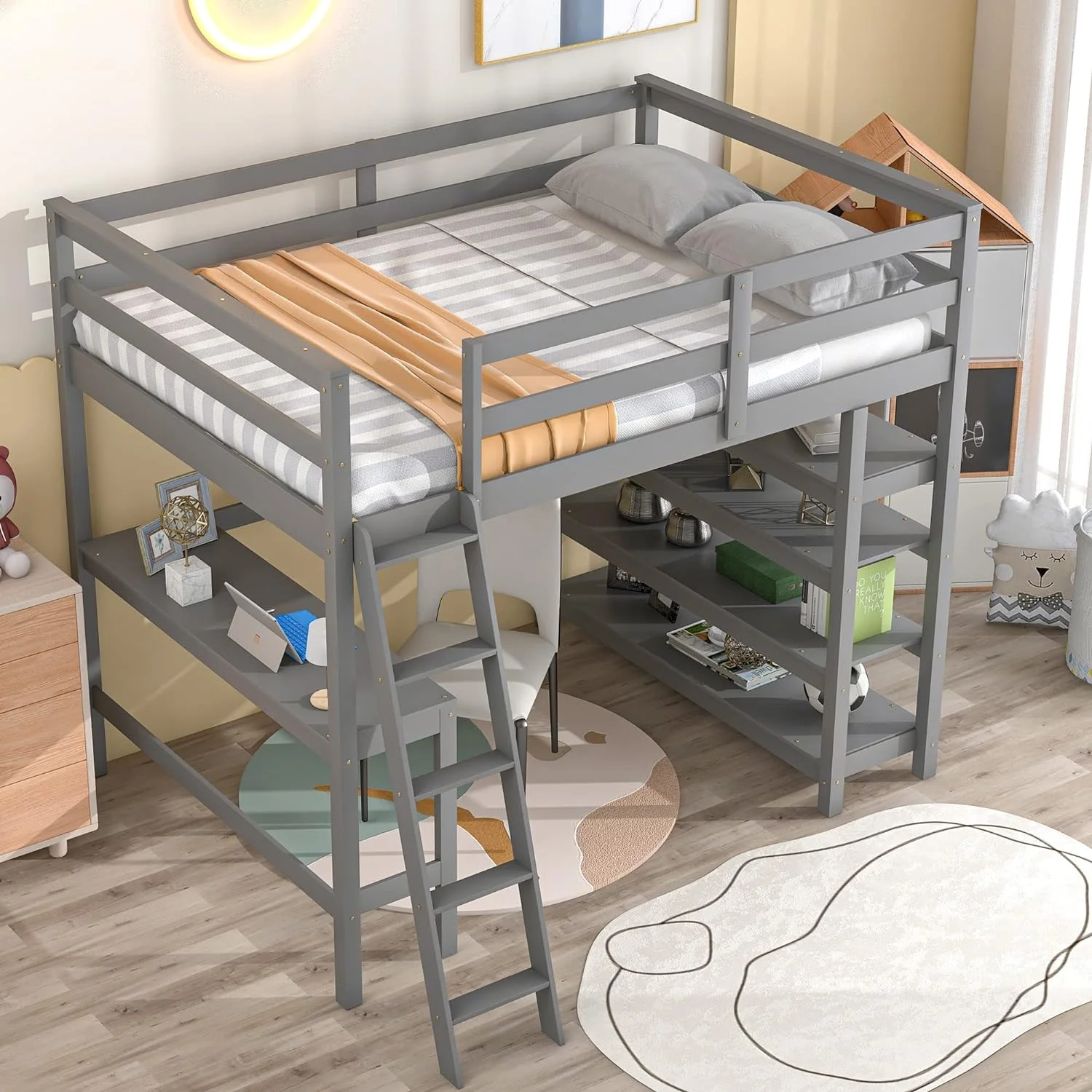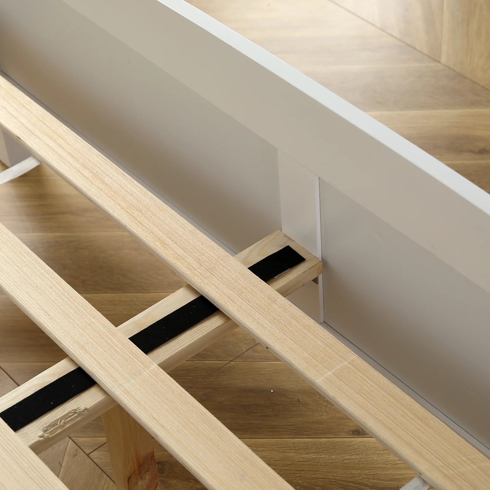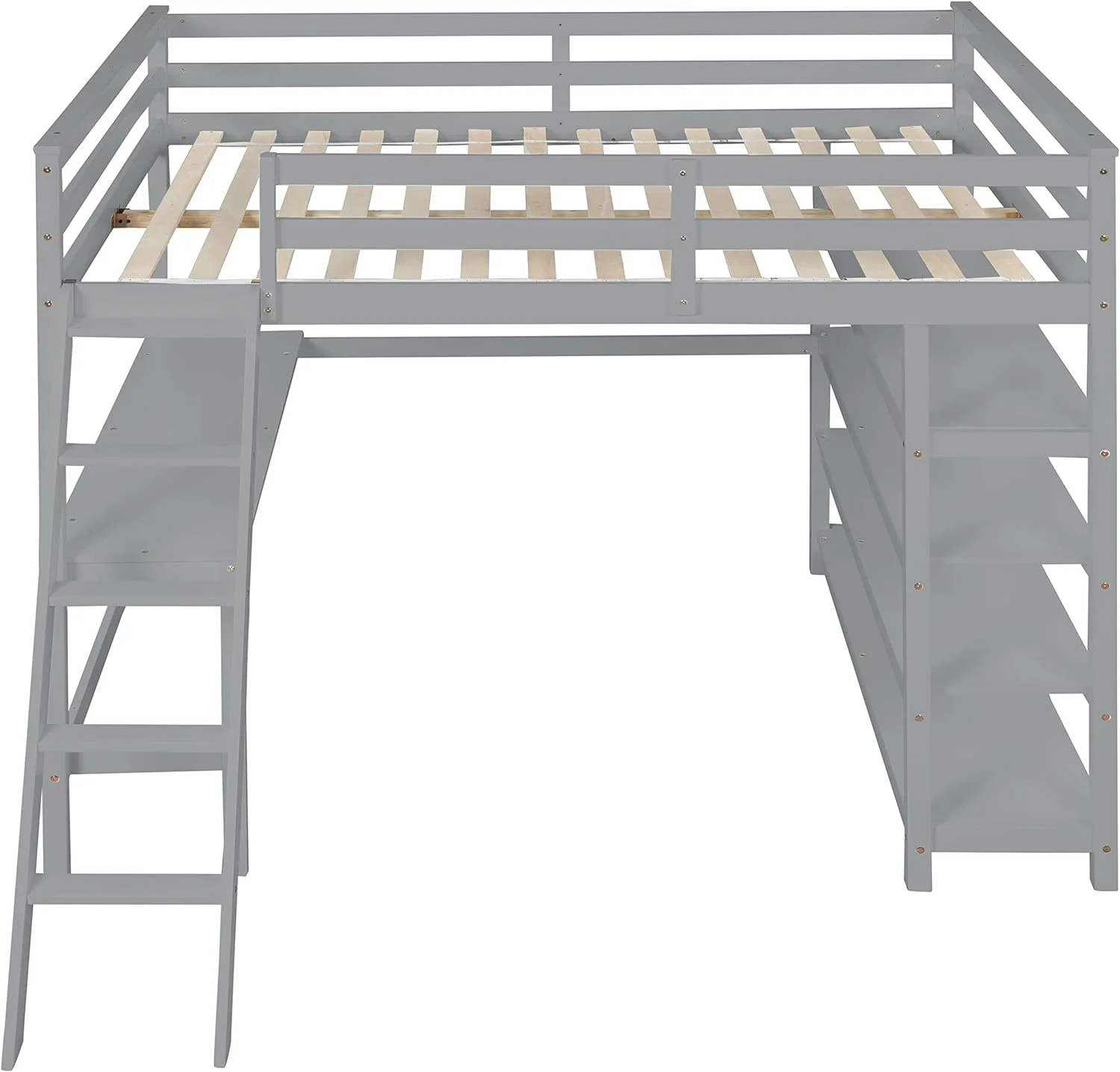 RUXAN Twin Pine Single-Layer Core Vertical Stripe Full-Board Curved Bed Head With The Same Bed Foot Wooden Bed Grey