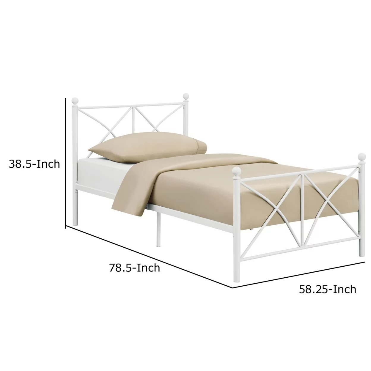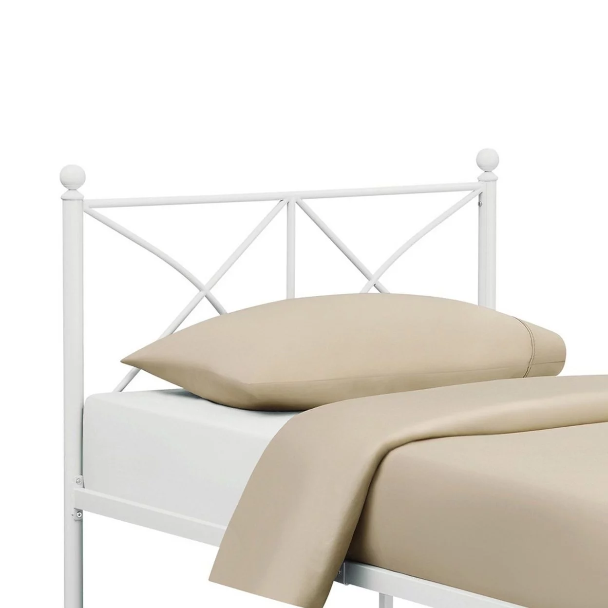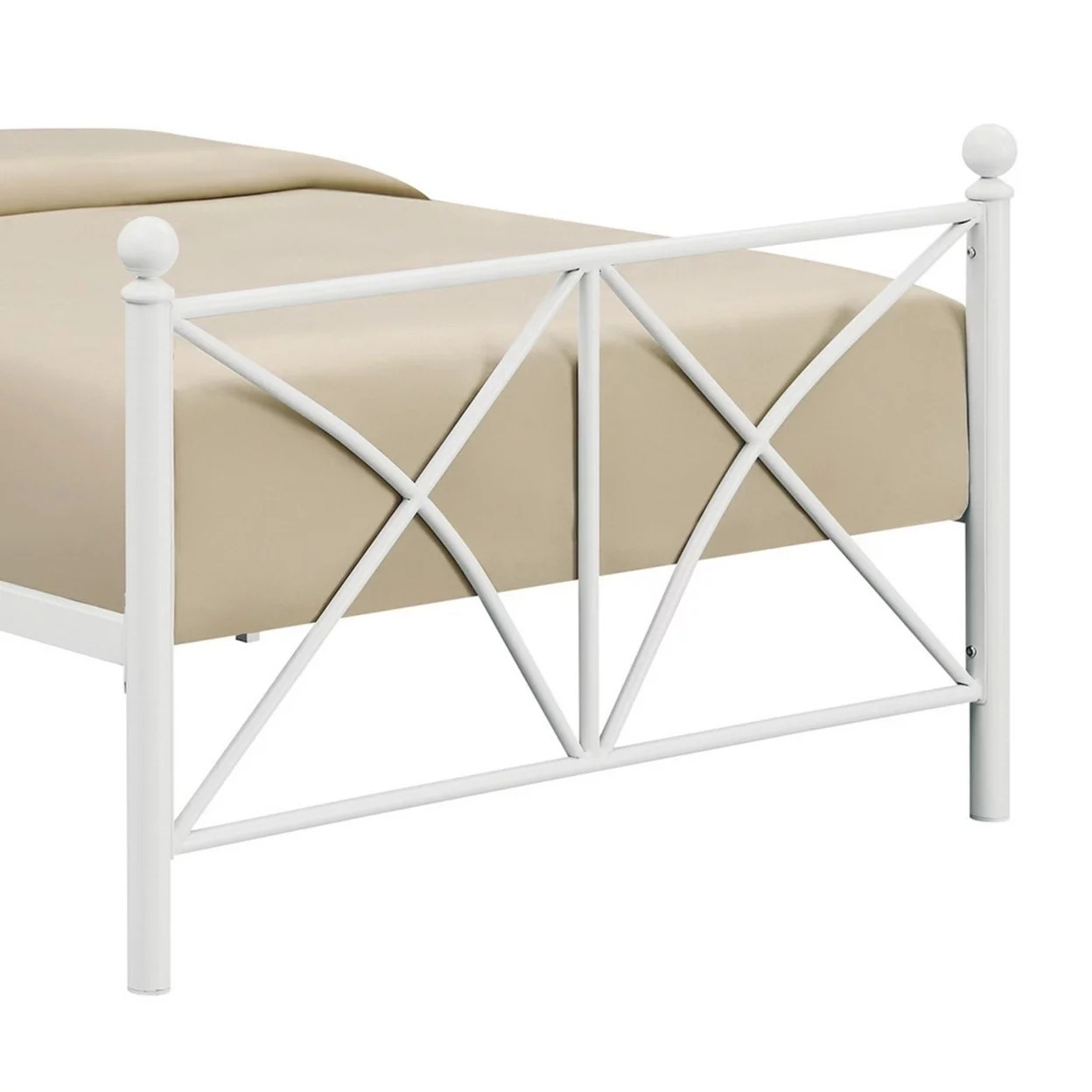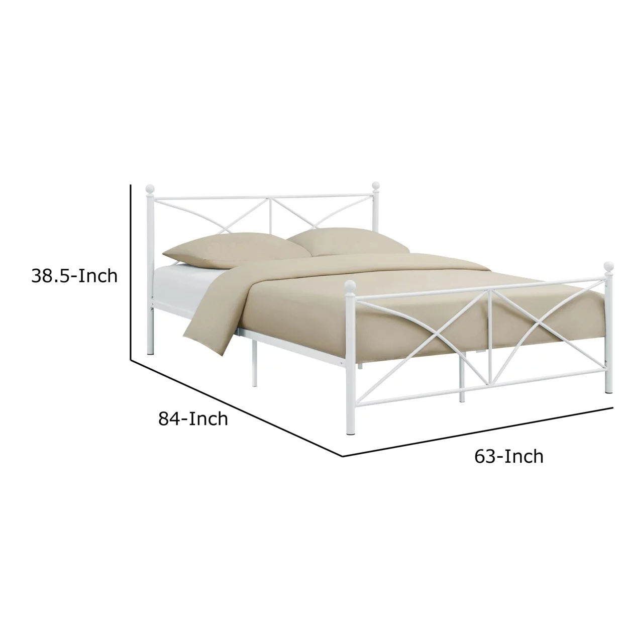 Kelly Modern Queen Size Bed, Heavy Steel Metal Frame, Matte Finished White