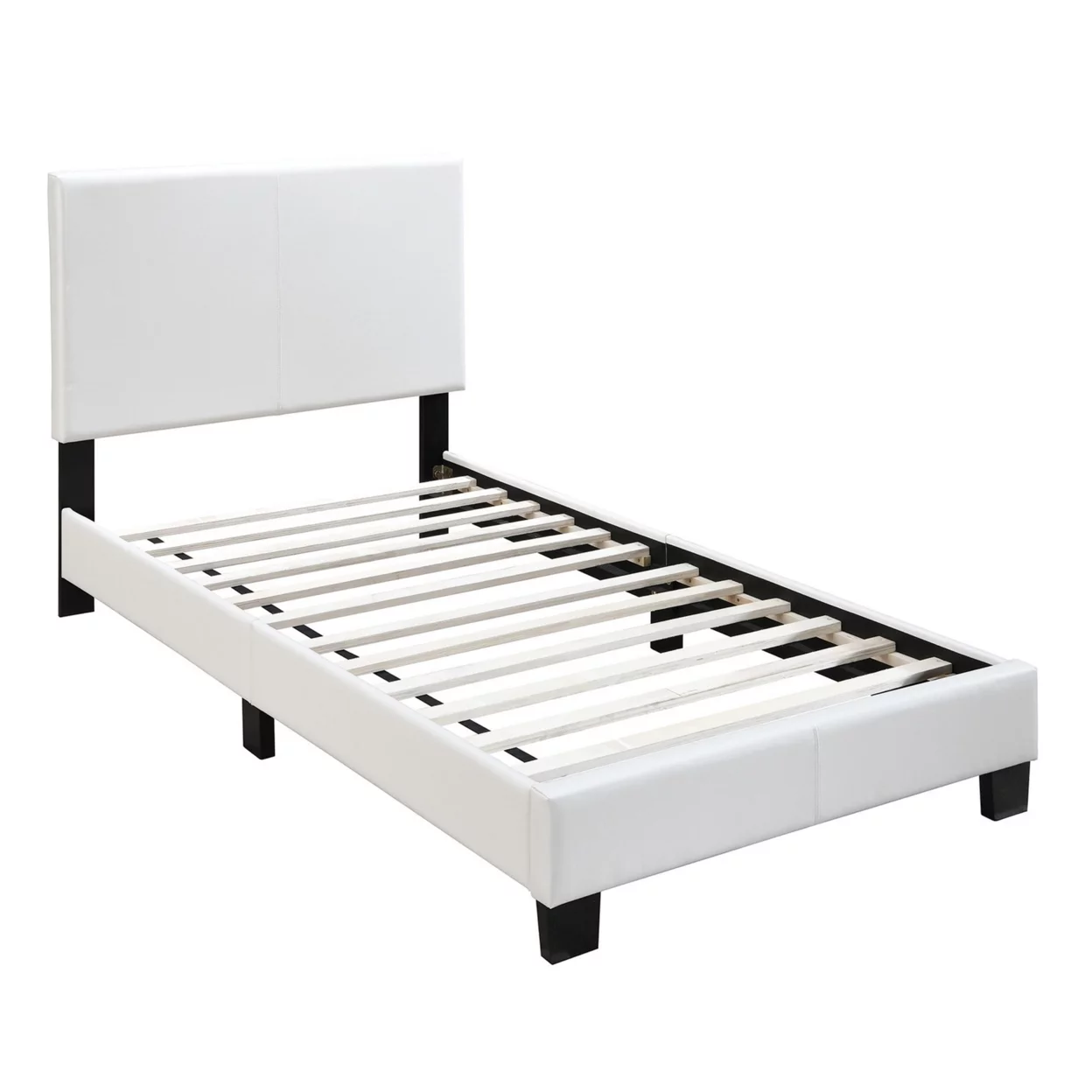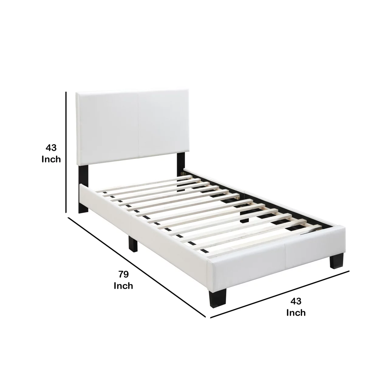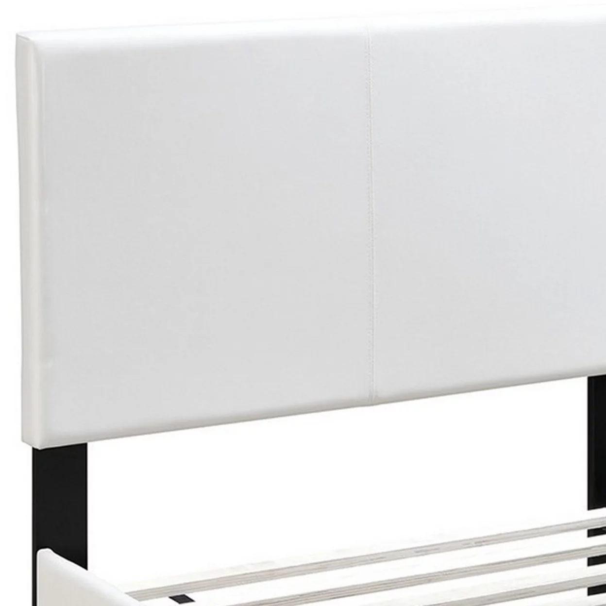 Transitional Style Leatherette Twin Bed with Padded Headboard, White- Saltoro Sherpi