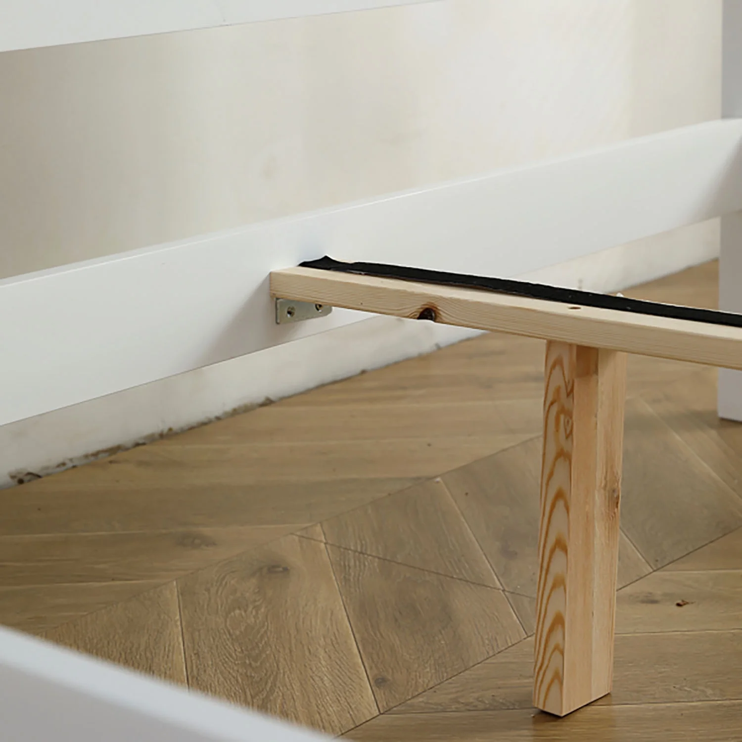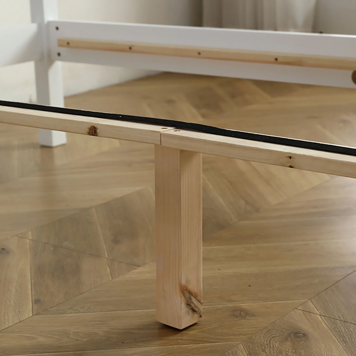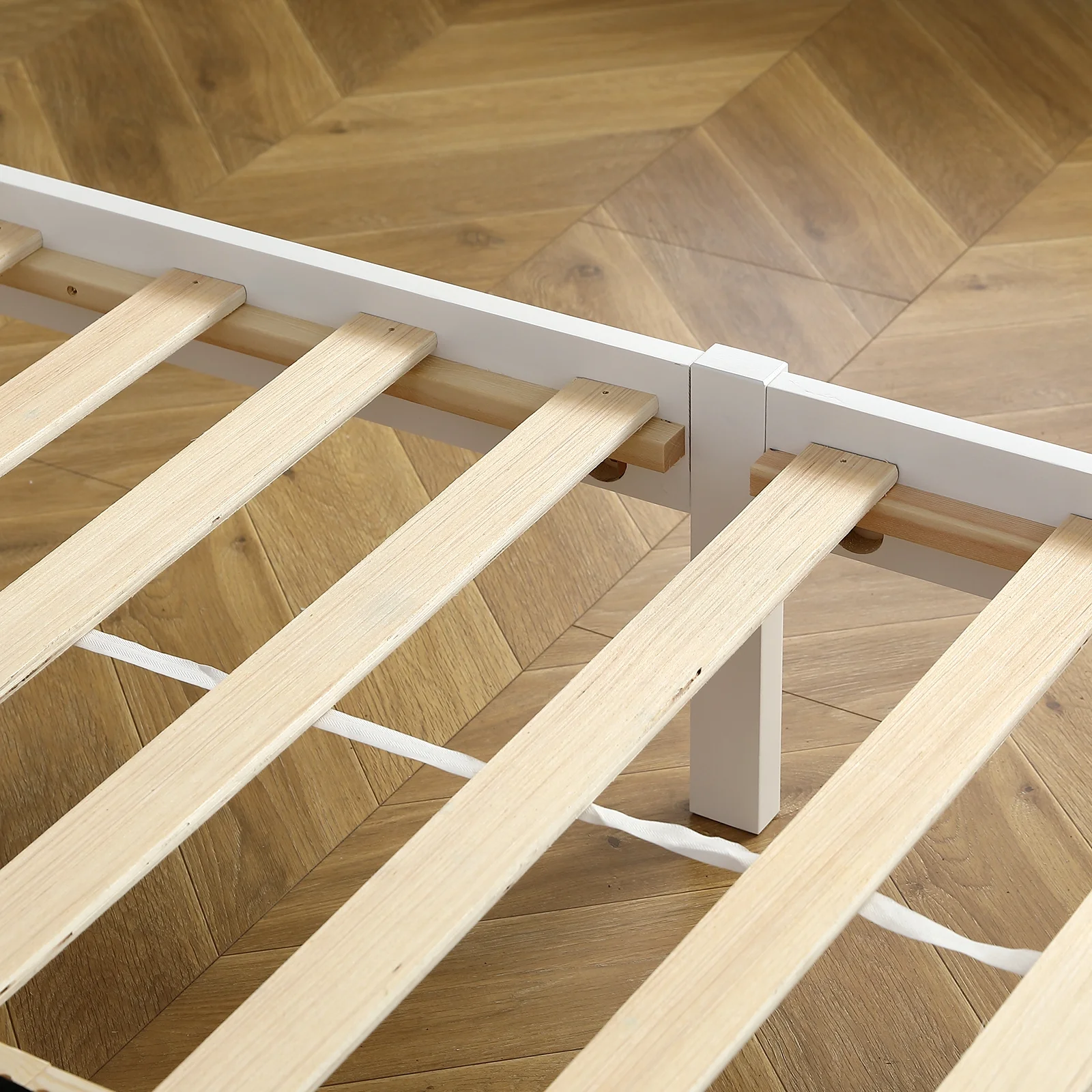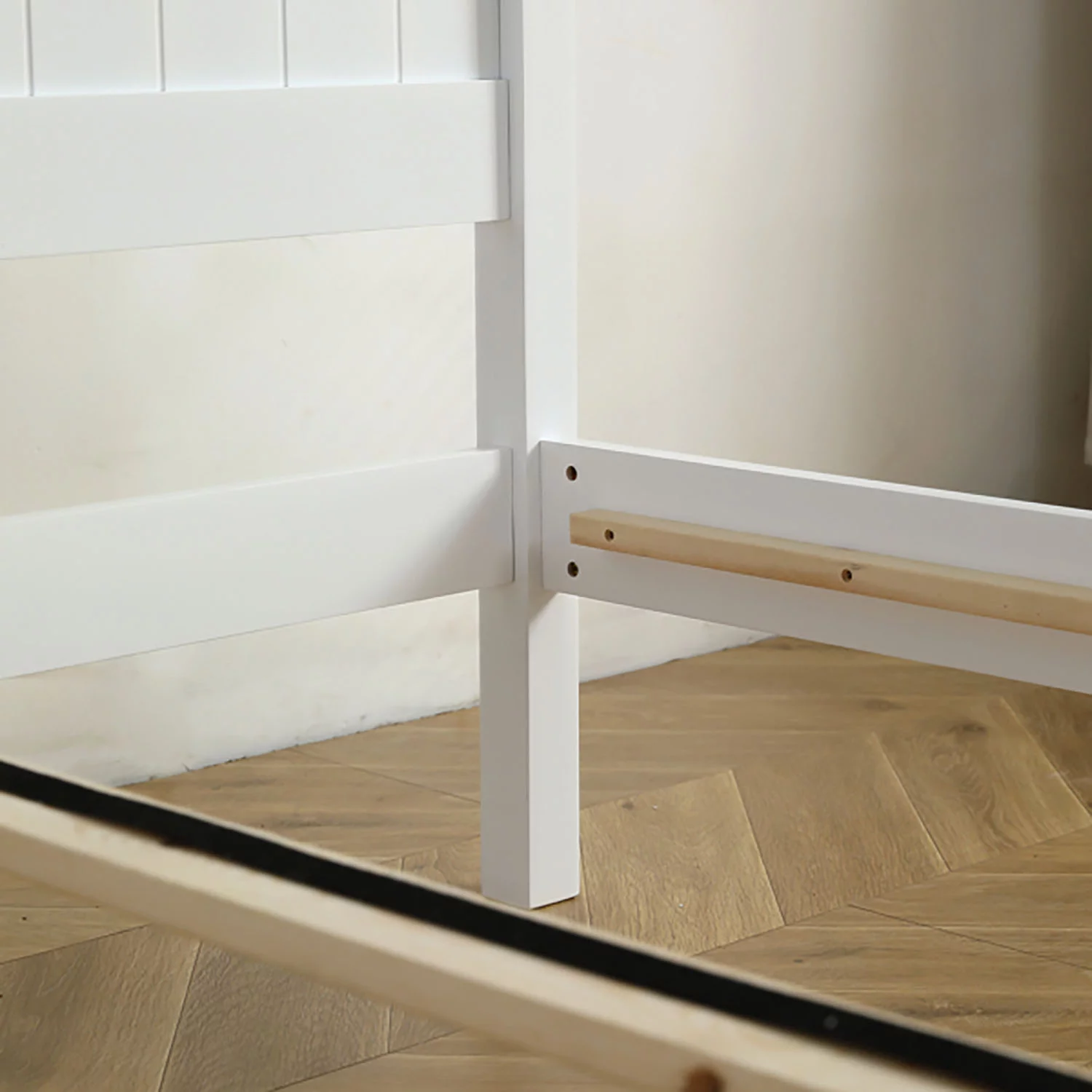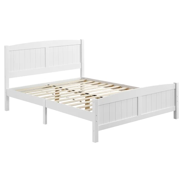 FCH Full Pine Single-Layer Core Vertical Stripe Full-Board Curved Bed Head With The Same Bed Foot Wooden Bed White