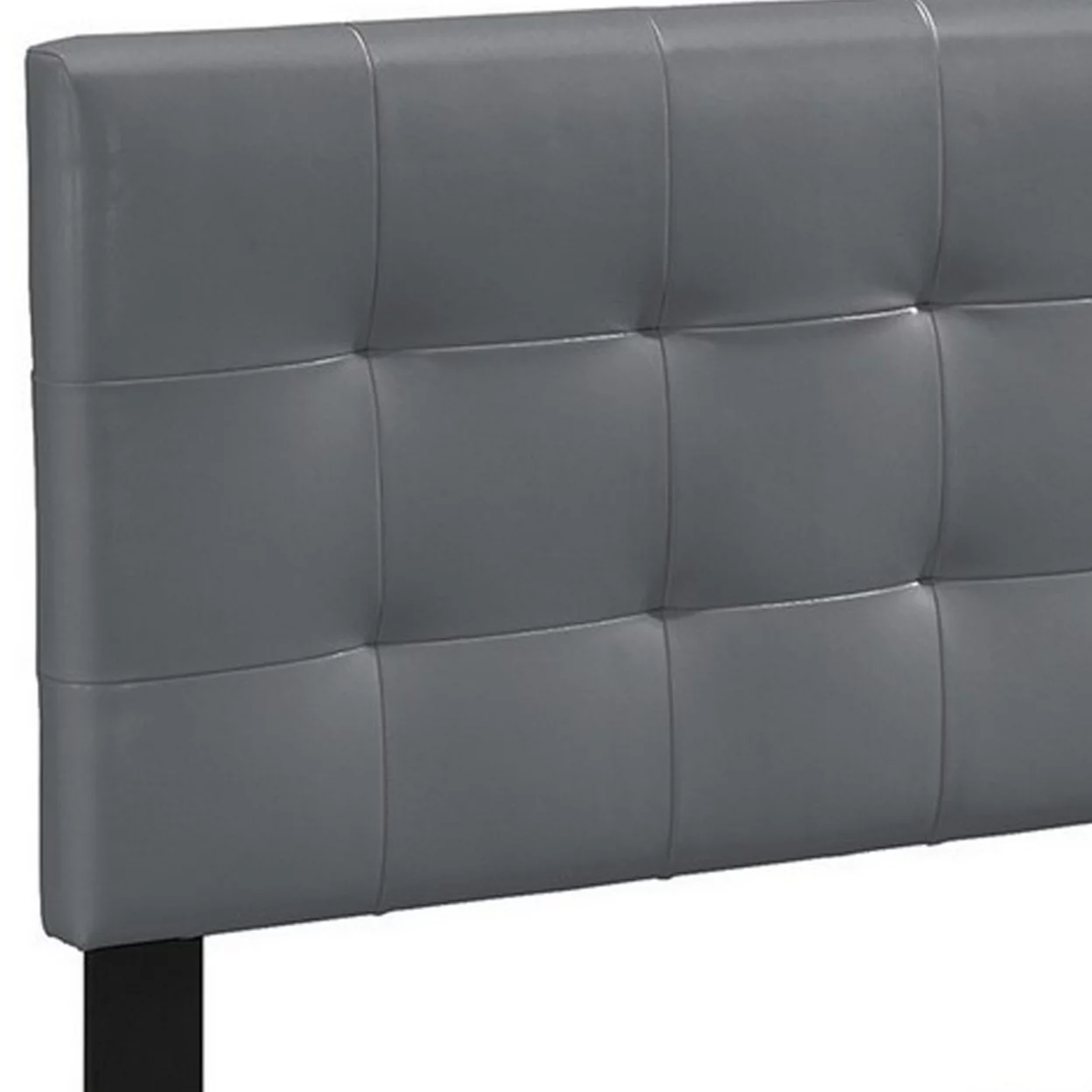 Full Leatherette Bed with Checkered Tufted Headboard, Gray- Saltoro Sherpi