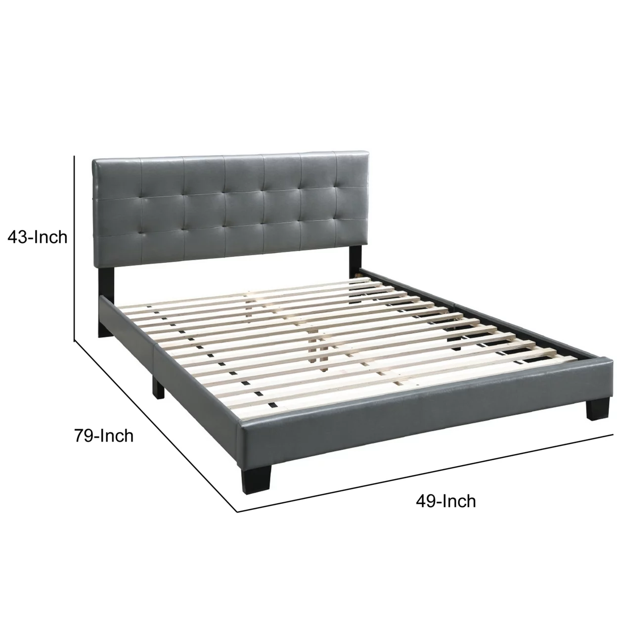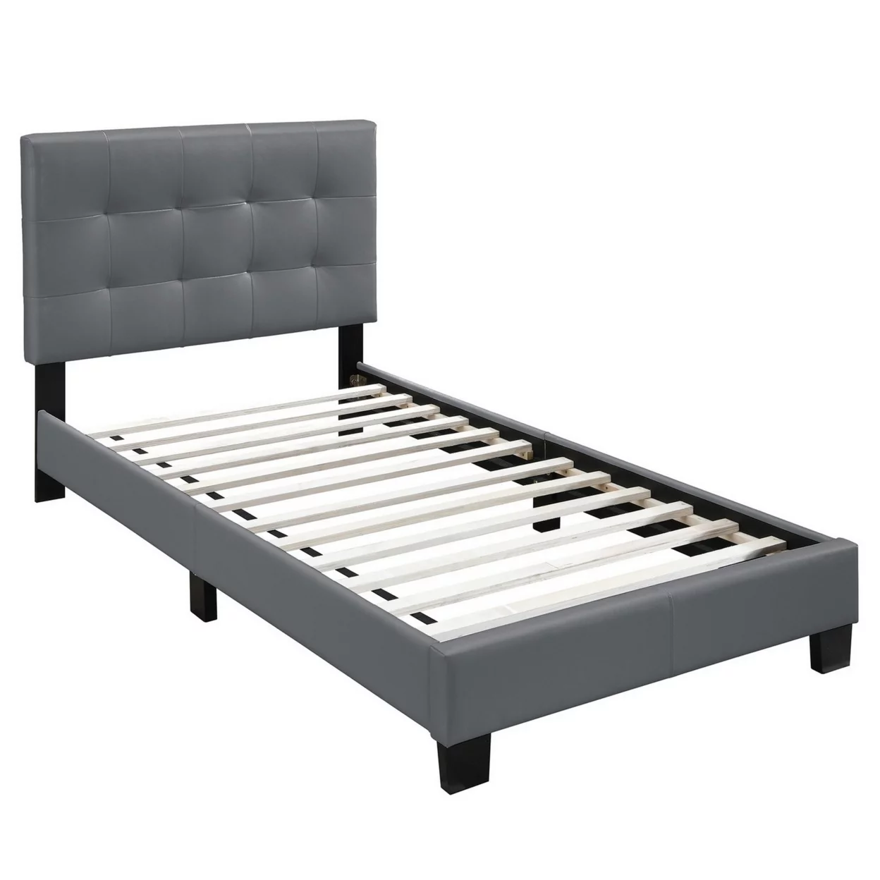 Twin Leatherette Bed with Checkered Tufted Headboard, Gray- Saltoro Sherpi