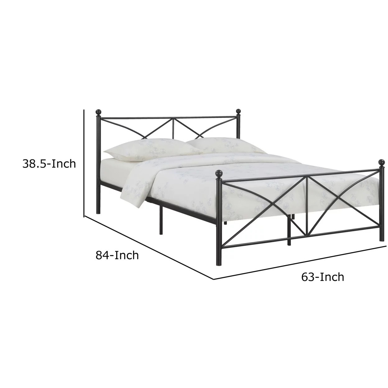 Kelly Modern Queen Size Bed Heavy Steel Metal Frame Matte Finished Black
