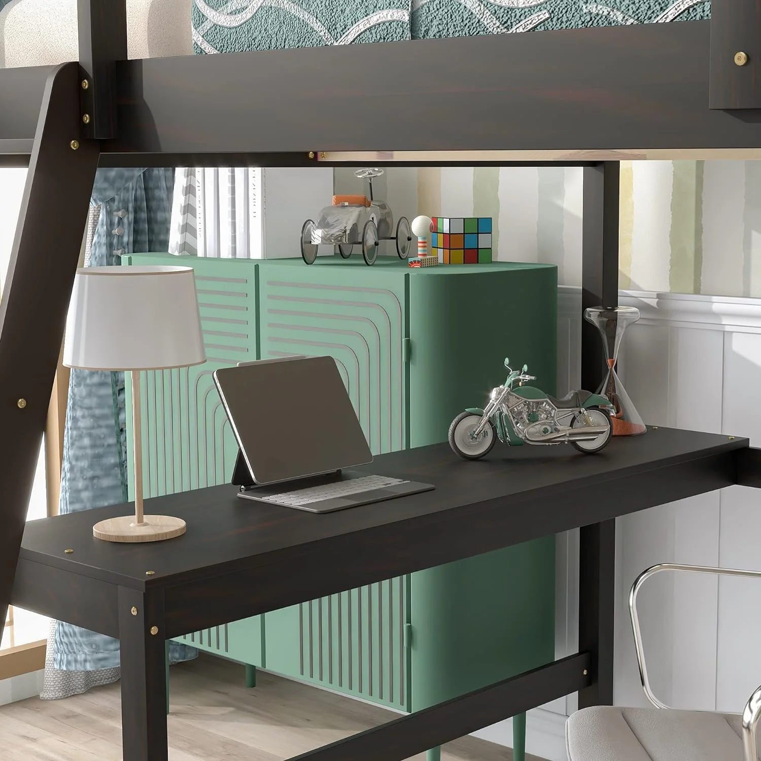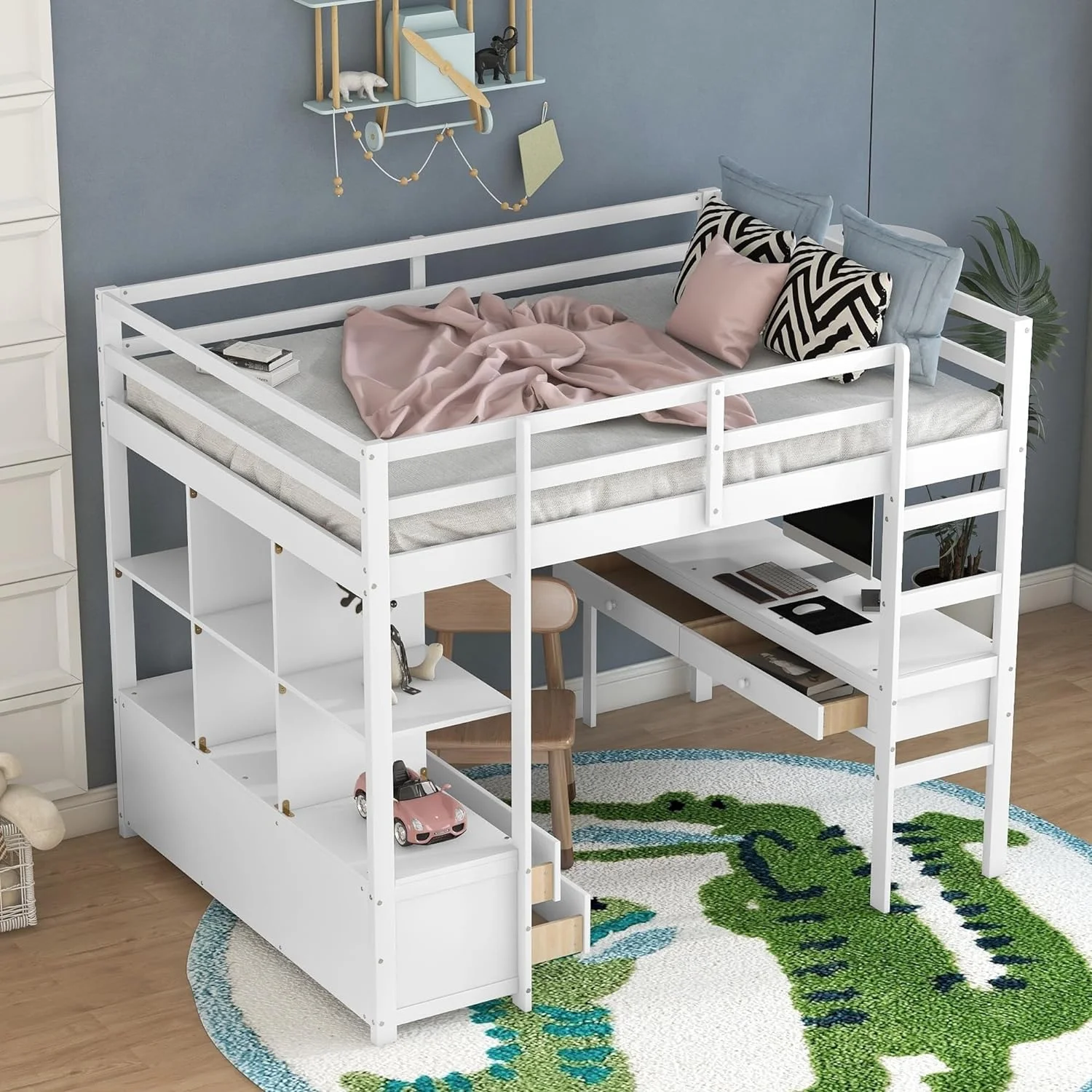 BenJara Cherub Twin Size Bed With Trundle In Black And Cherry Brown-Color:Pink & White