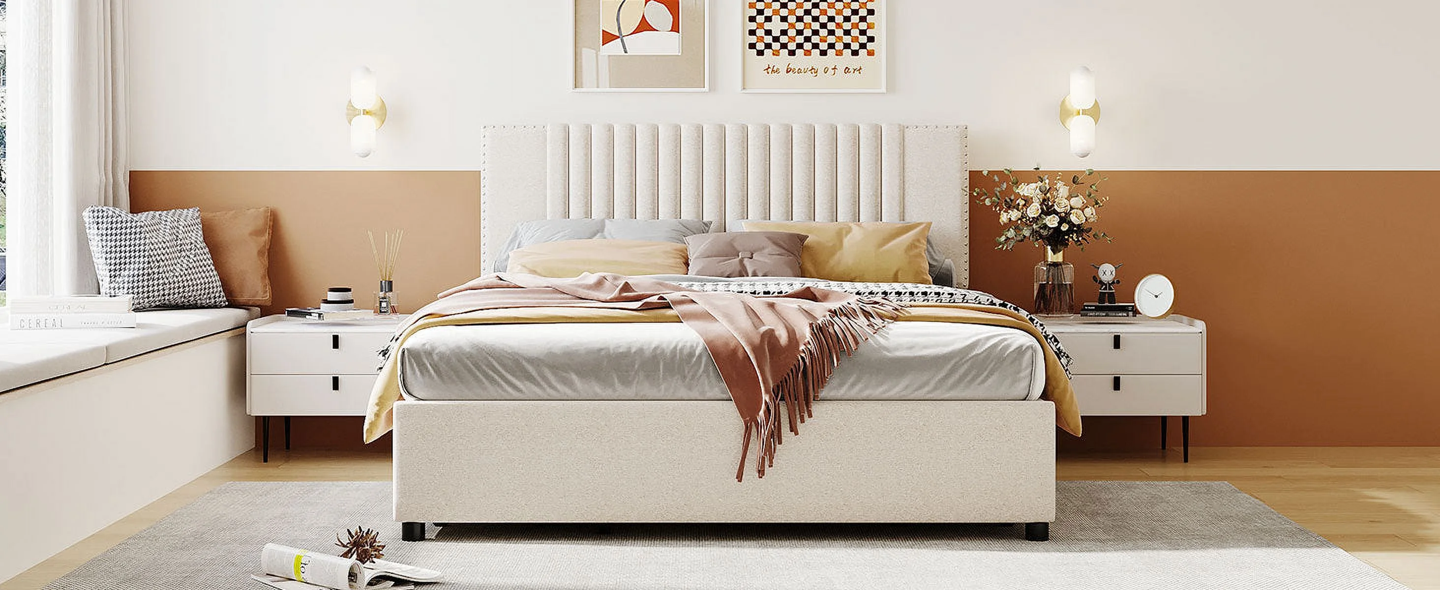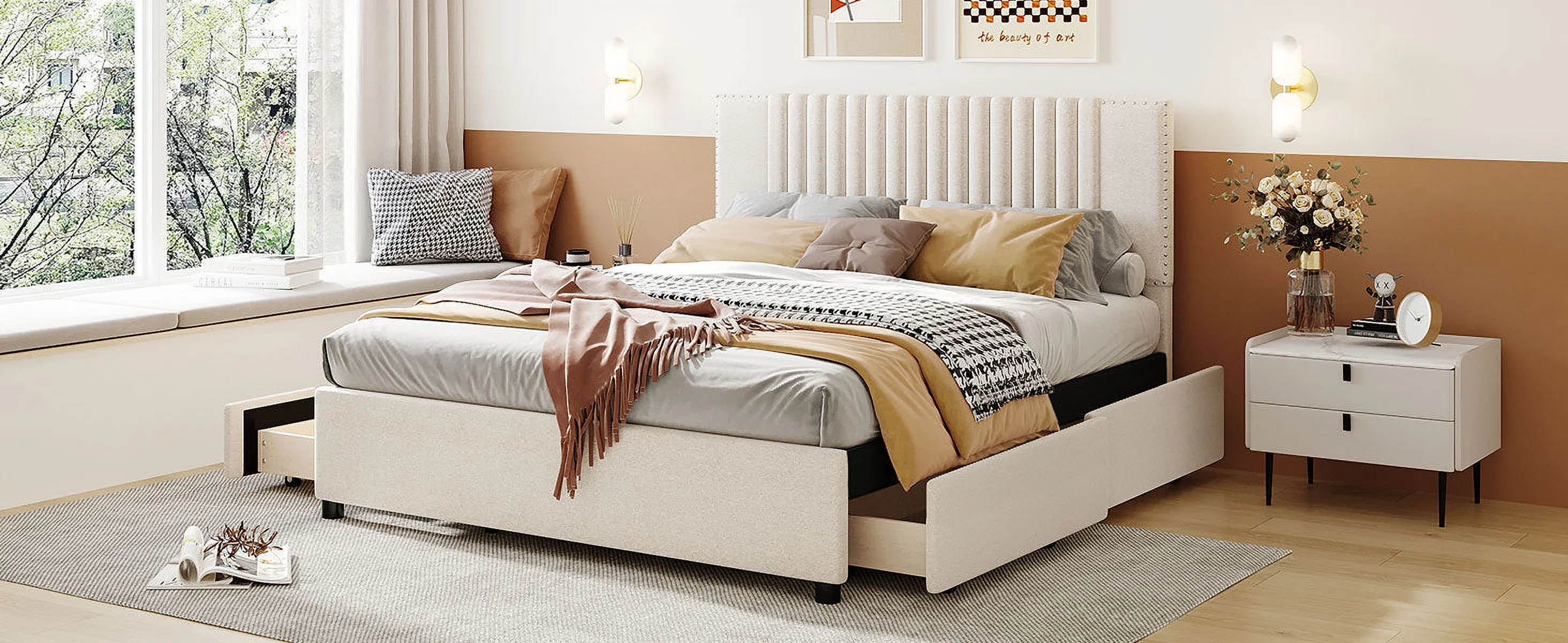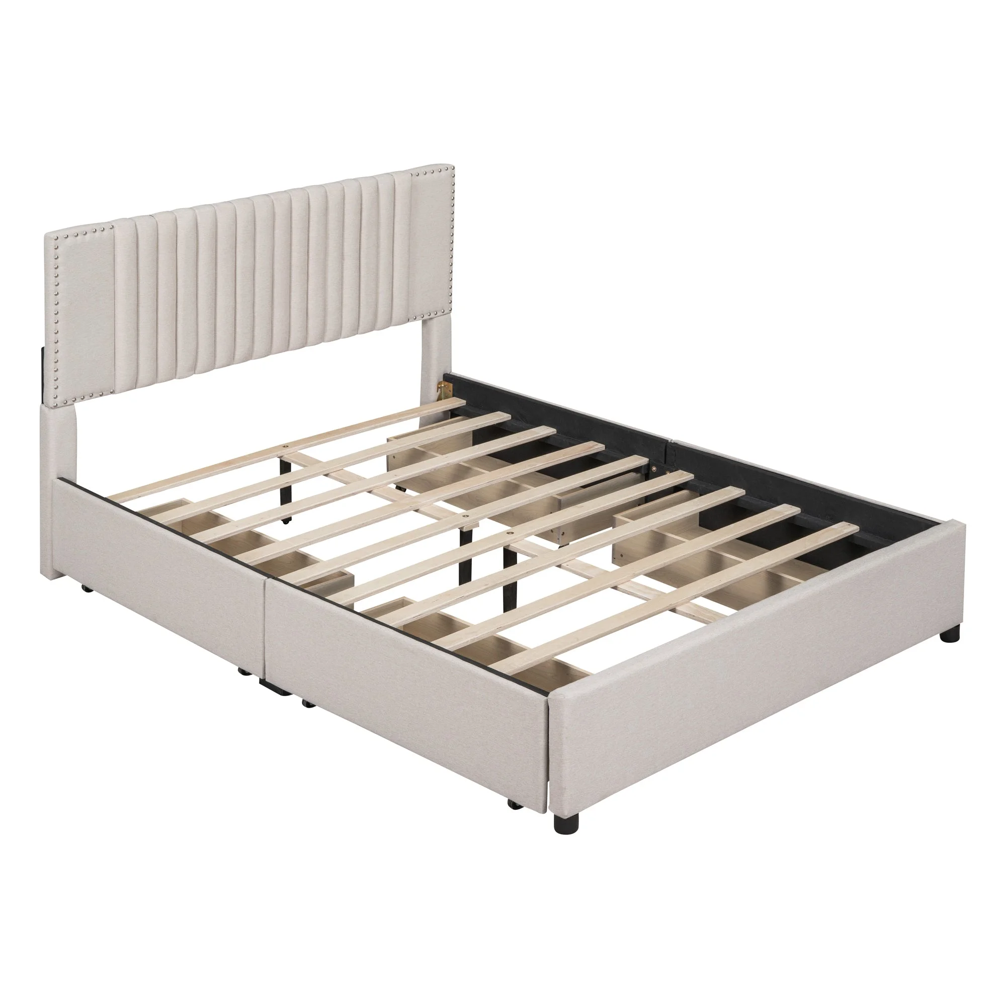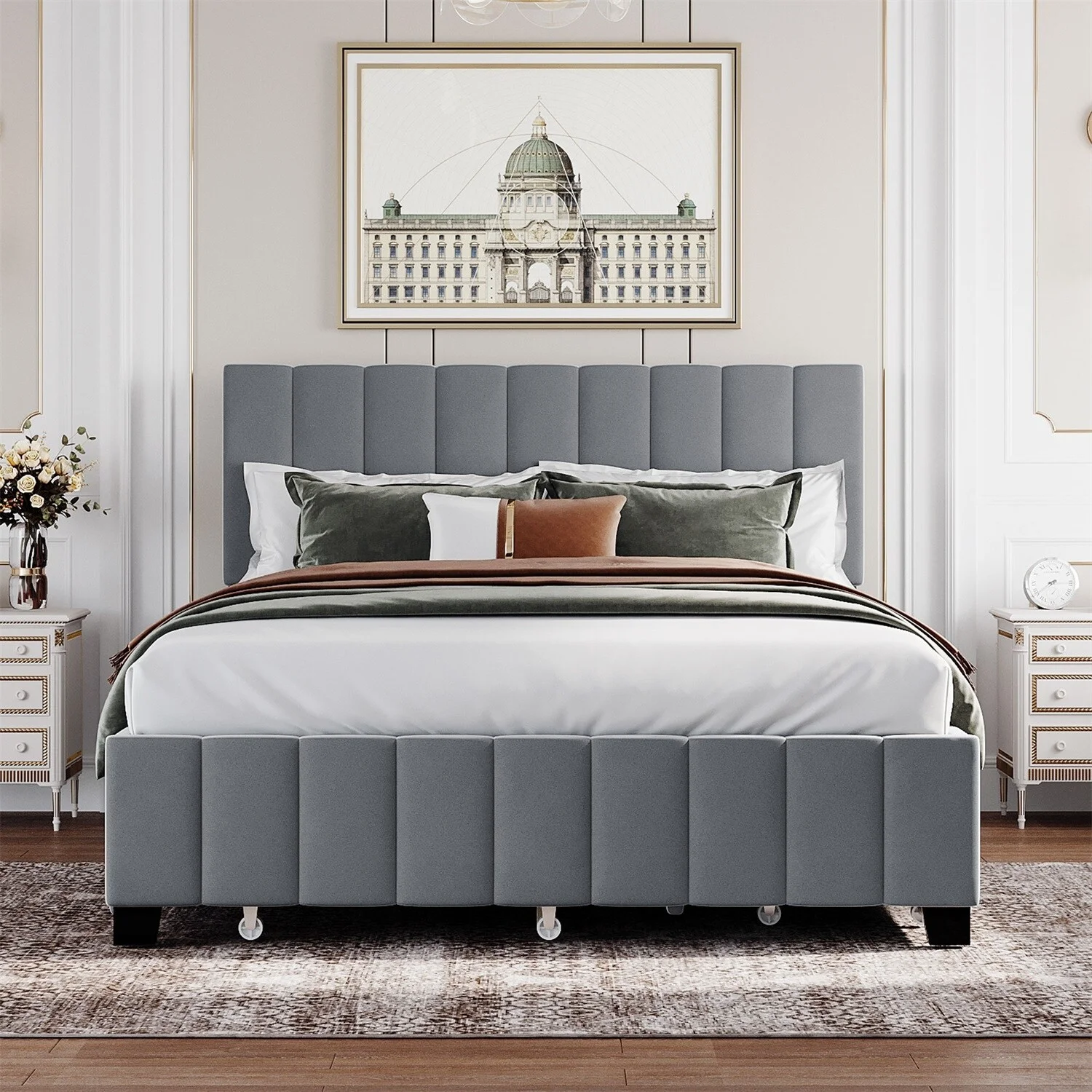 MERAX Queen Size Velvet Upholstered Platform Bed with 2 Drawers and 1 Twin XL Trundle Grey