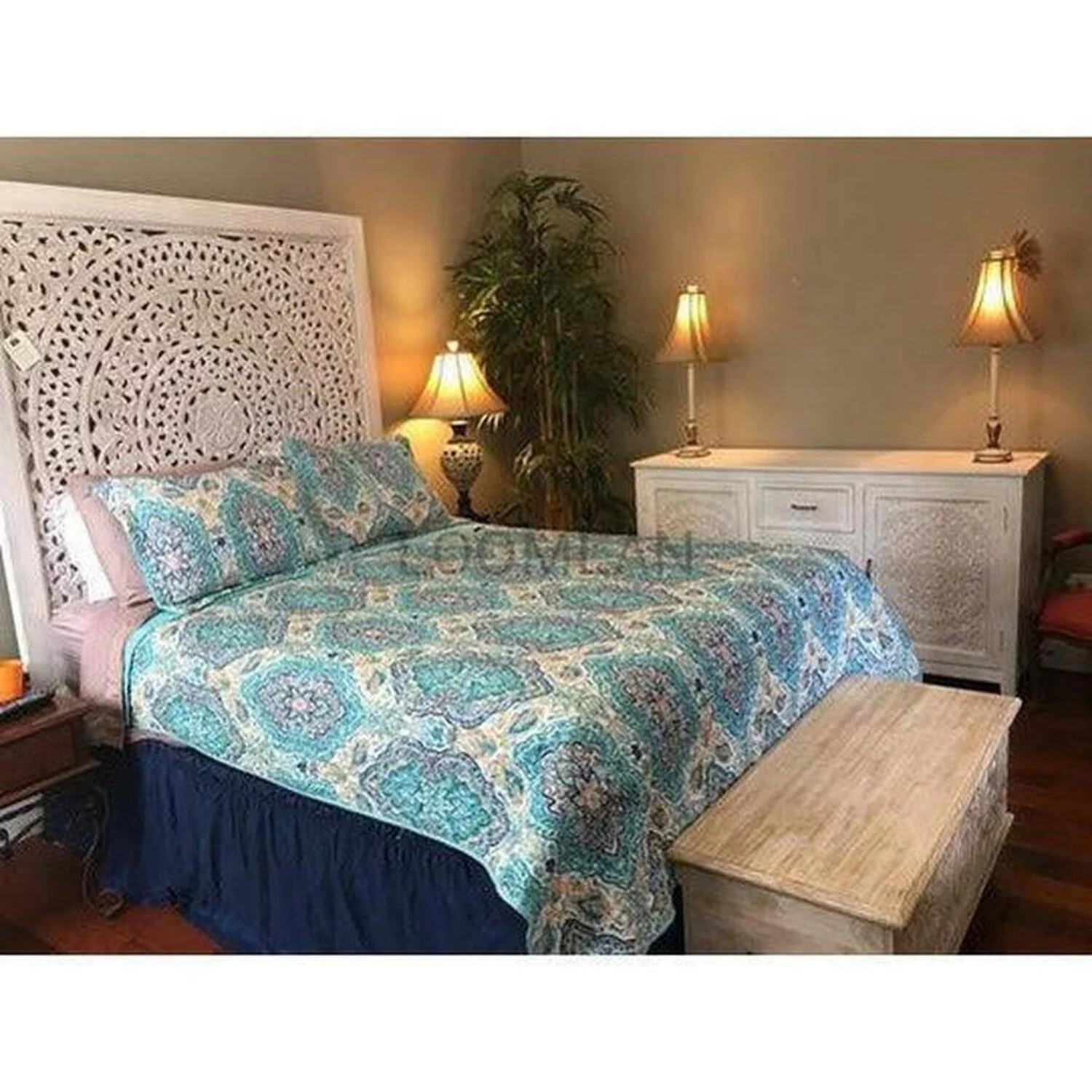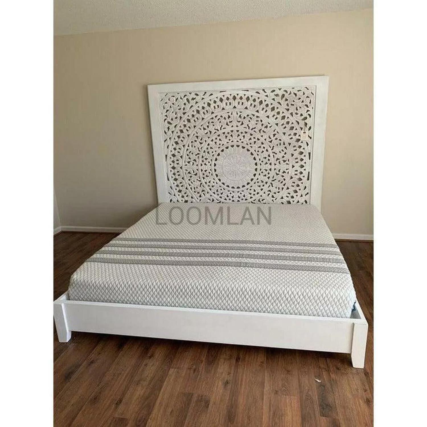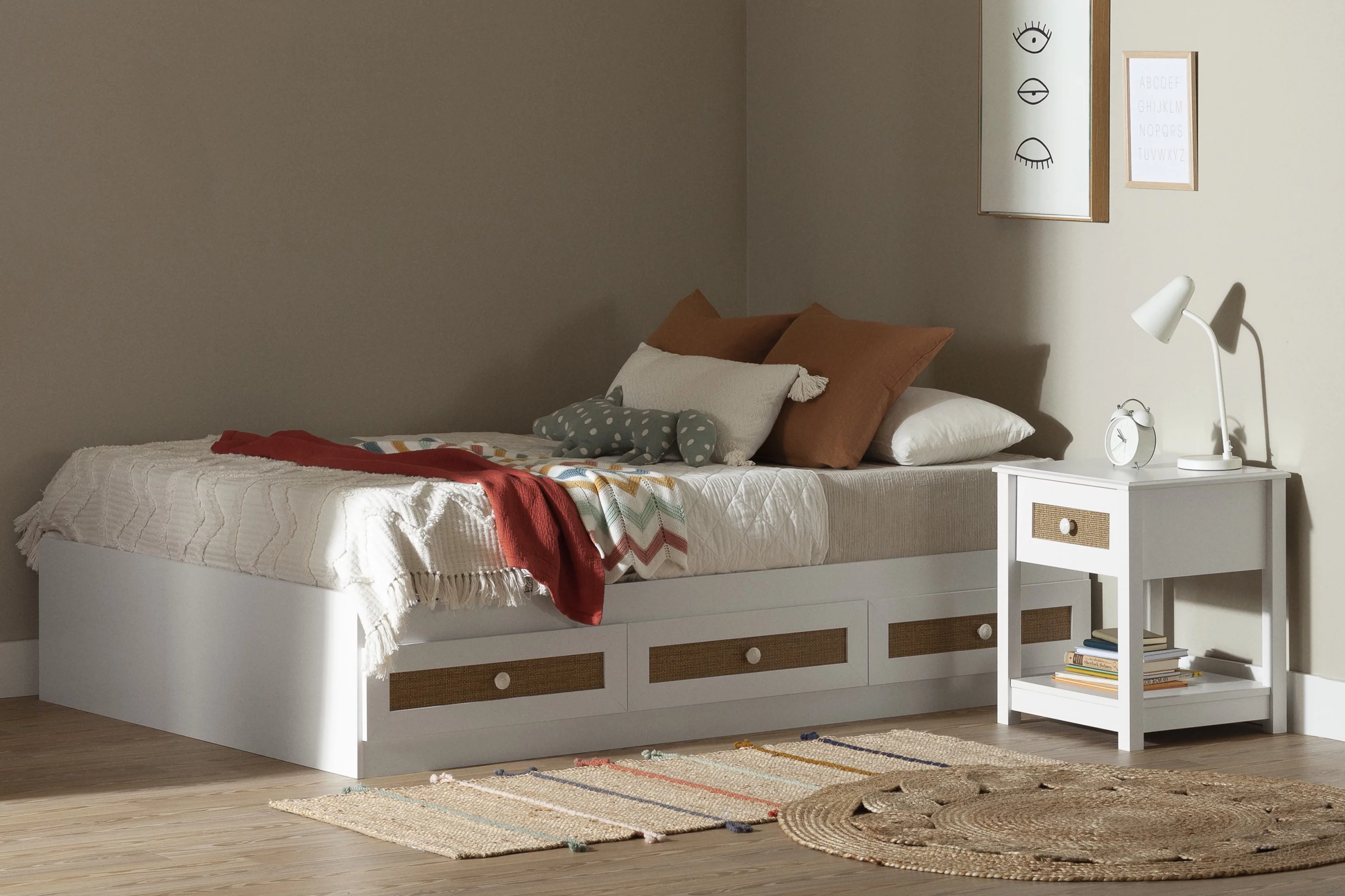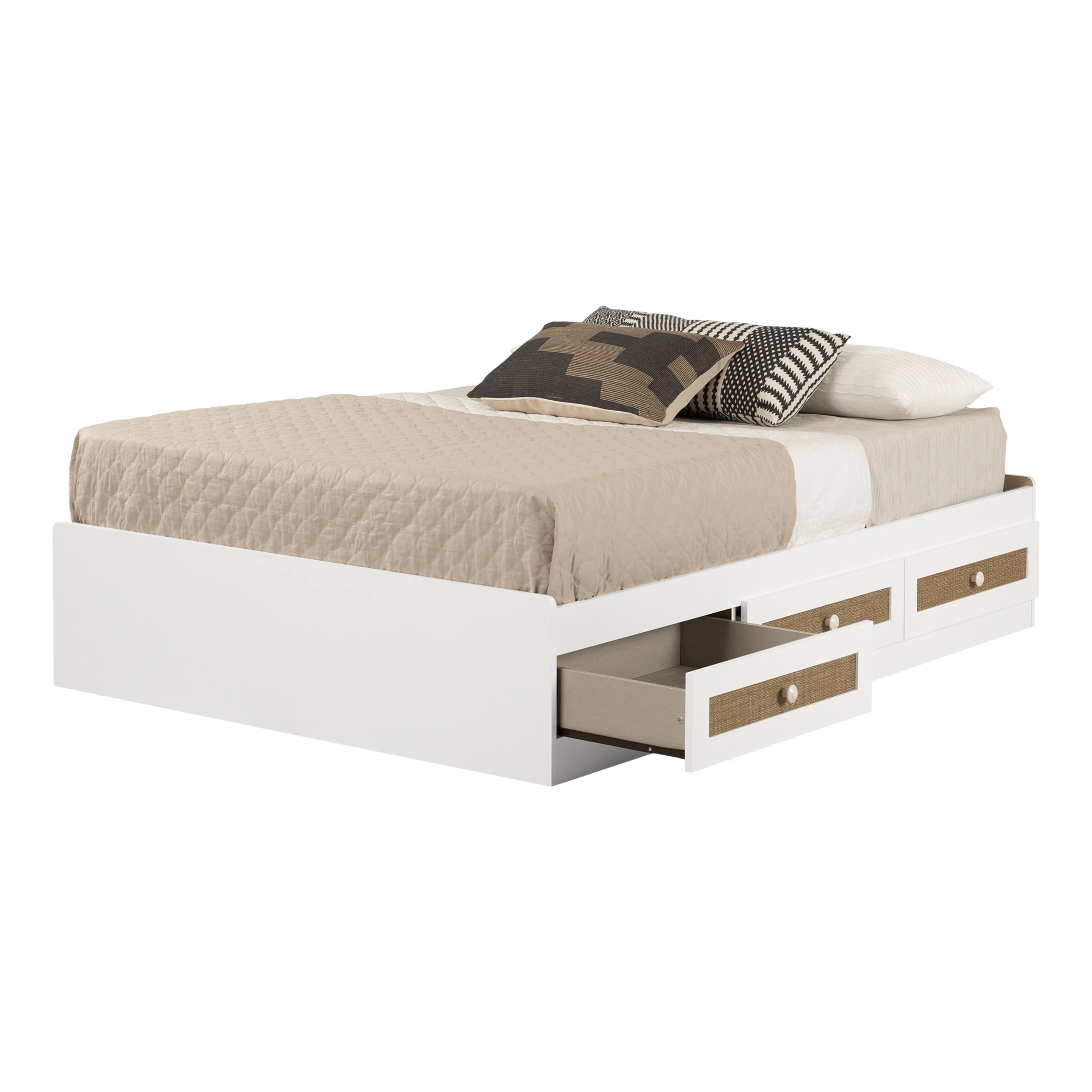 South Shore Bloom, Bohemian Harmony Full Mates Bed with 3 Drawers, White and Faux Printed Rattan