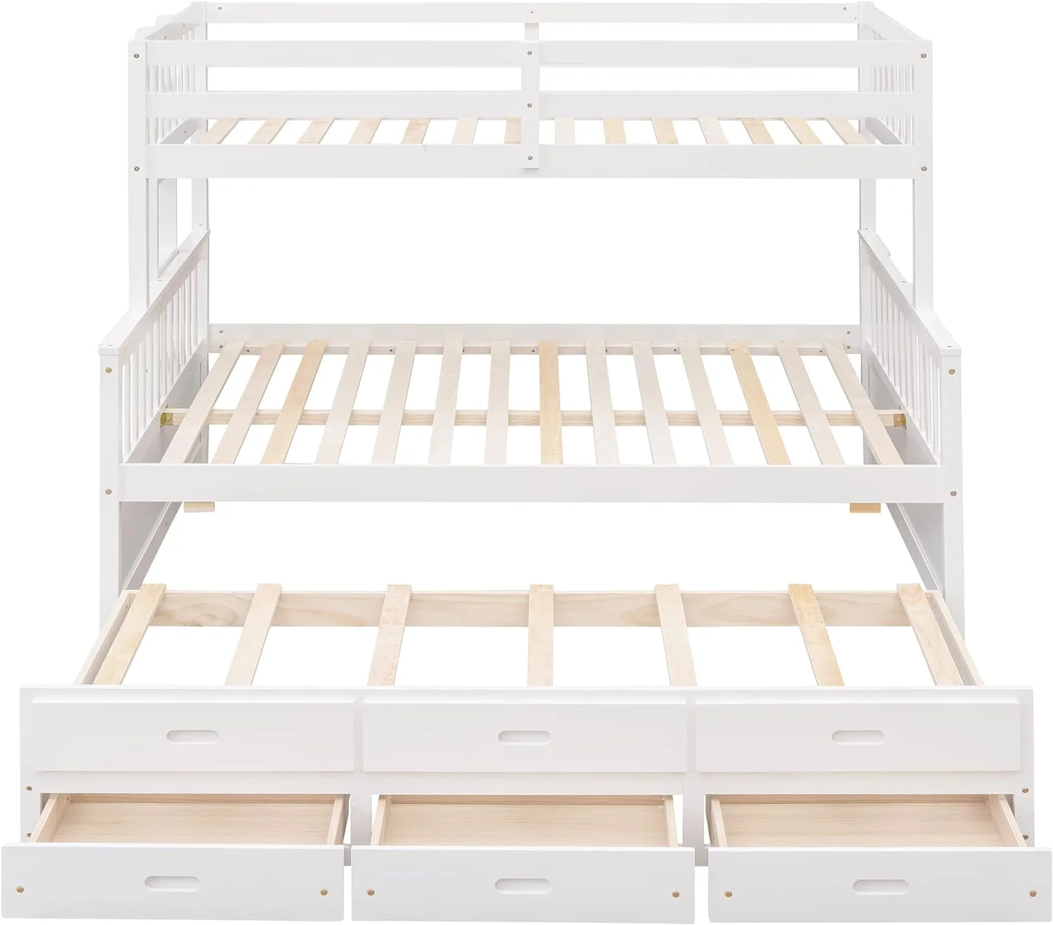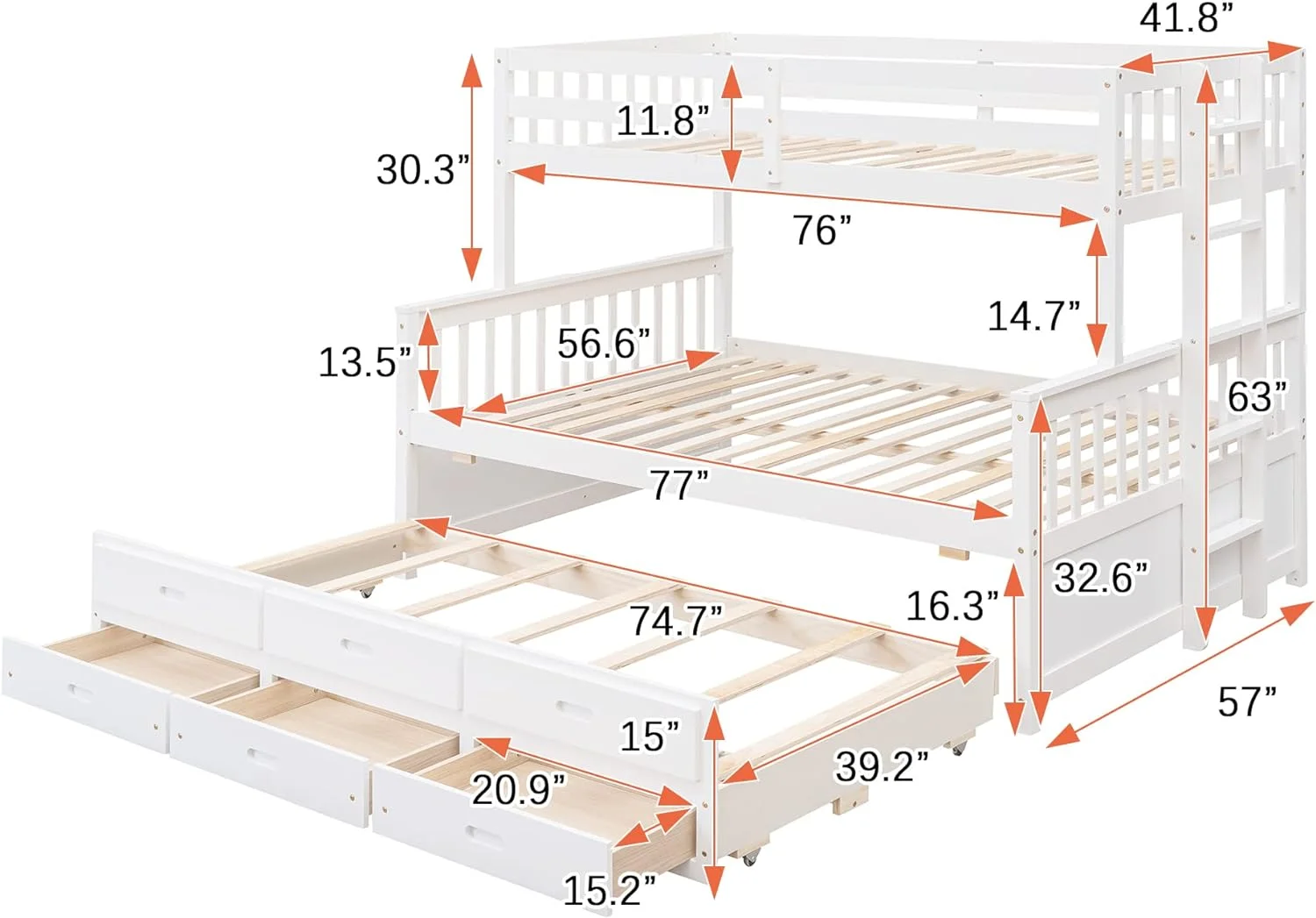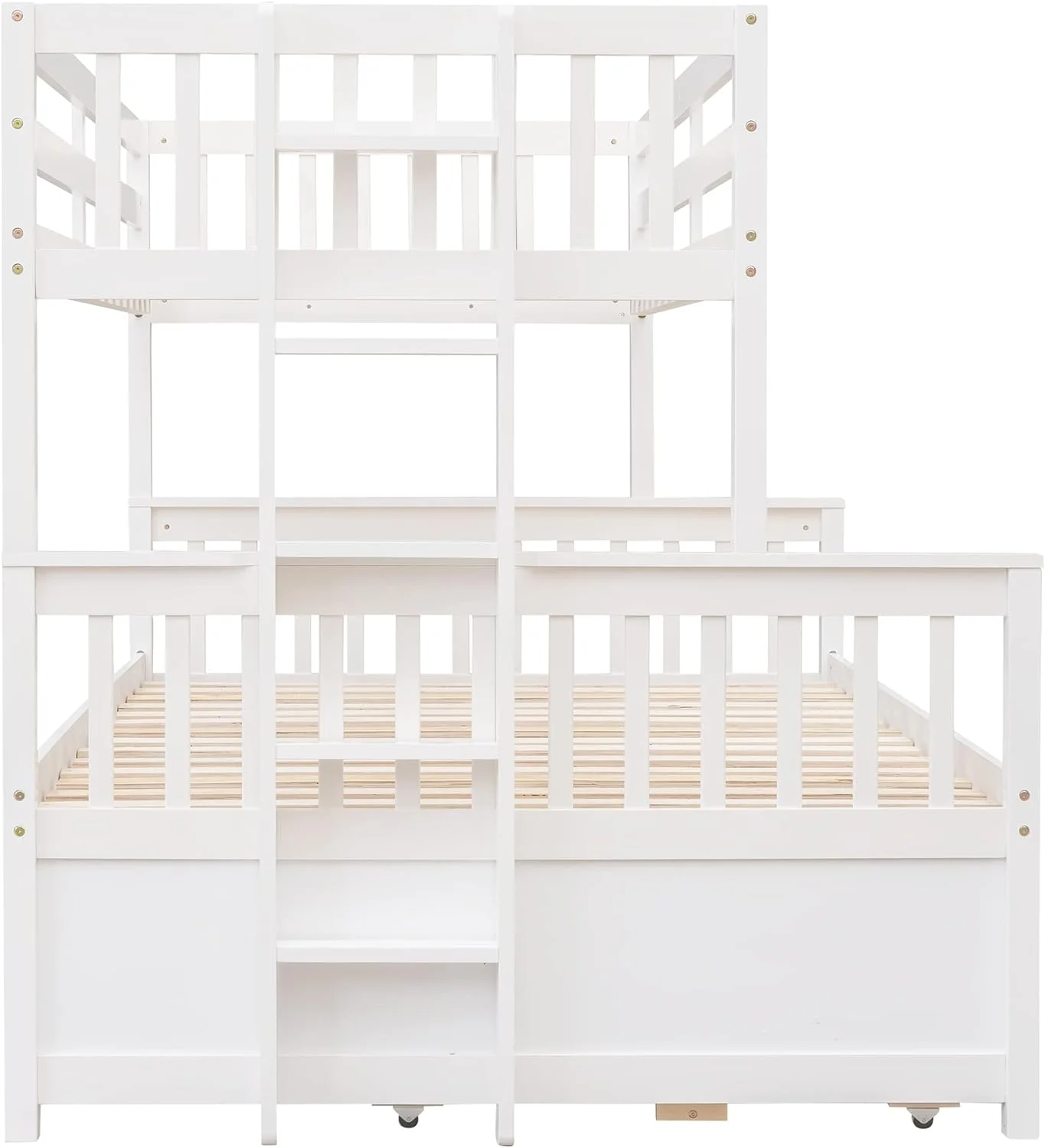 Over Full Buk Bed With Trudle, Solid Wood Buk Bed Frame With Storage Drawers, For Kids Tees Adults (White)
