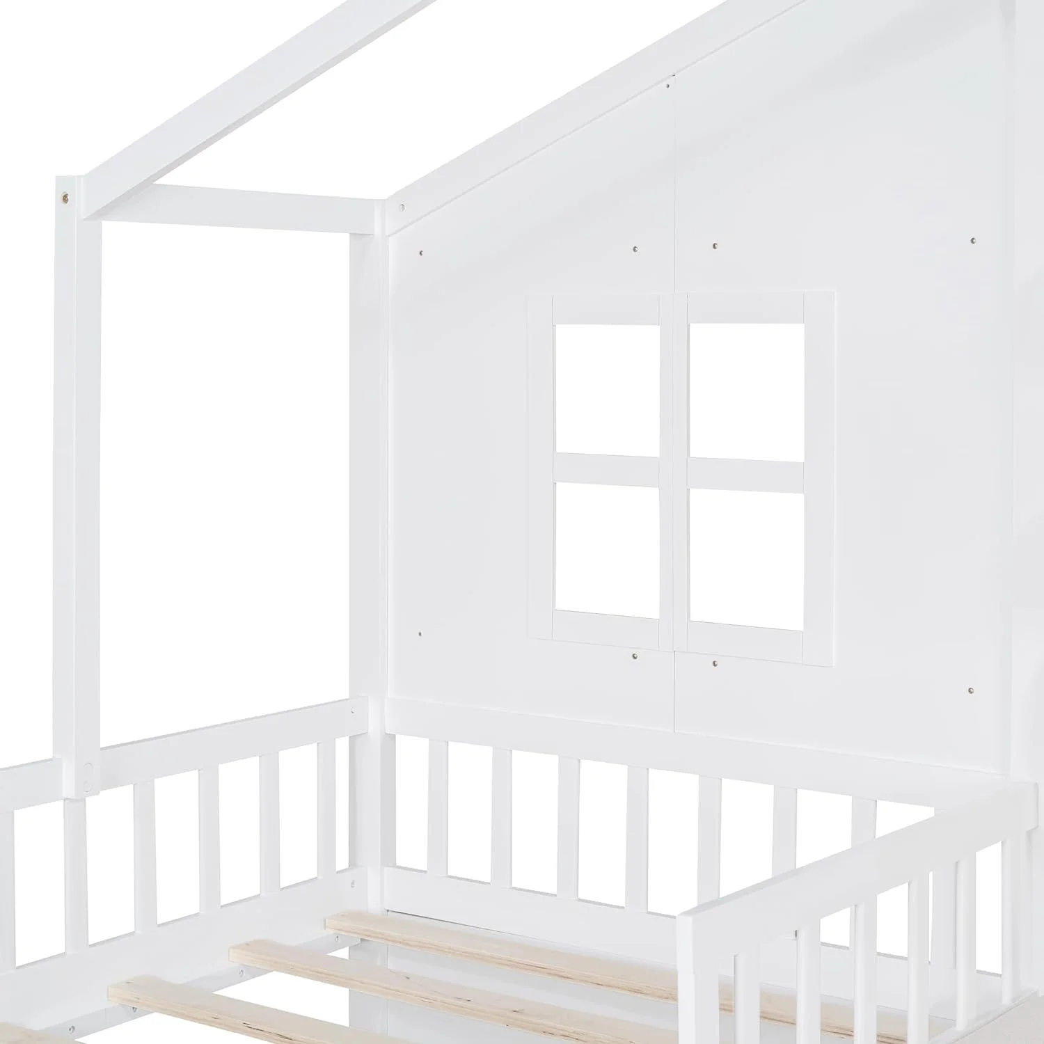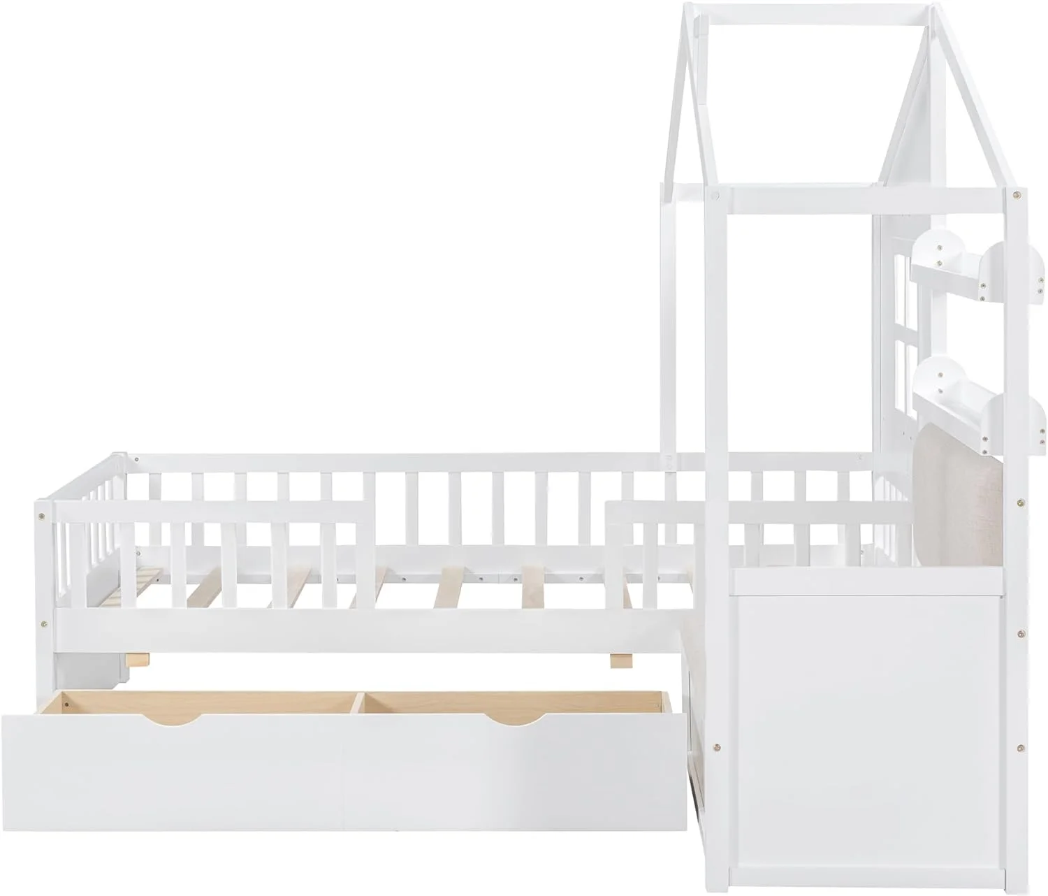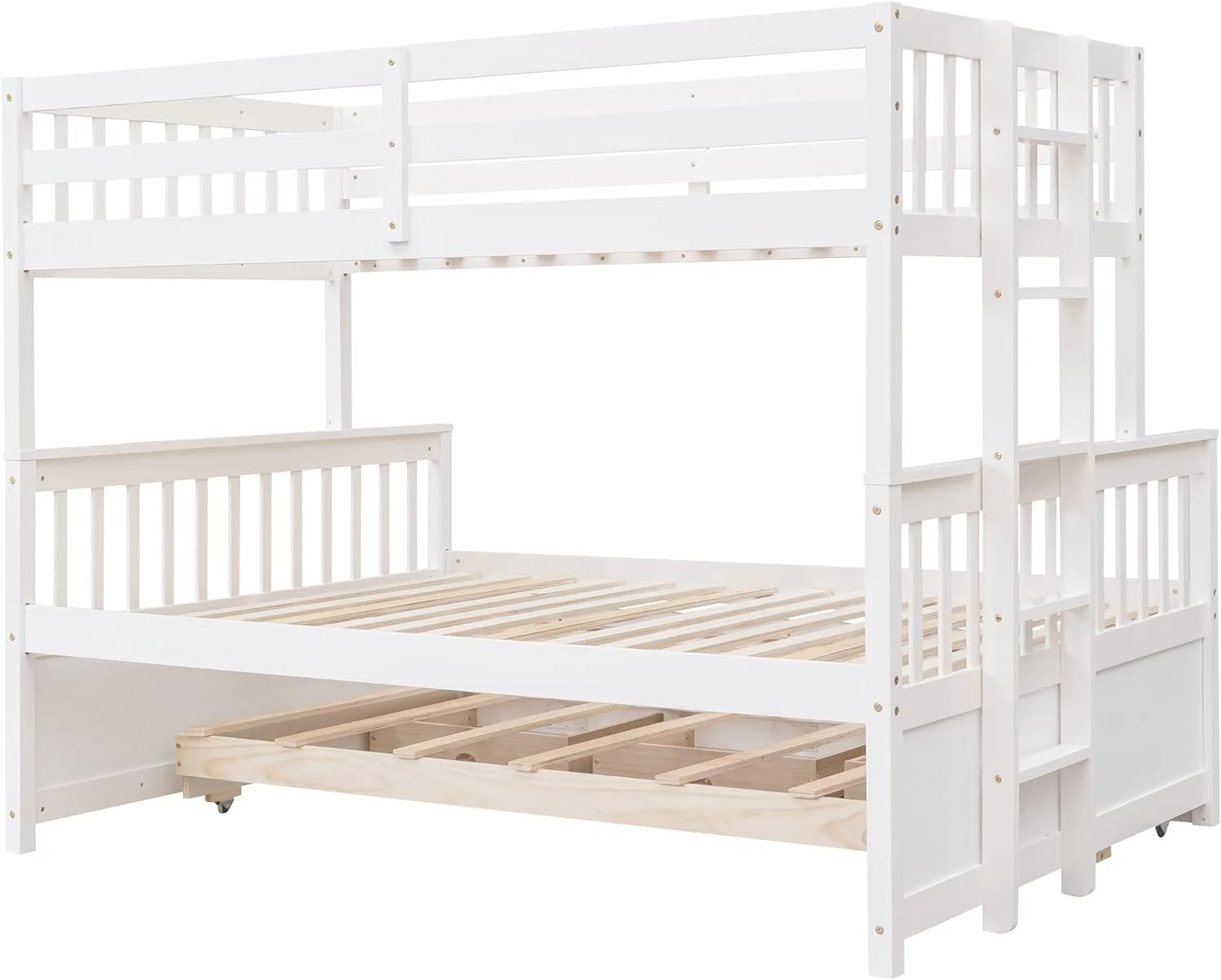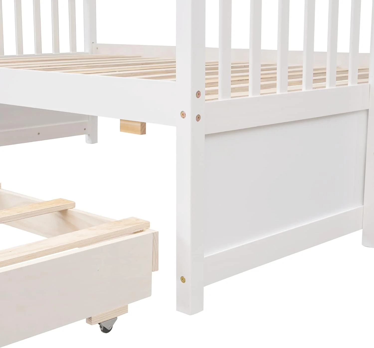 Over Full Buk Bed With Trudle, Solid Wood Buk Bed Frame With Storage Drawers, For Kids Tees Adults (White)