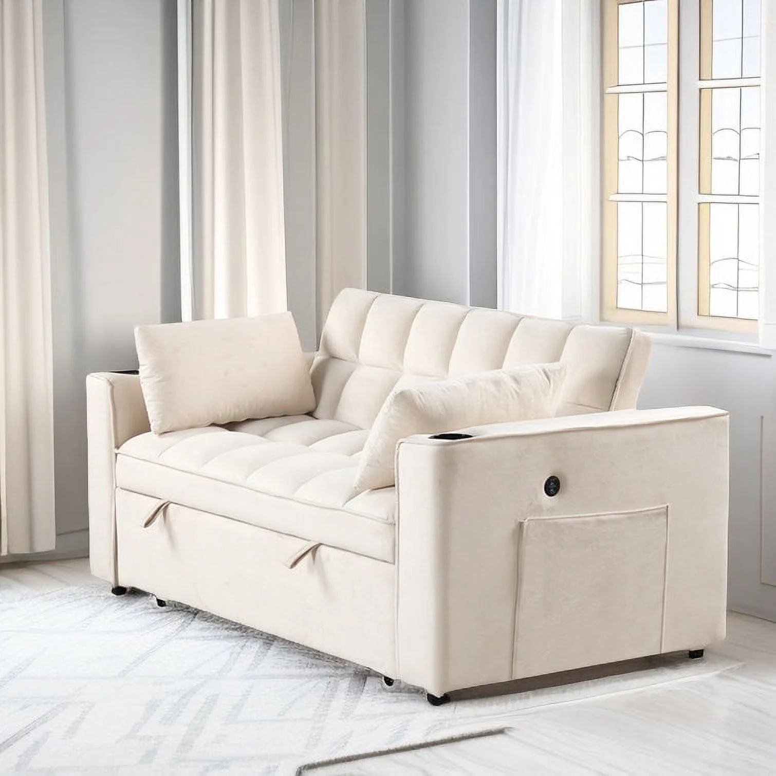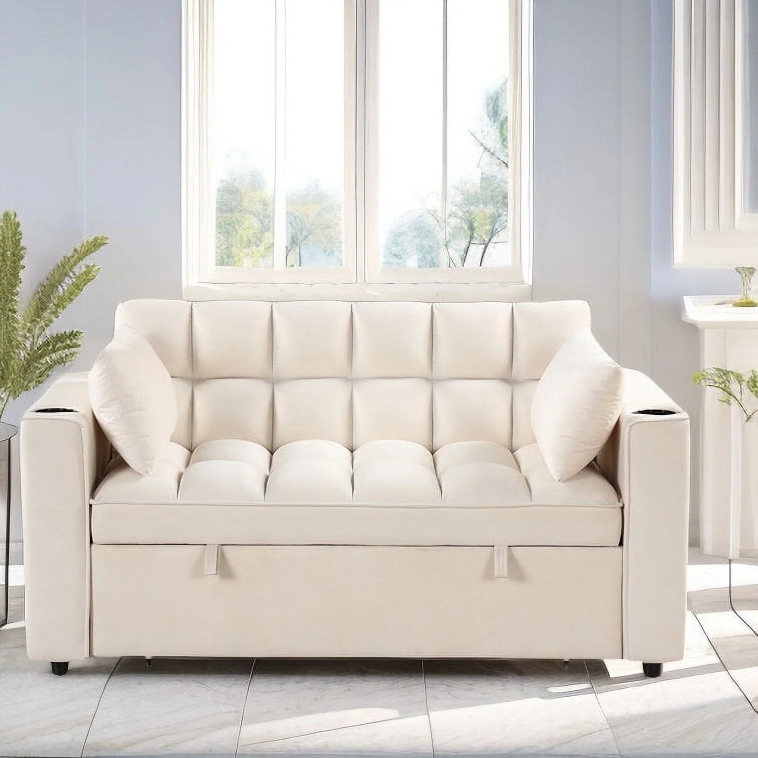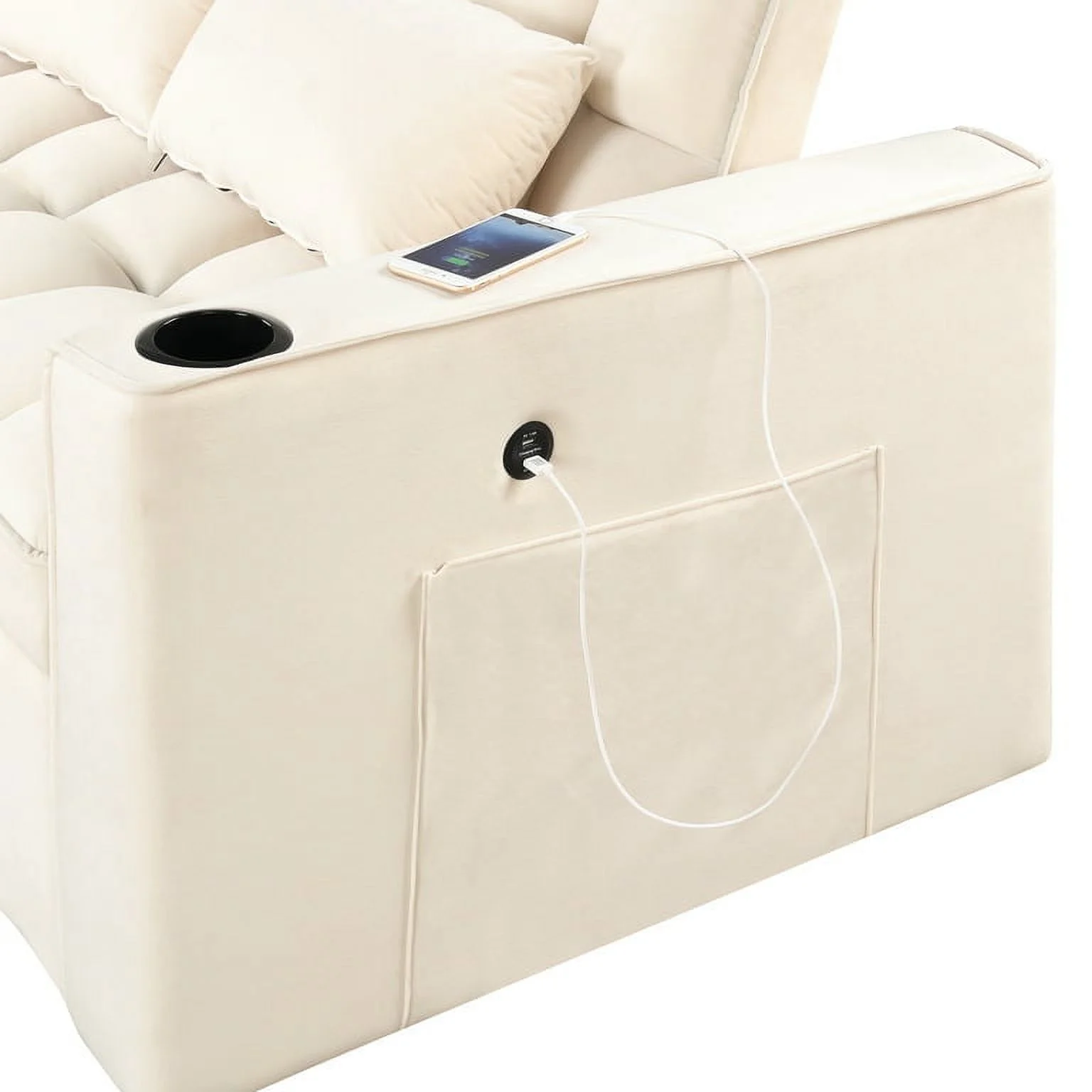 BSHTI Large Upholstered Adult Sofa,Chesterfield Tufted Fabric Sofa Couch for Livingroom(Beige)