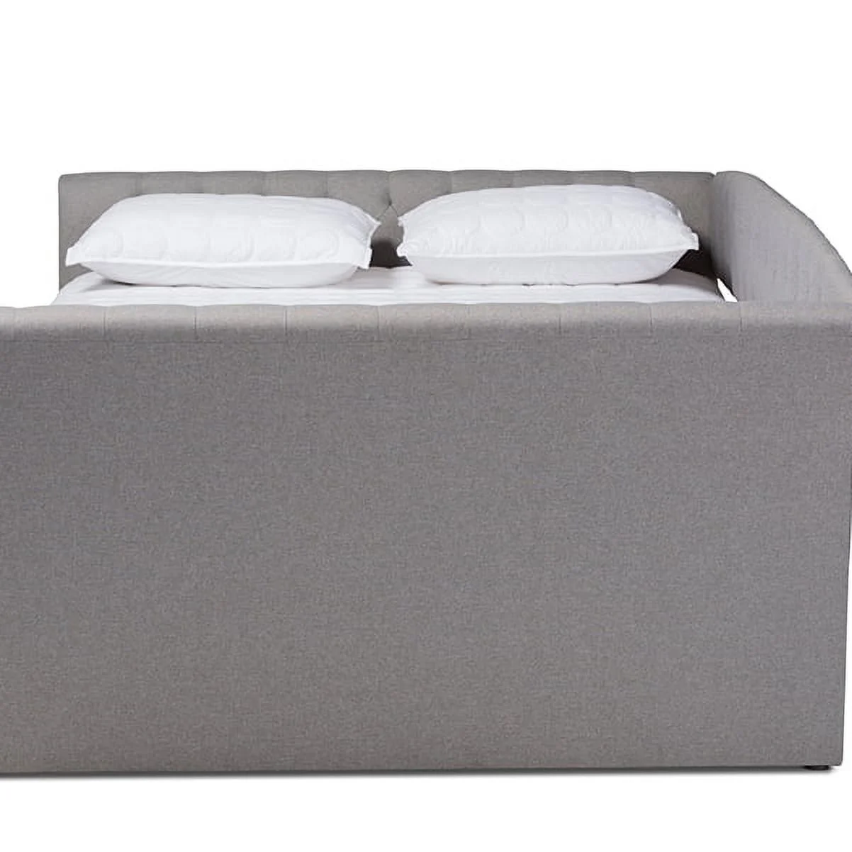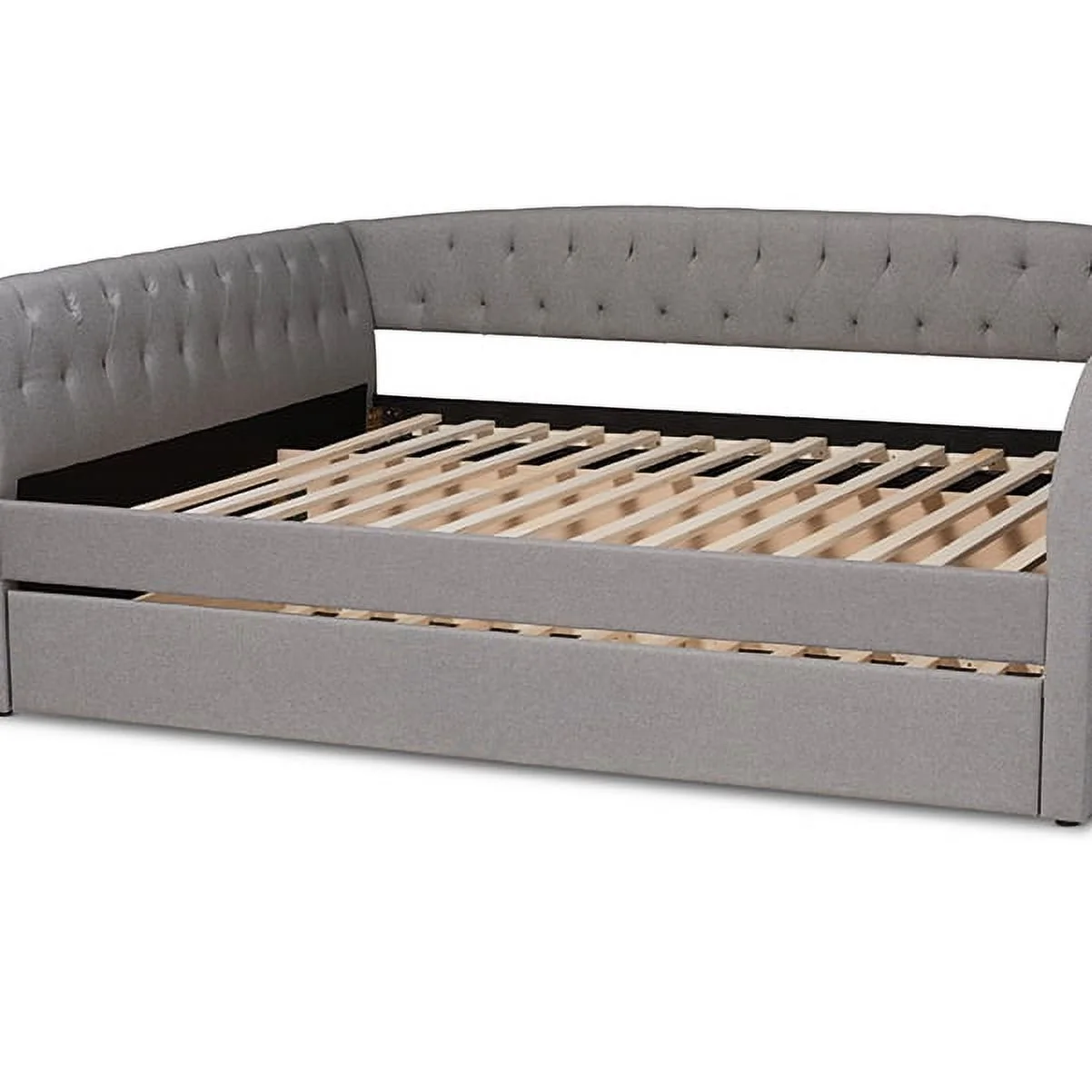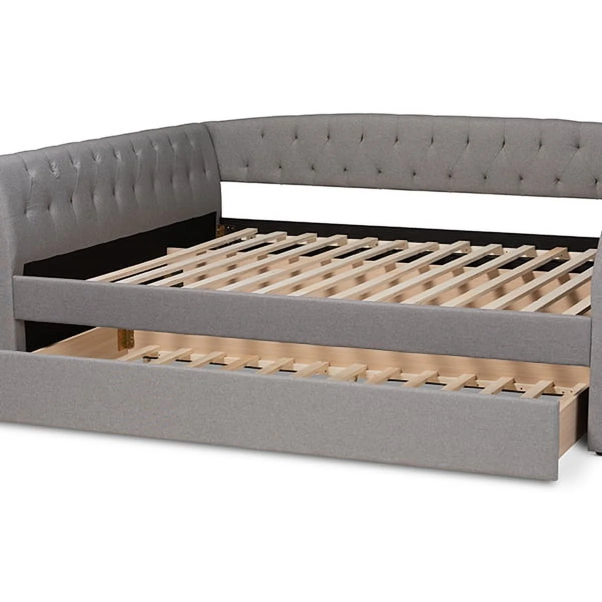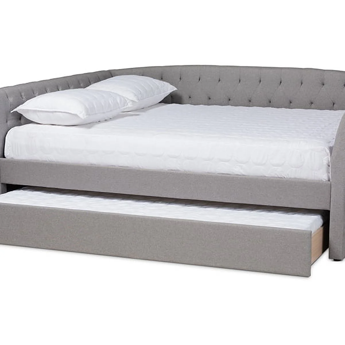 Delora Modern and Contemporary Light Grey Fabric Upholstered Full Size Daybed with Roll-Out Trundle Bed