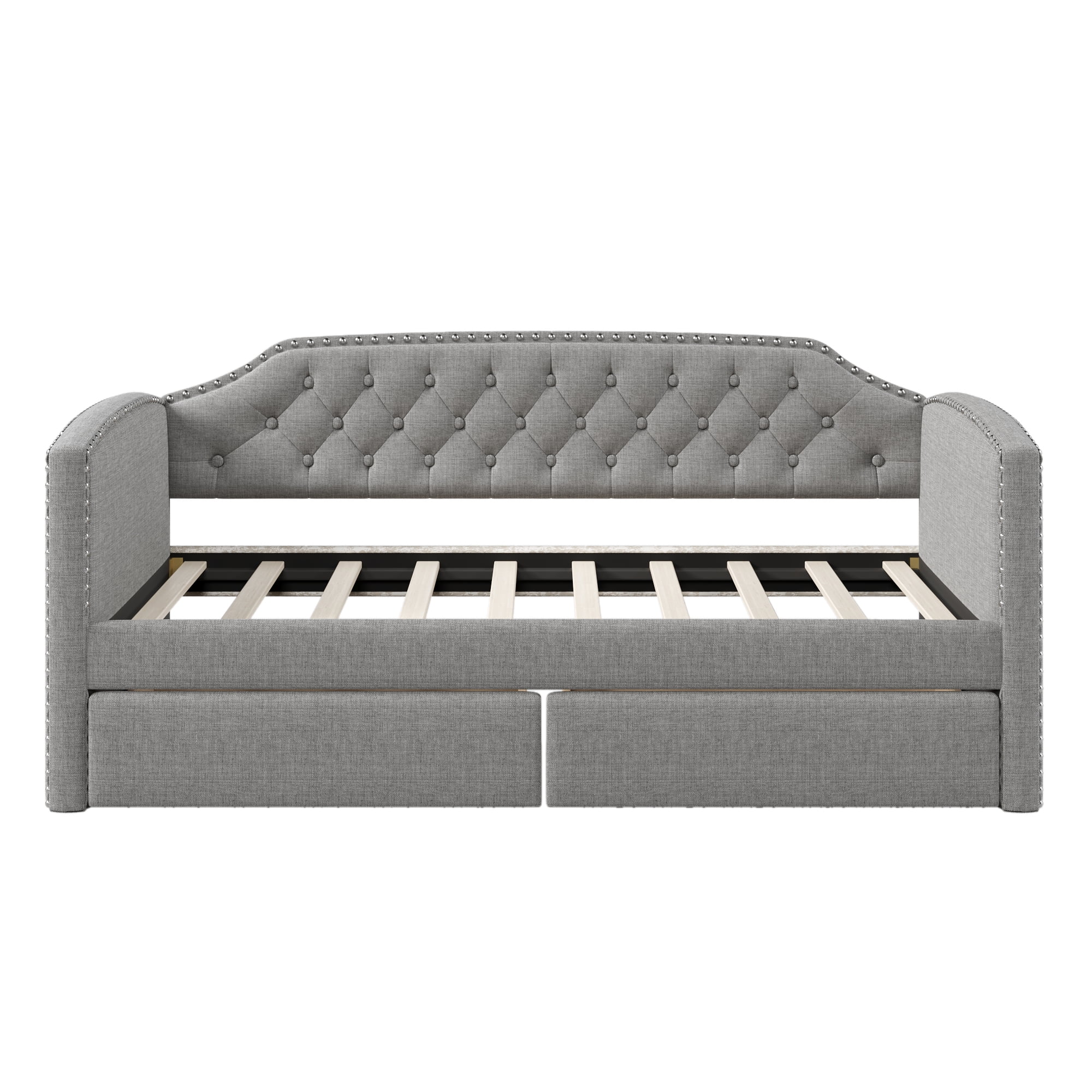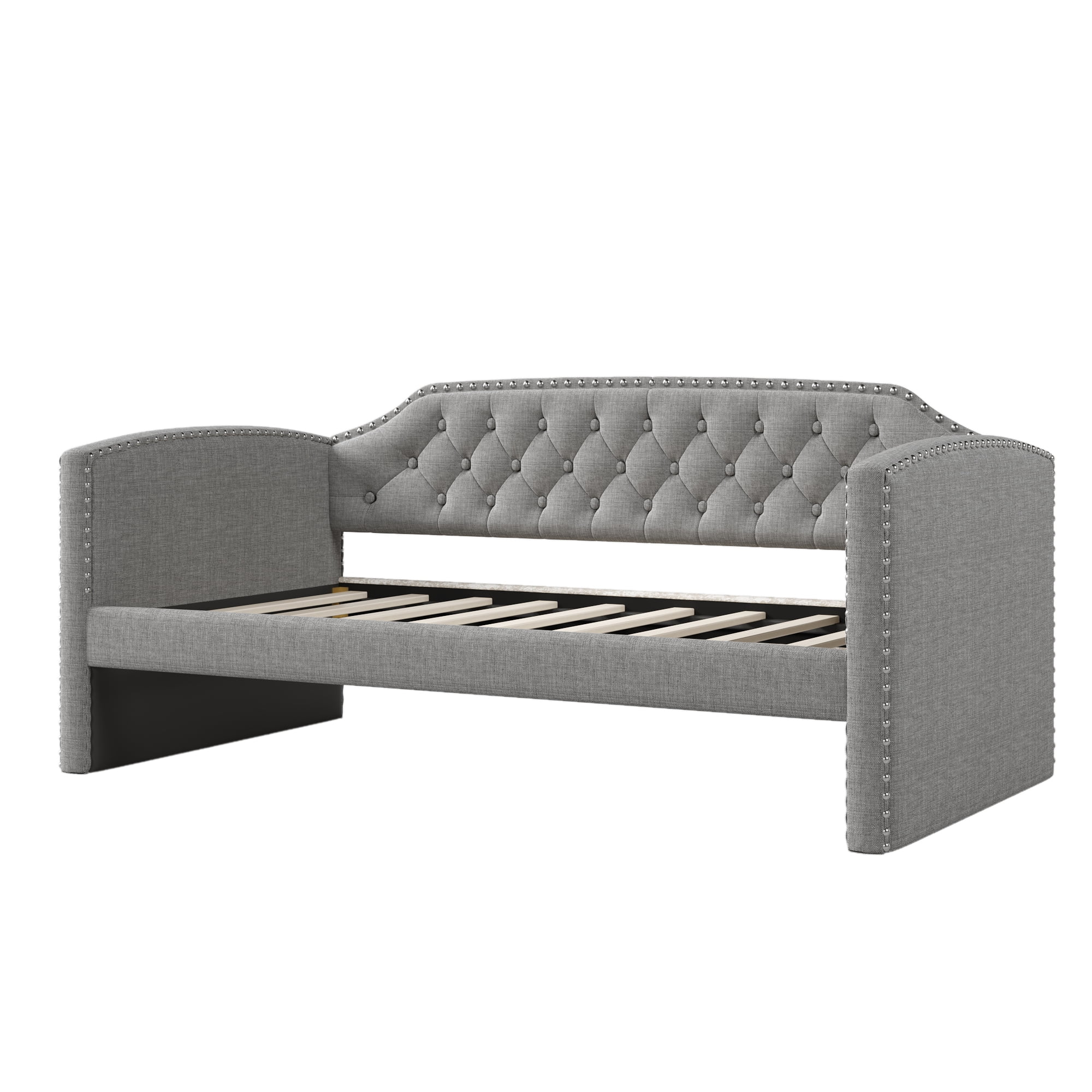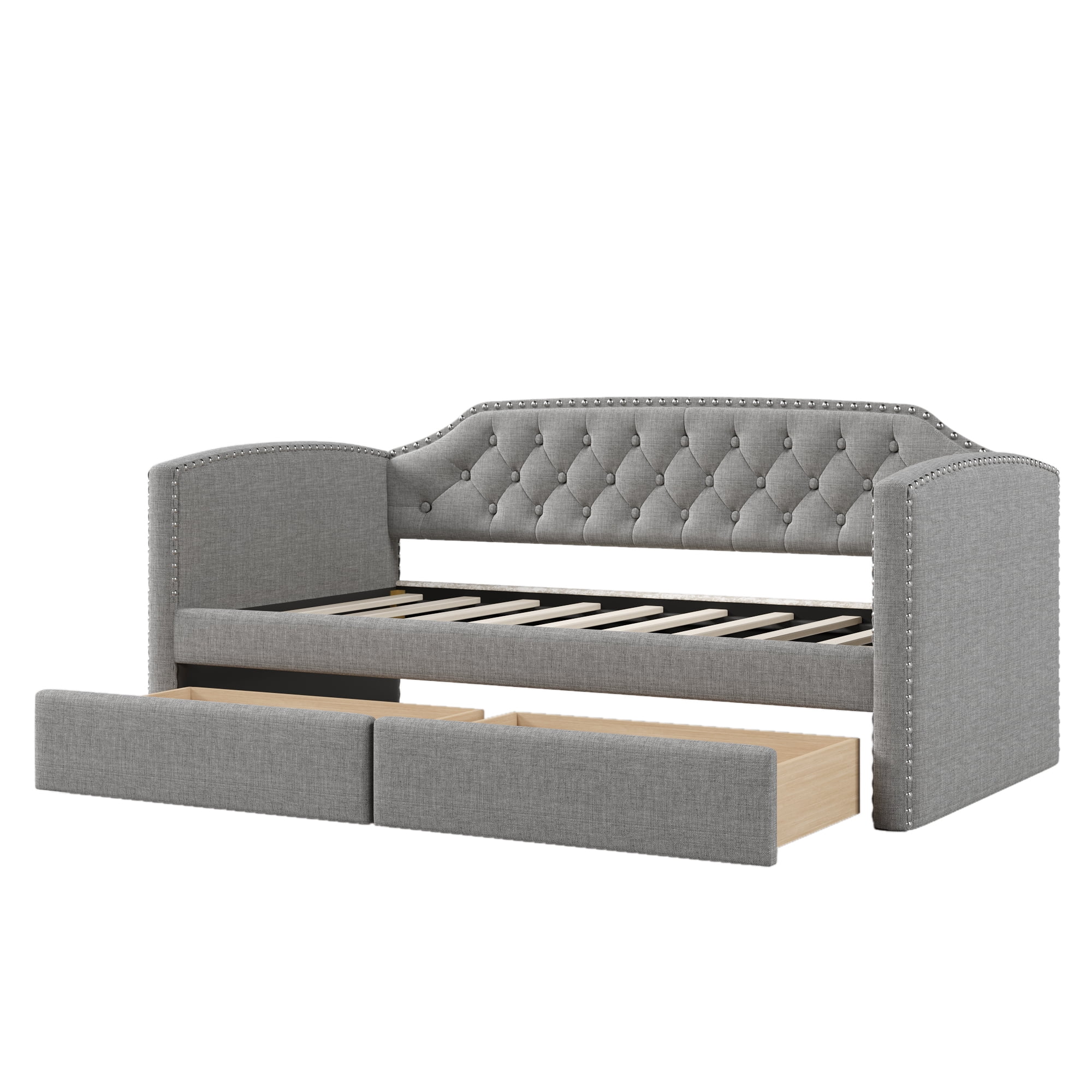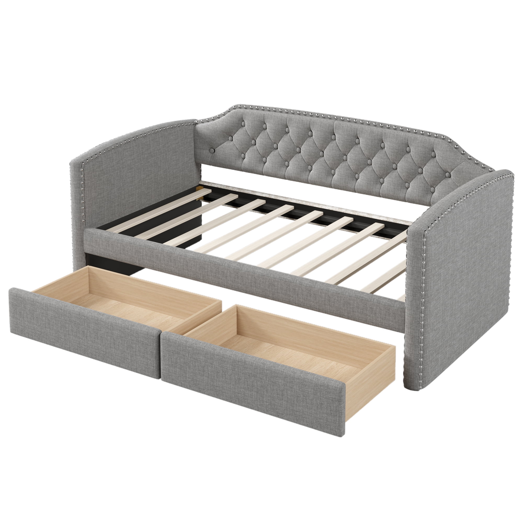 Delora Modern and Contemporary Light Grey Fabric Upholstered Full Size Daybed with Roll-Out Trundle Bed