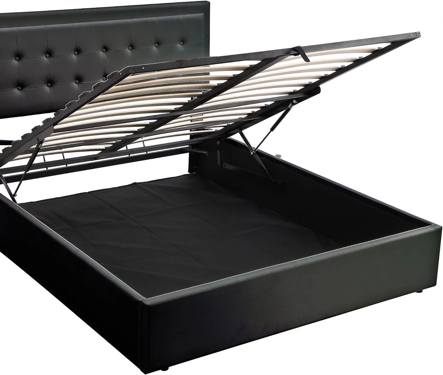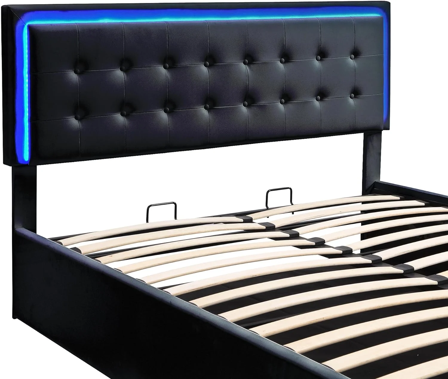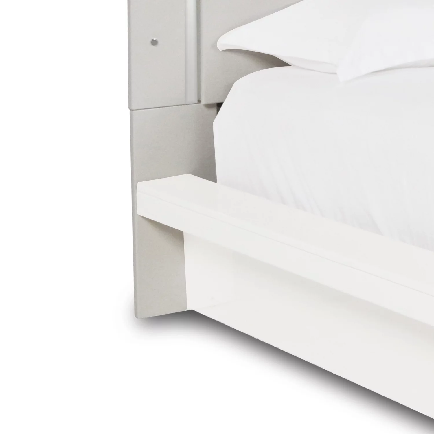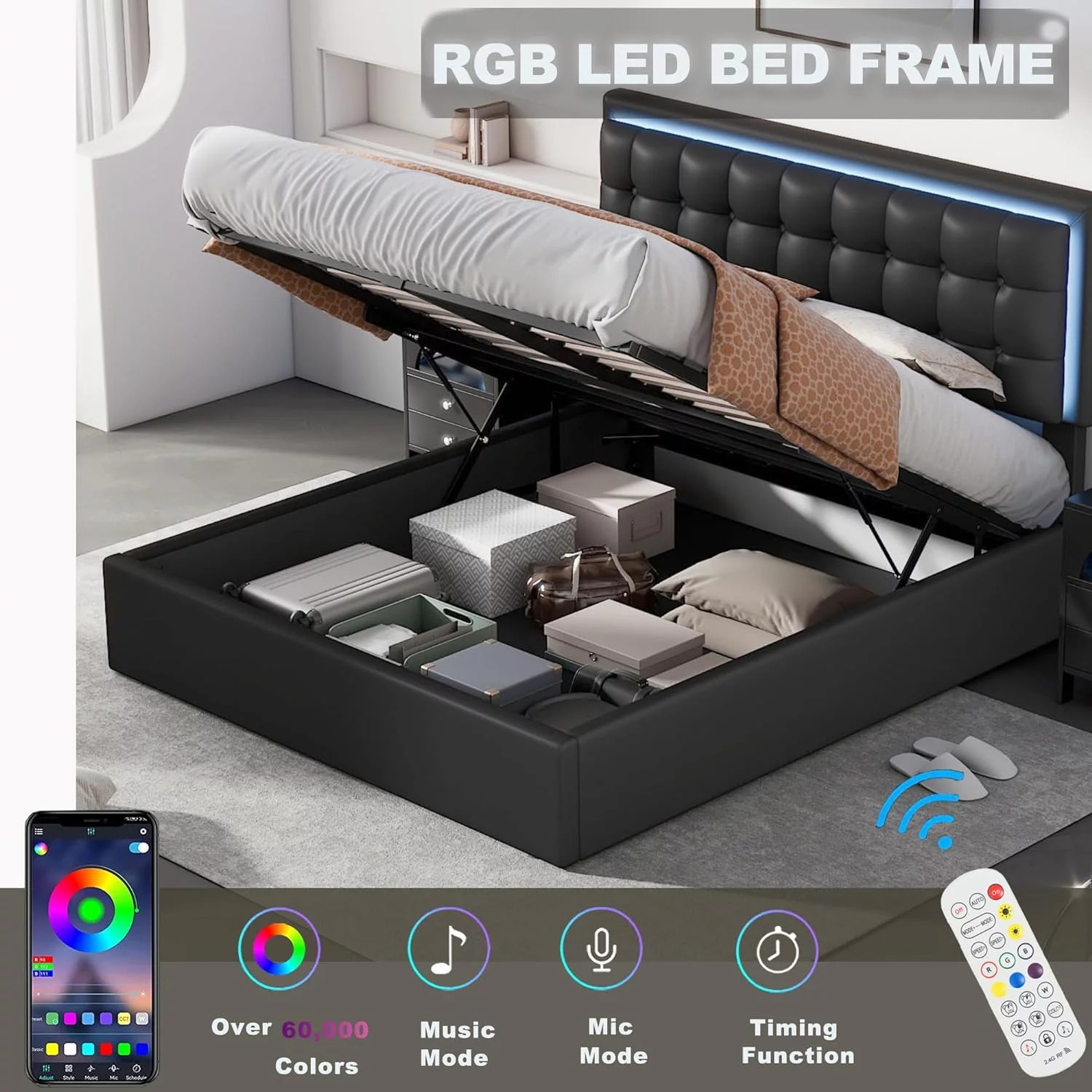 Benjara King Size Storage Bed, Elegant Silver Glitter Trim, LED Lit Headboard, White