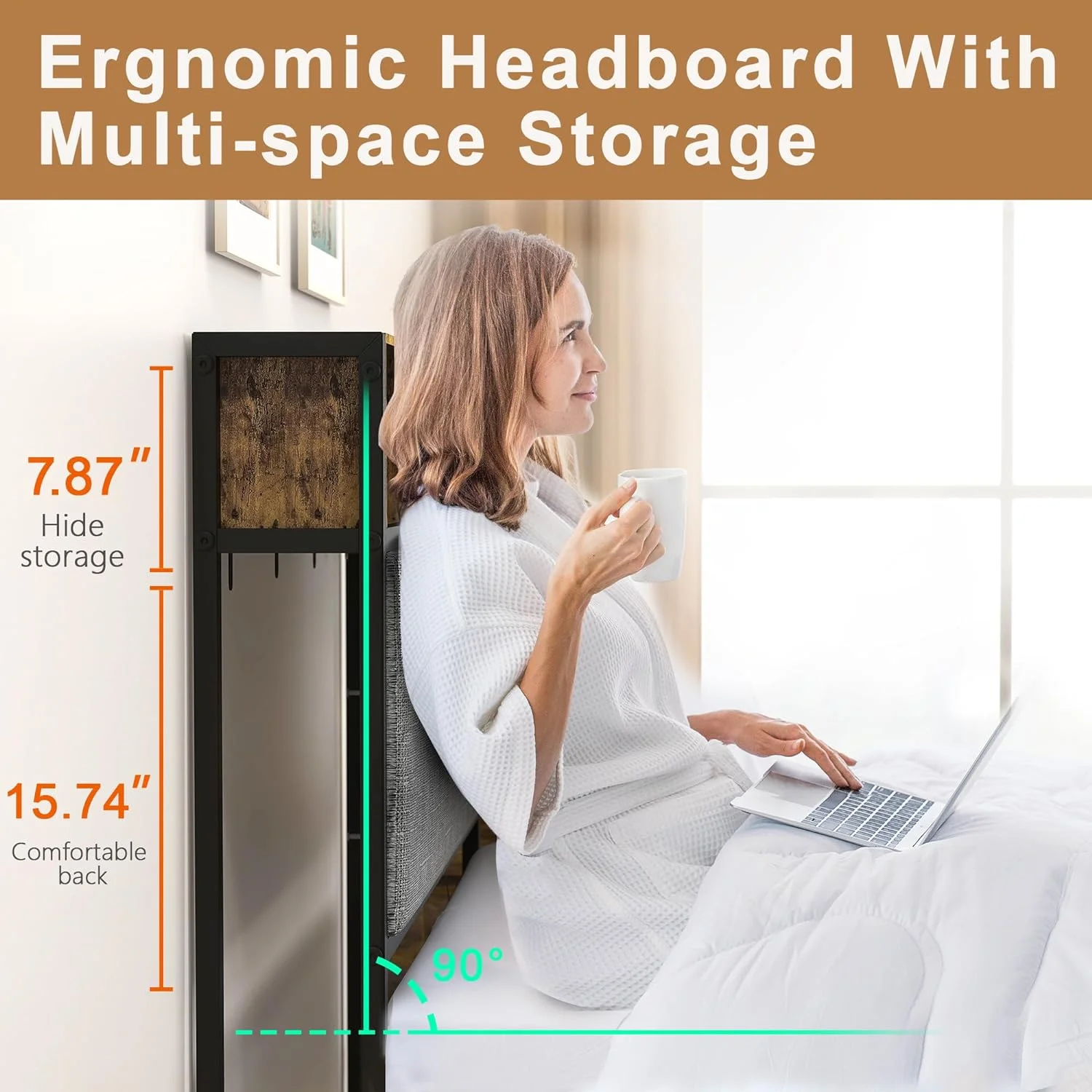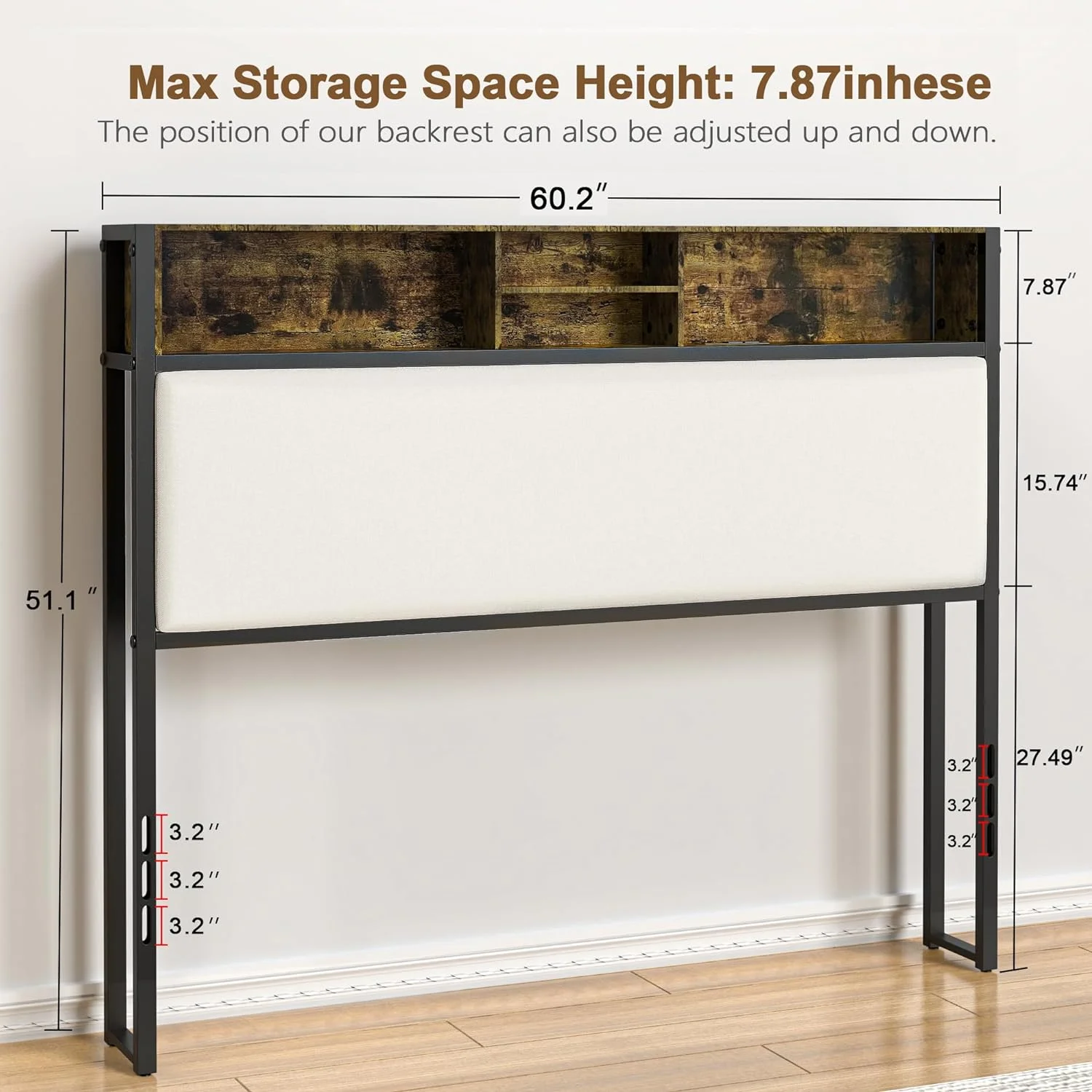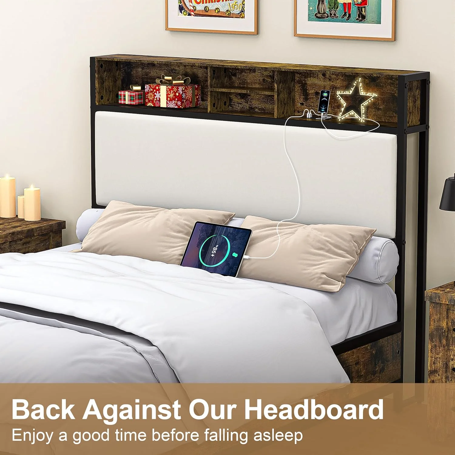 LIHONG Thadamere Rustic Storage Headboard with USB Ports ONLY, Queen, Light Brown