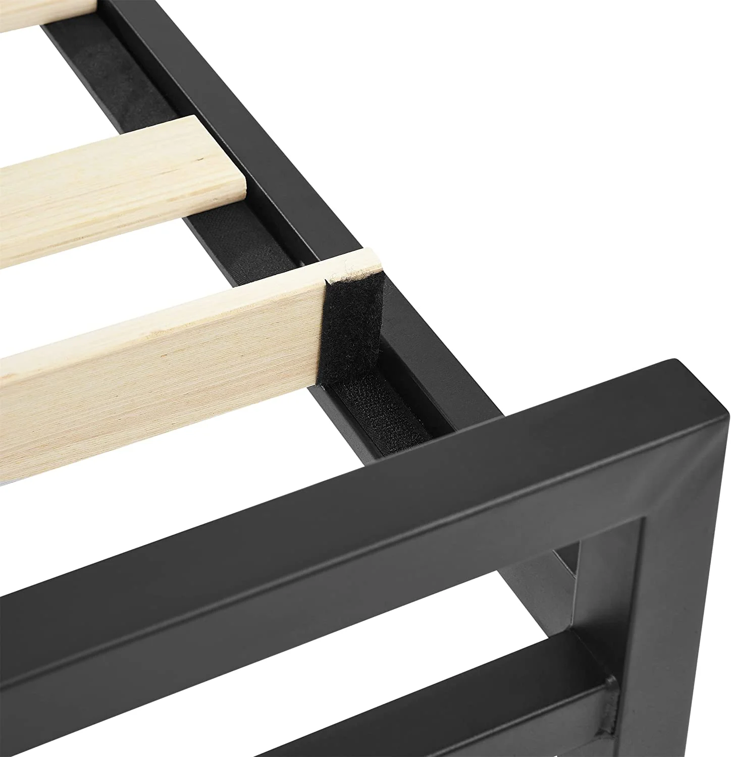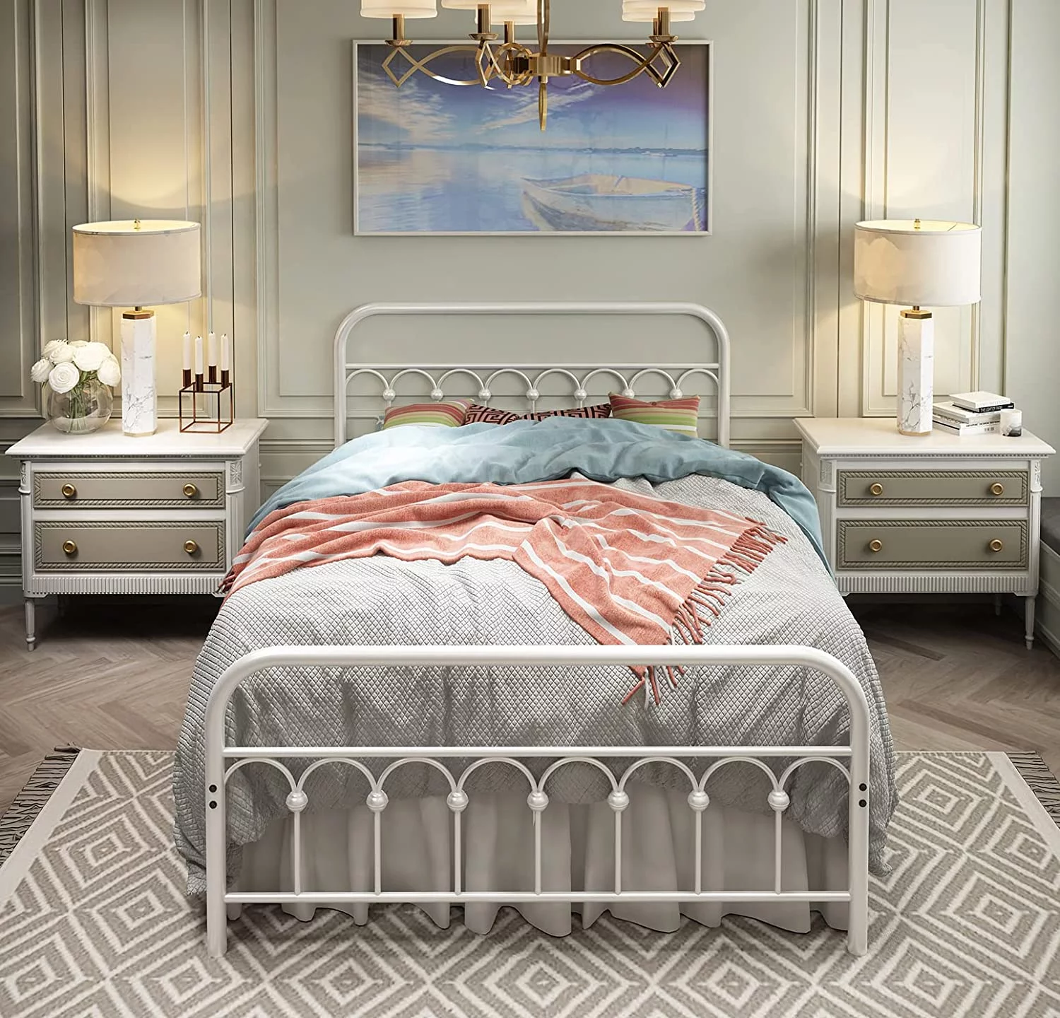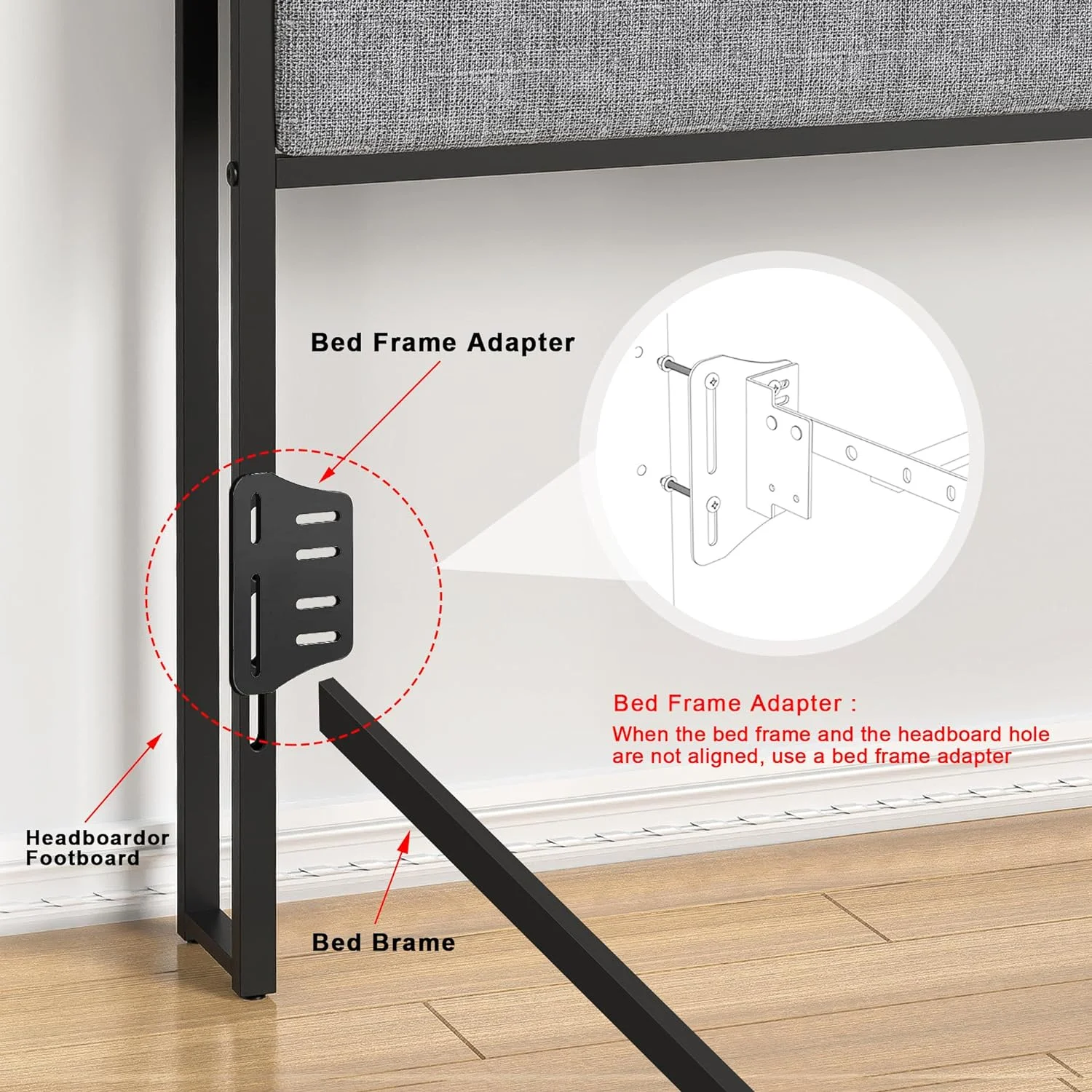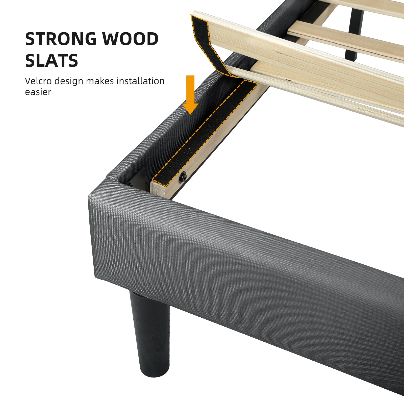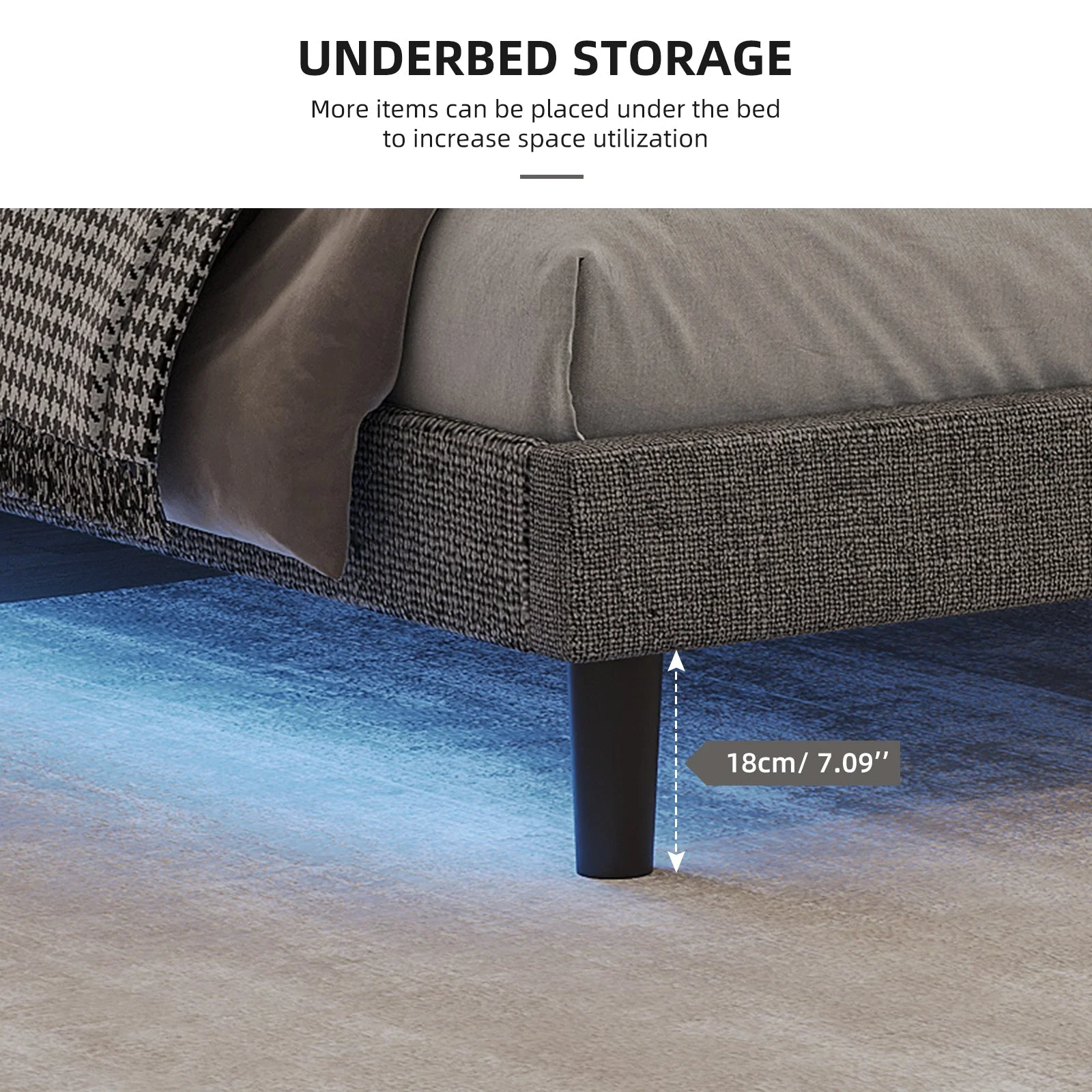 Queen size Contemporary Metal Platform Bed with Grey Upholstered Headboard